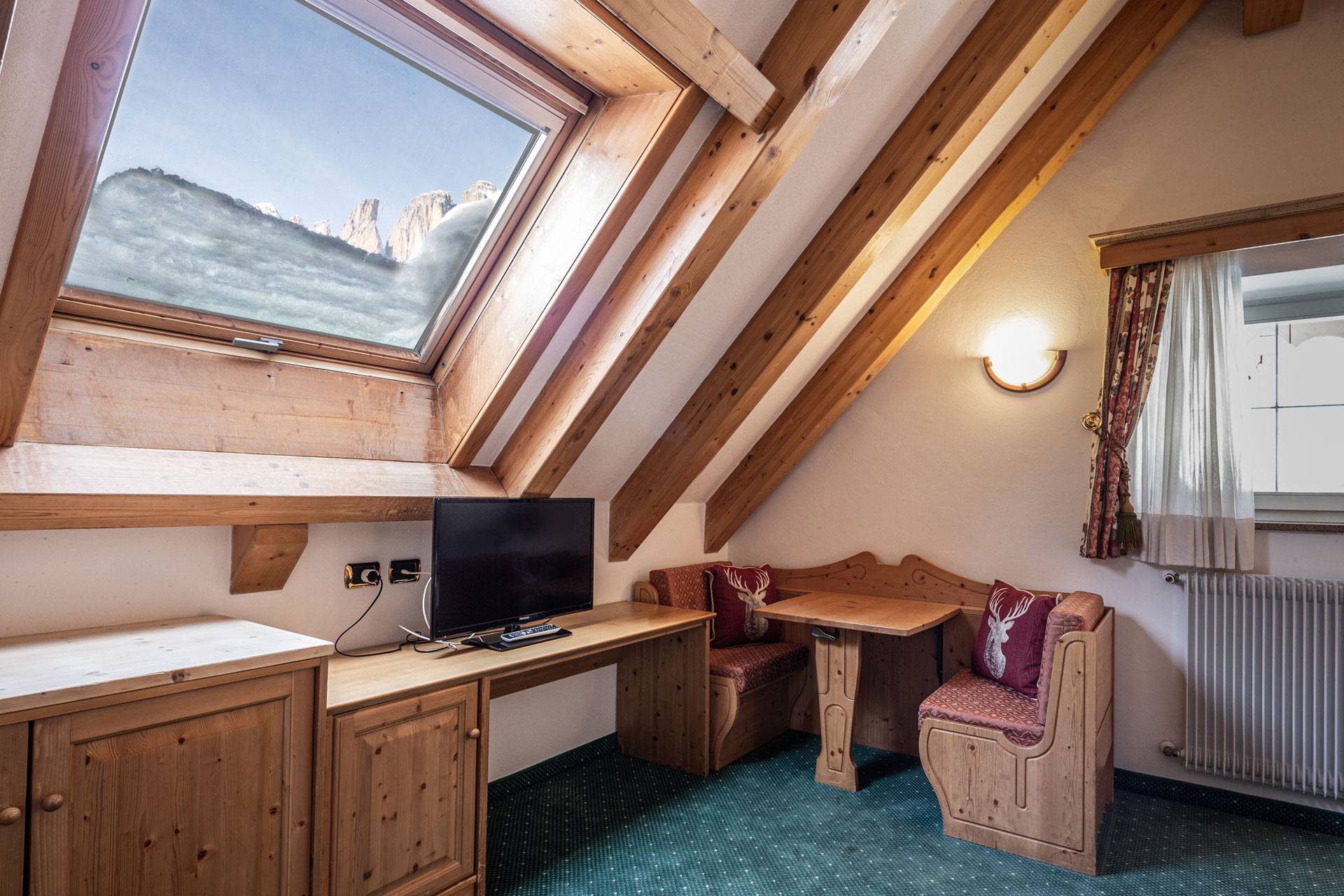 The standard room is perfect a couple or two friends. In this room you will be surrounded by scent of fir feeling all the mountain tradition . You will enjoy magical views on Dolomites directly from the balcony of your room.