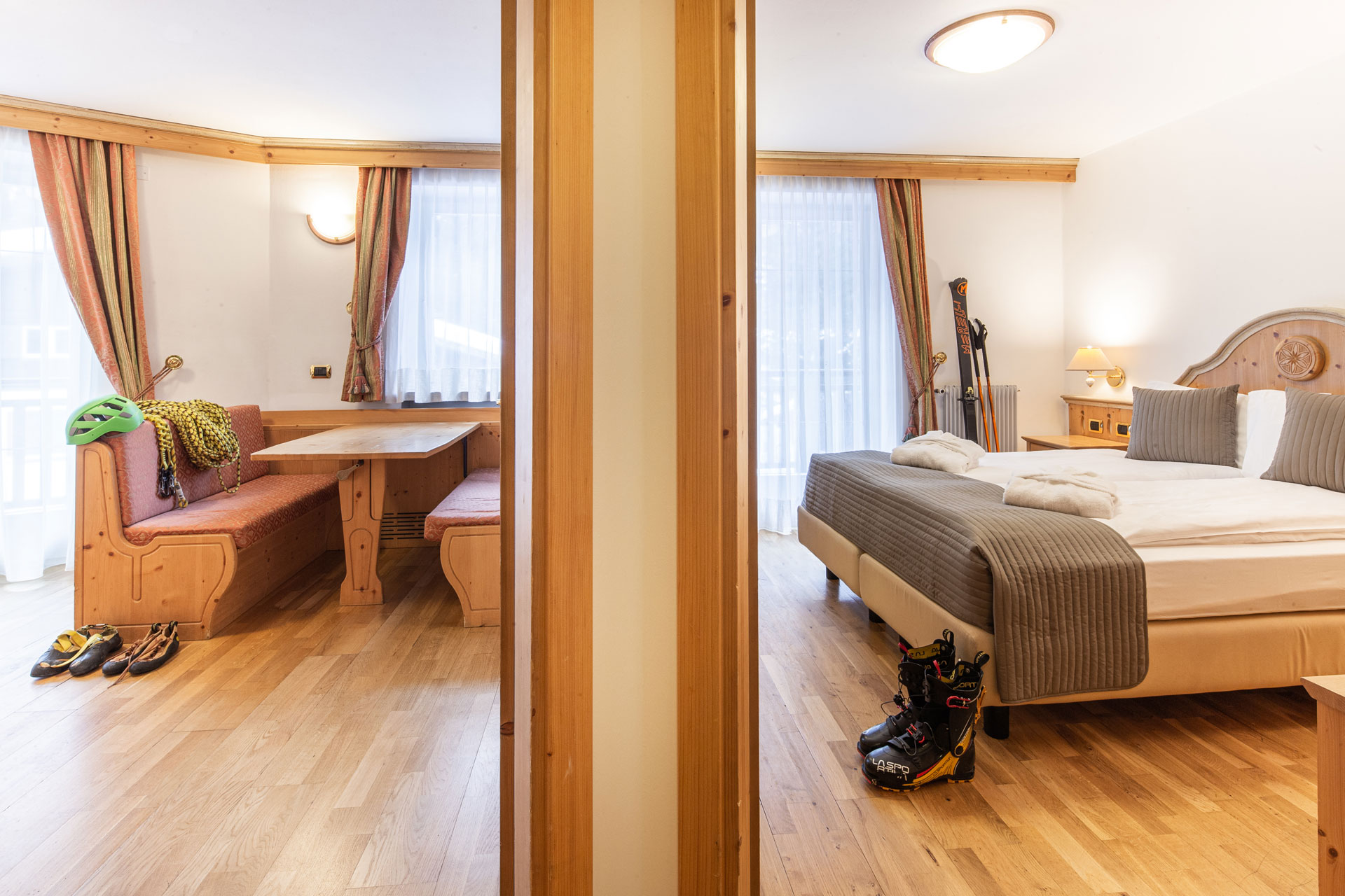 Built through the Fassan tradition, this room offers all the space needed for a couple and a child (max 12 years old) to enjoy moments of intimacy surrounded by fragrances and modern details. Wake up, open your eyes and you will see your training stadium surrounded by superb views in the heart of the Dolomites. All this is waiting for you and your half.