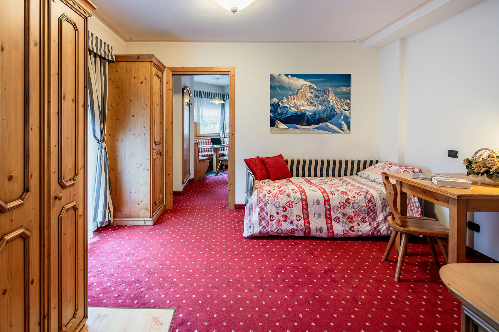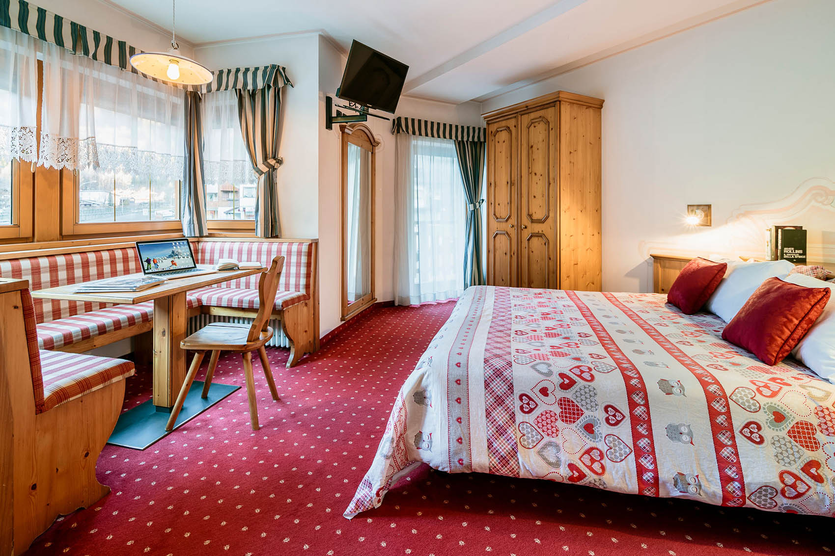 Le camere Superior saranno completate a metà giugno 2023. Tra le caratteristiche offerte, arredi in legno di larice, pavimenti in laminato, letti spaziosi da 200x90, una TV da 43 pollici, un minifrigo e una cassaforte. Il bagno è stato completamente ristrutturato e dispone di una grande doccia da 120x80. Al momento, le immagini disponibili sono solo un rendering, ma presto pubblicheremo delle foto reali appena le camere saranno pronte. Siamo certi che la vostra esperienza nelle nostre camere Superior sarà memorabile e vi permetterà di apprezzare appieno la bellezza delle Dolomiti.