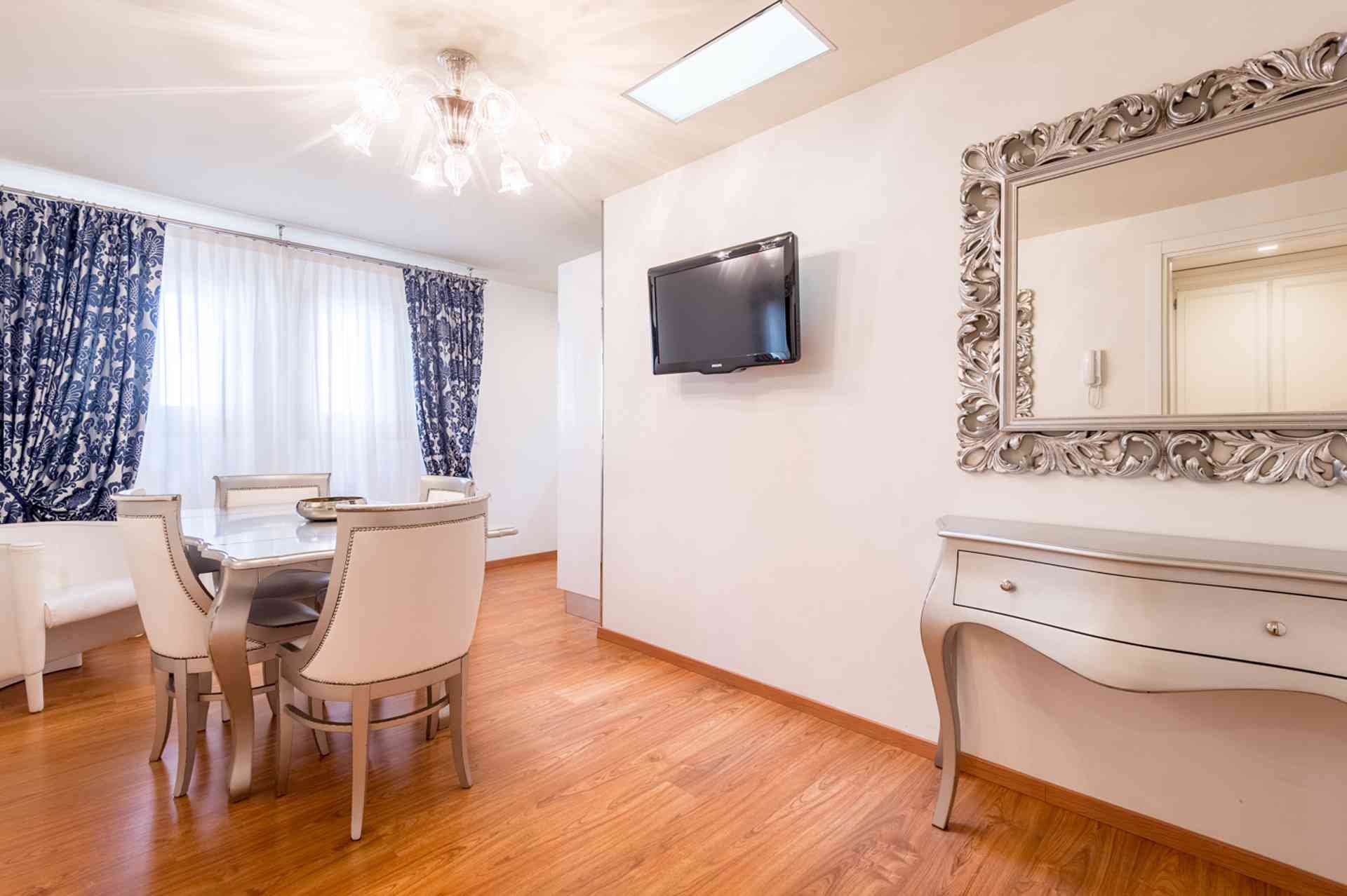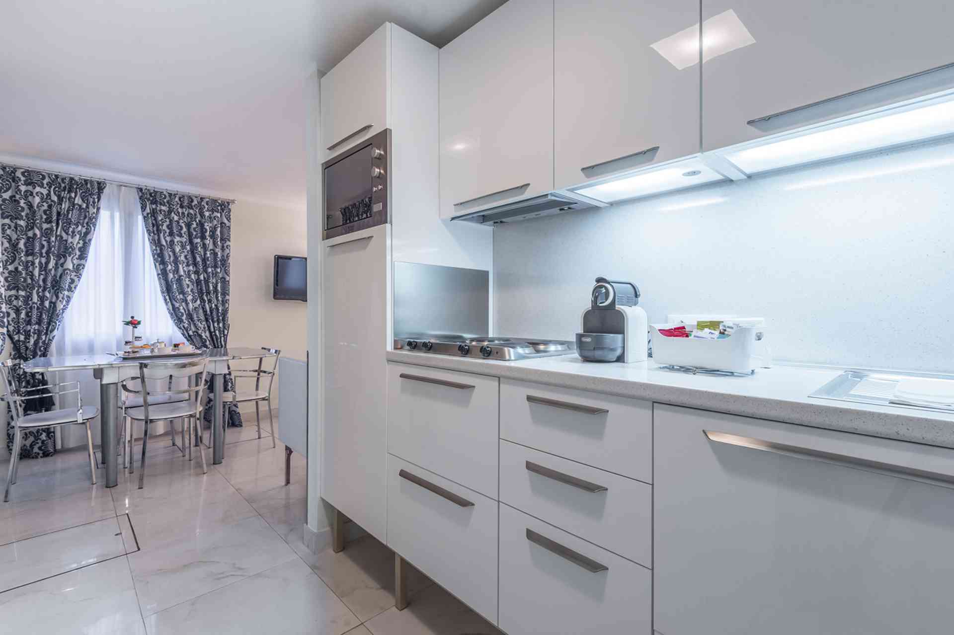 Deluxe apartment with a bedroom and a double sofa bed or a single sofa bed and a single bed, (about40-50 qm), from 1 to 3 guests. Equipped kitchen / living room, and a double sofa bed or a single sofa bed and a single bed, one or two bathrooms (depends on availability)