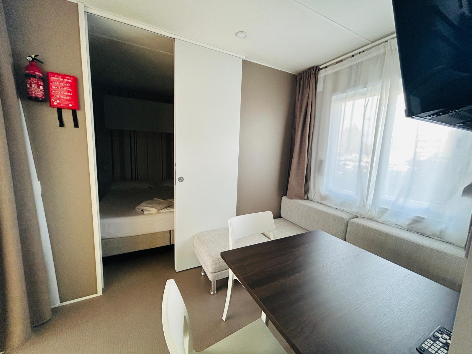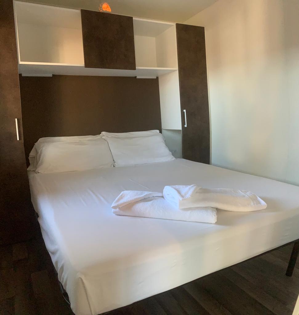 Ideale per le famiglie o gruppi di amici. Una casa mobile basic che comprende clima/riscaldamento, biancheria da letto e 1 asciugamano per persona, terrazza esterna, un letto matrimoniale e 2 letti singoli, bagno privato, frigorifero e WIFI. Non dispone di cucina. Pulizie finali incluse. Non disponibili: microonde, caffettiera e bollitore.