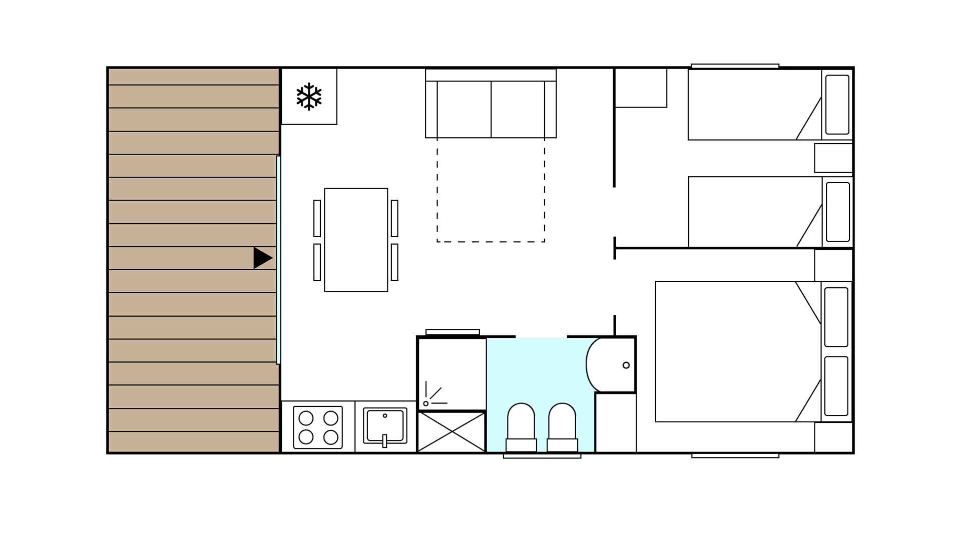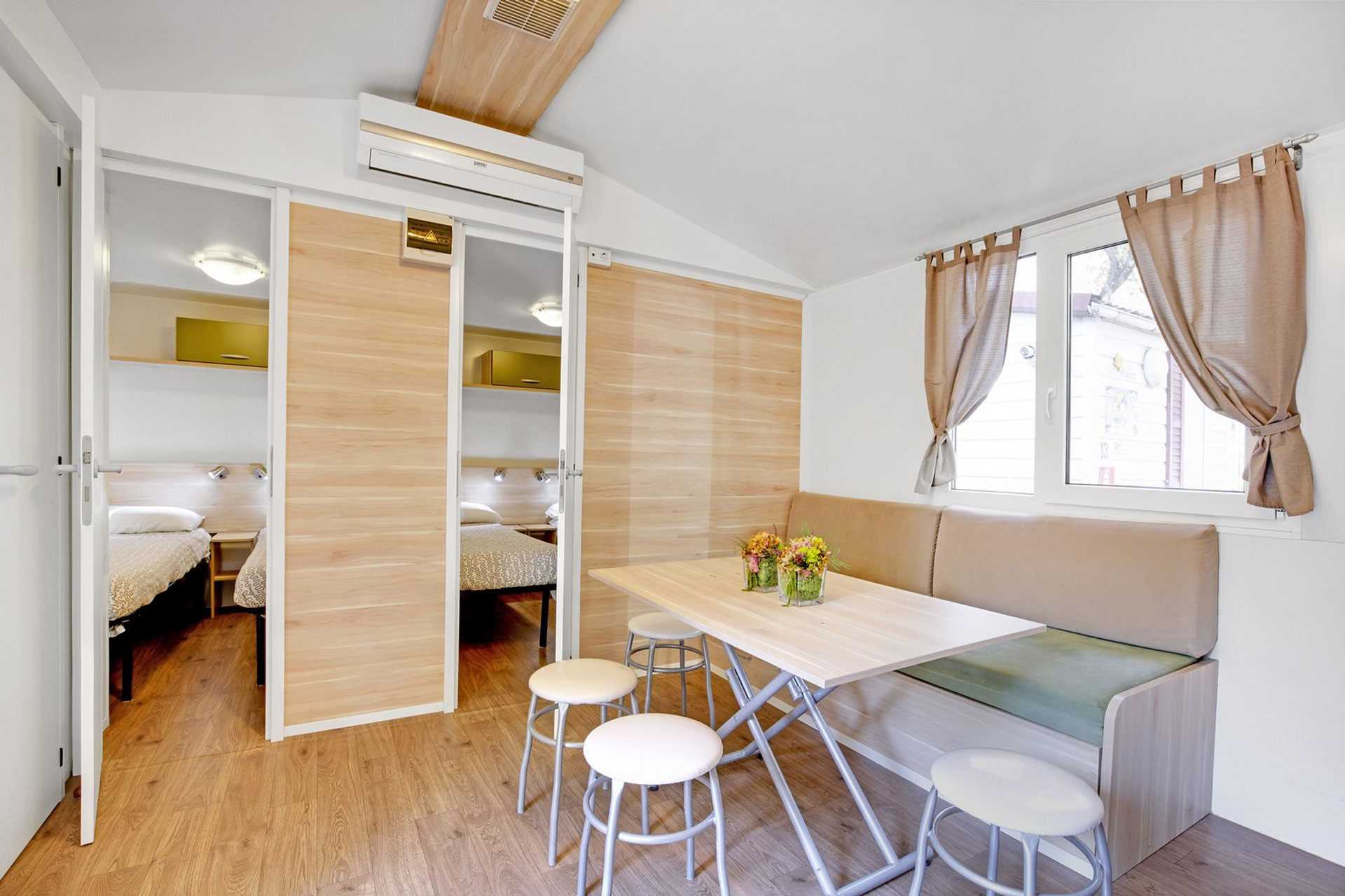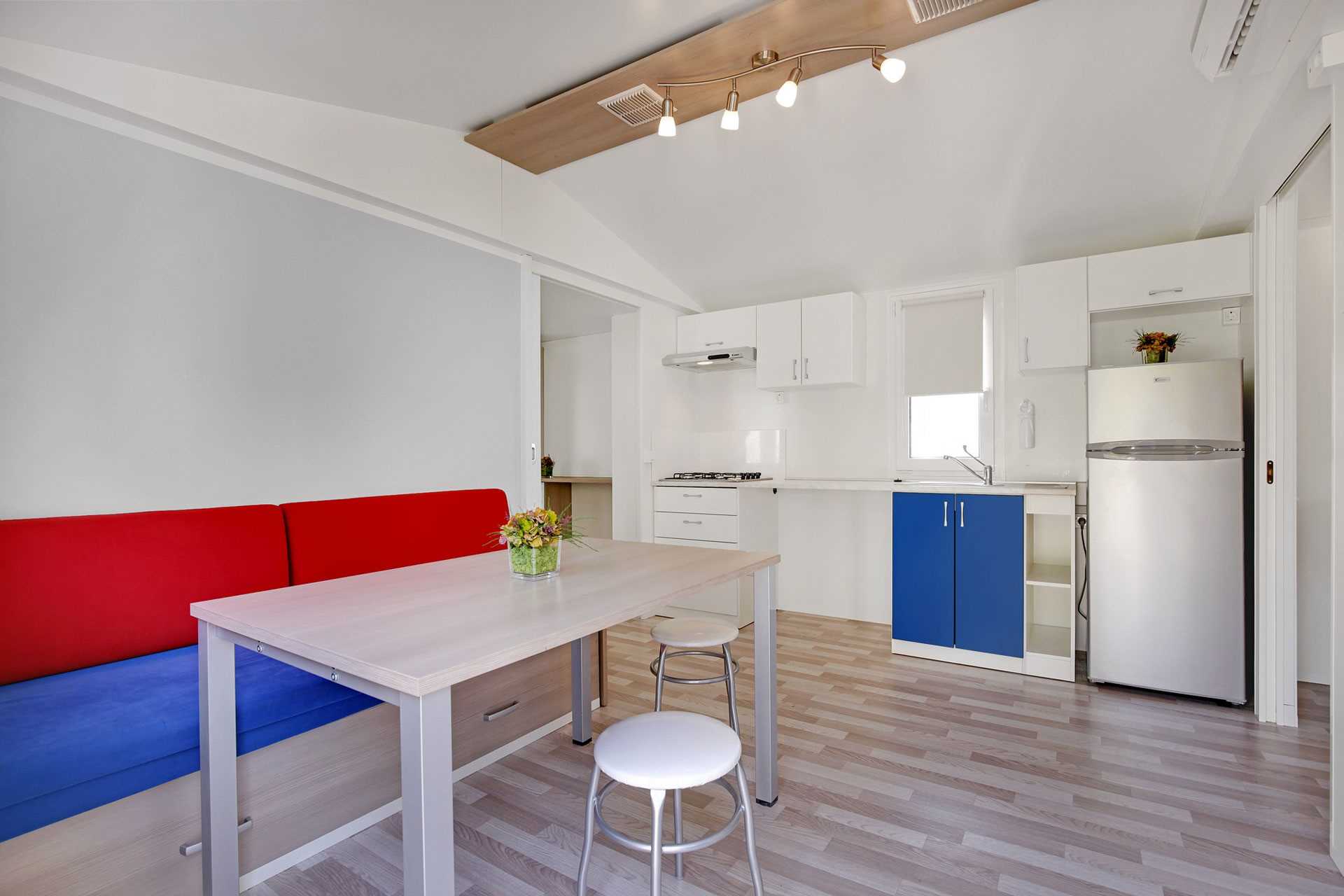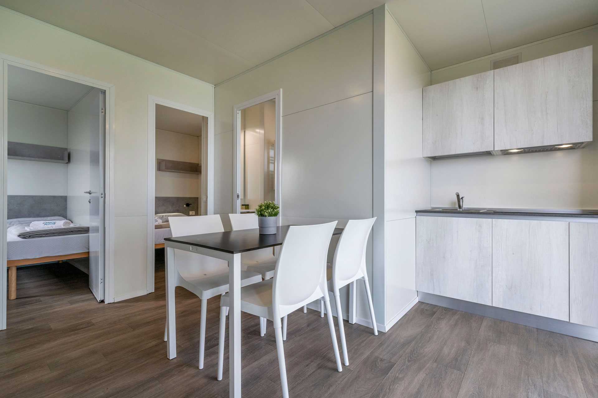 Le Mobile Home “Acacie” sono unità abitative adatte a chi sceglie di trascorrere le proprie vacanze in unambiente spazioso, moderno e dotato di alti livelli di comfort.Sono dotate di una camera con letto matrimoniale, due camere con due letti singoli, bagno privato,cucina attrezzata, frigorifero, sistema di climatizzazione/riscaldamento.Queste unità abitative sono perfette per chi desidera vivere un soggiorno unico a Venezia, ricreando unambiente familiare in un’atmosfera assolutamente rilassante.