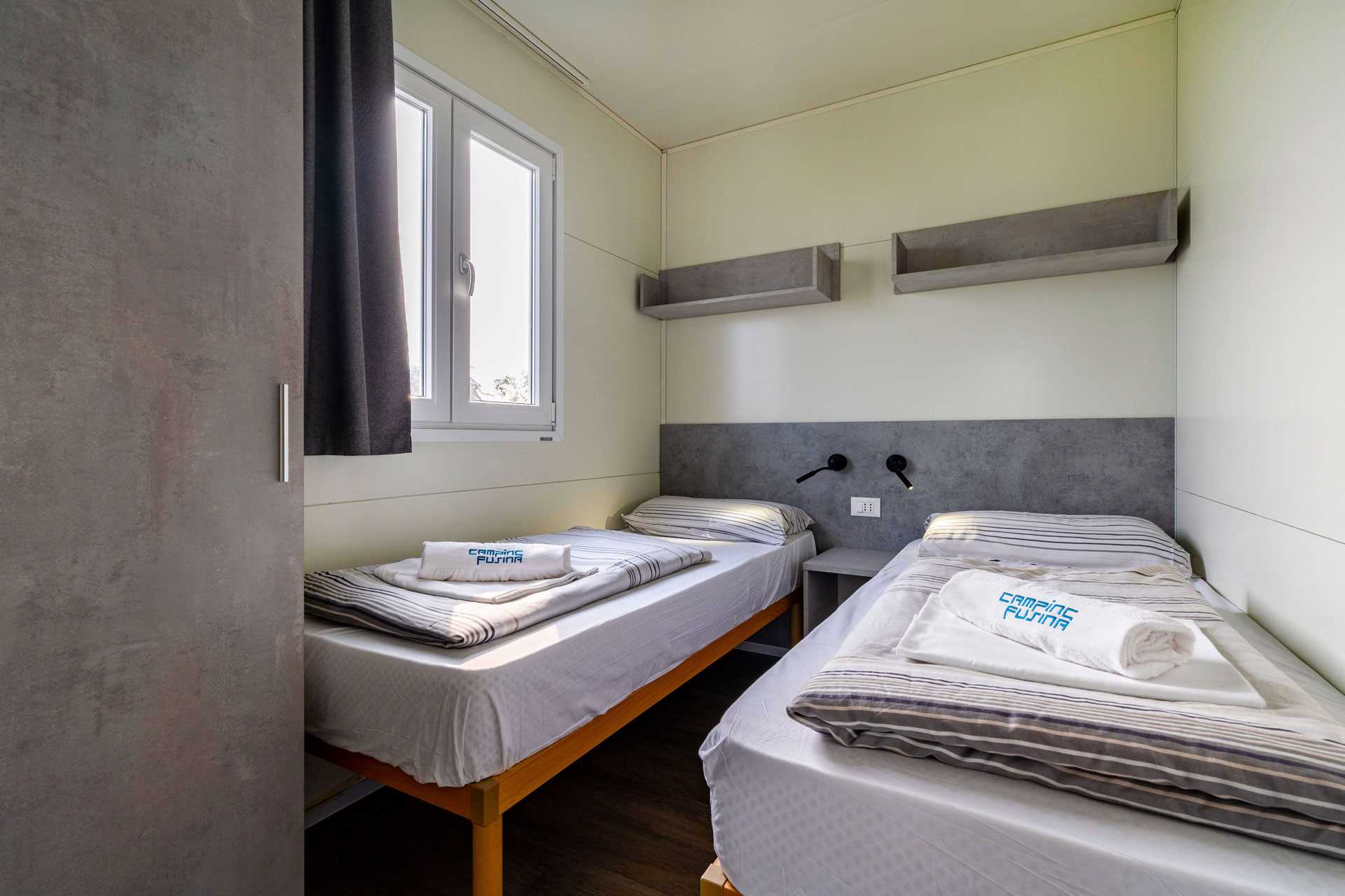 Le Mobile Home “Oleandri” sono la soluzione ideale per viaggiatori in cerca di un alloggio minimale, ma comunque confortevole e di qualità. Dispongono di una camera con due letti singoli, aria condizionata/riscaldamento e bagno privato.