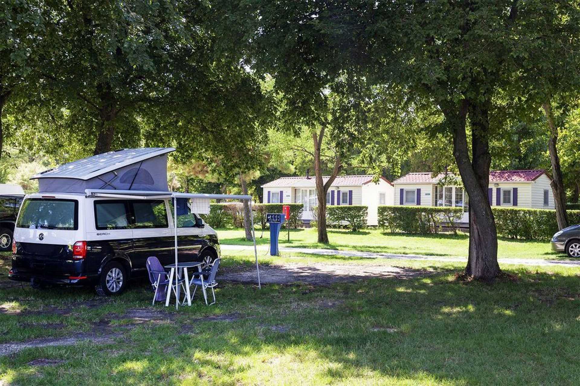 Le piazzole dell' "Area Green" sono immerse nel verde. Si trovano adiacenti ai servizi e godono di ombra naturale fornita da alti e folti alberi. Scegli liberamente il tuo spazio, le piazzole dell'Area Green non sono delimitate!