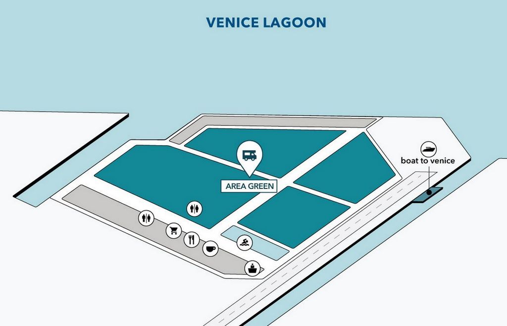 Lunghezza massima Camper/Roulotte/Caravan: 7 metri. Le piazzole dell' "Area Fronte Laguna" sono situate sulla gronda lagunare e godono di un'esclusiva vista panoramica su Venezia.