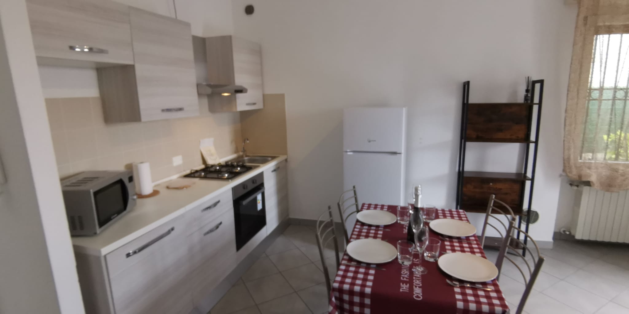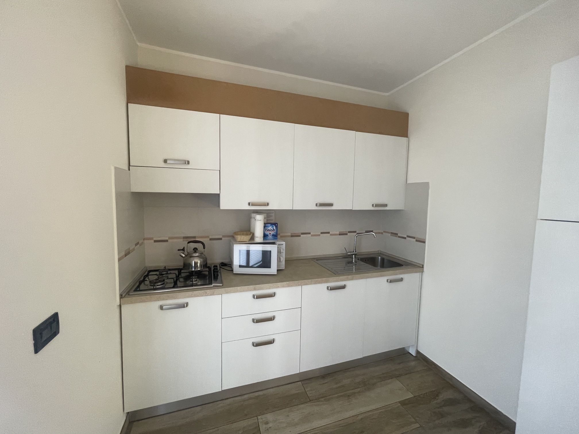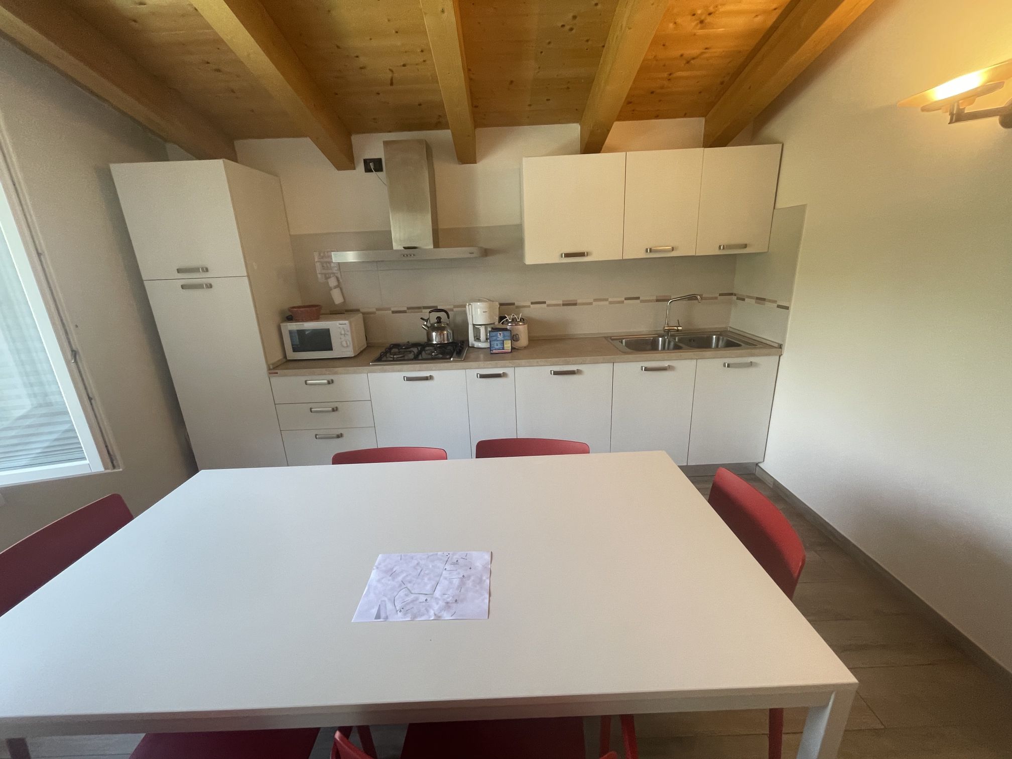 - Angolo cottura attrezzato con piano cottura, forno, frigorifero e microonde