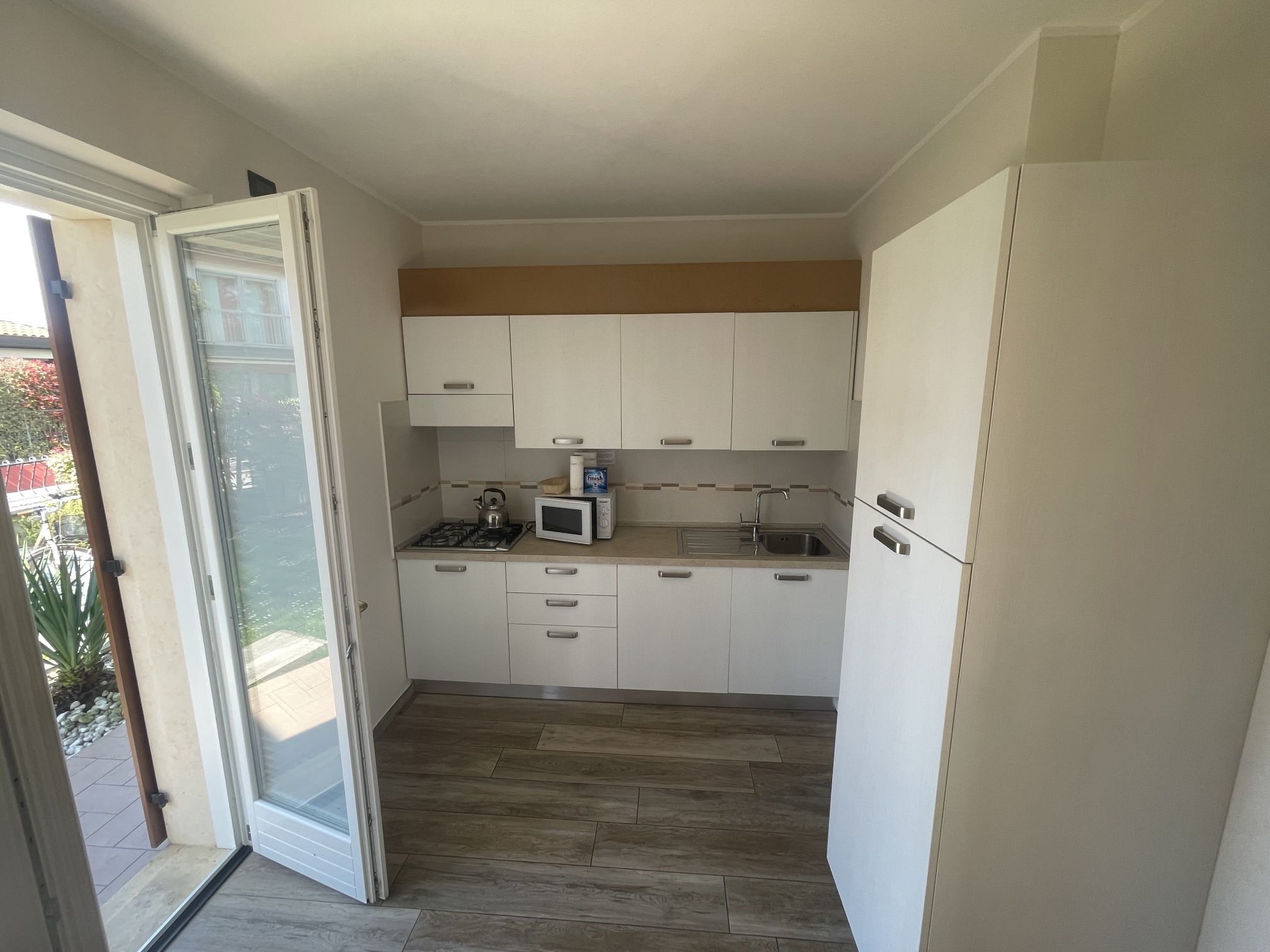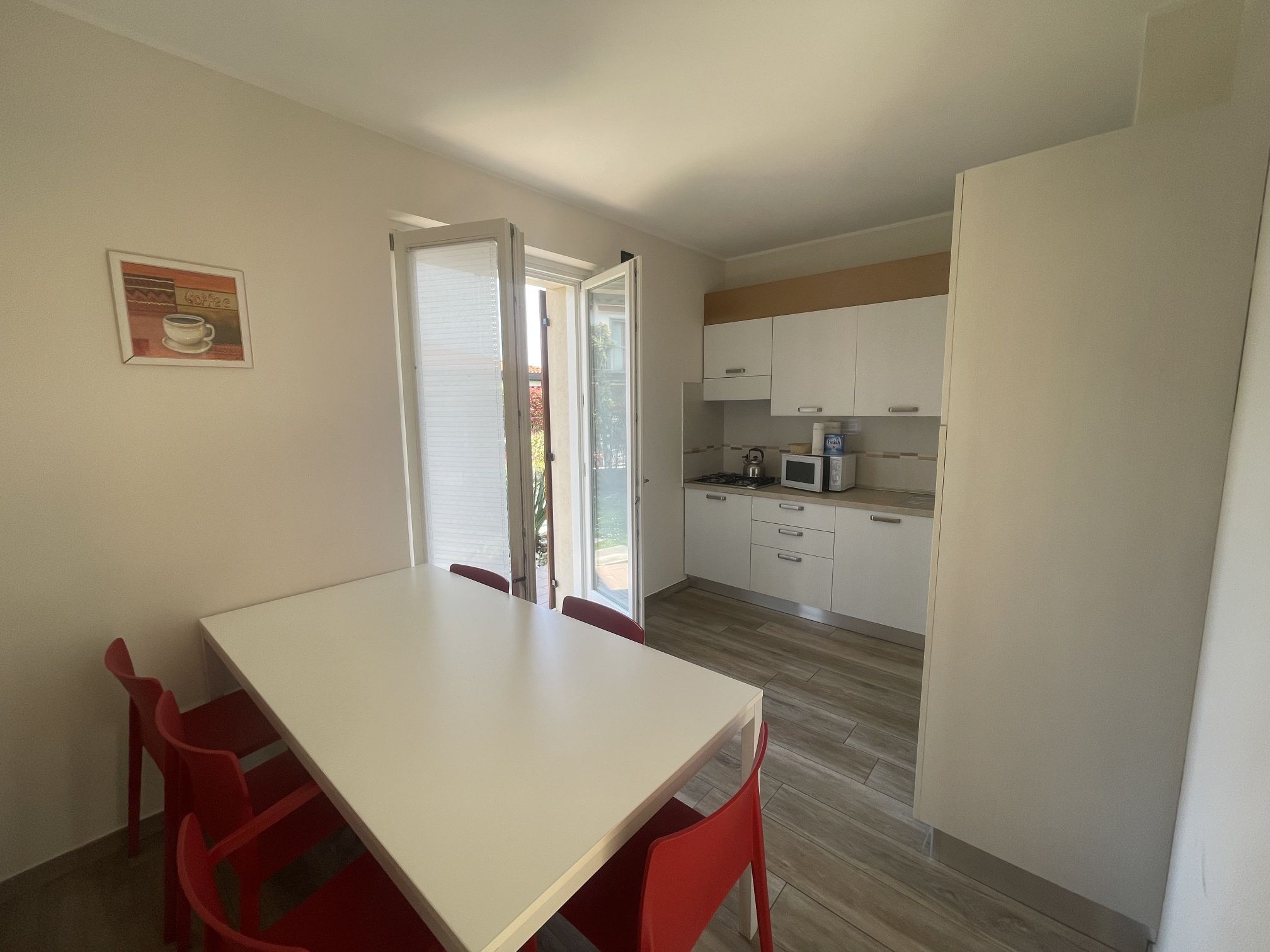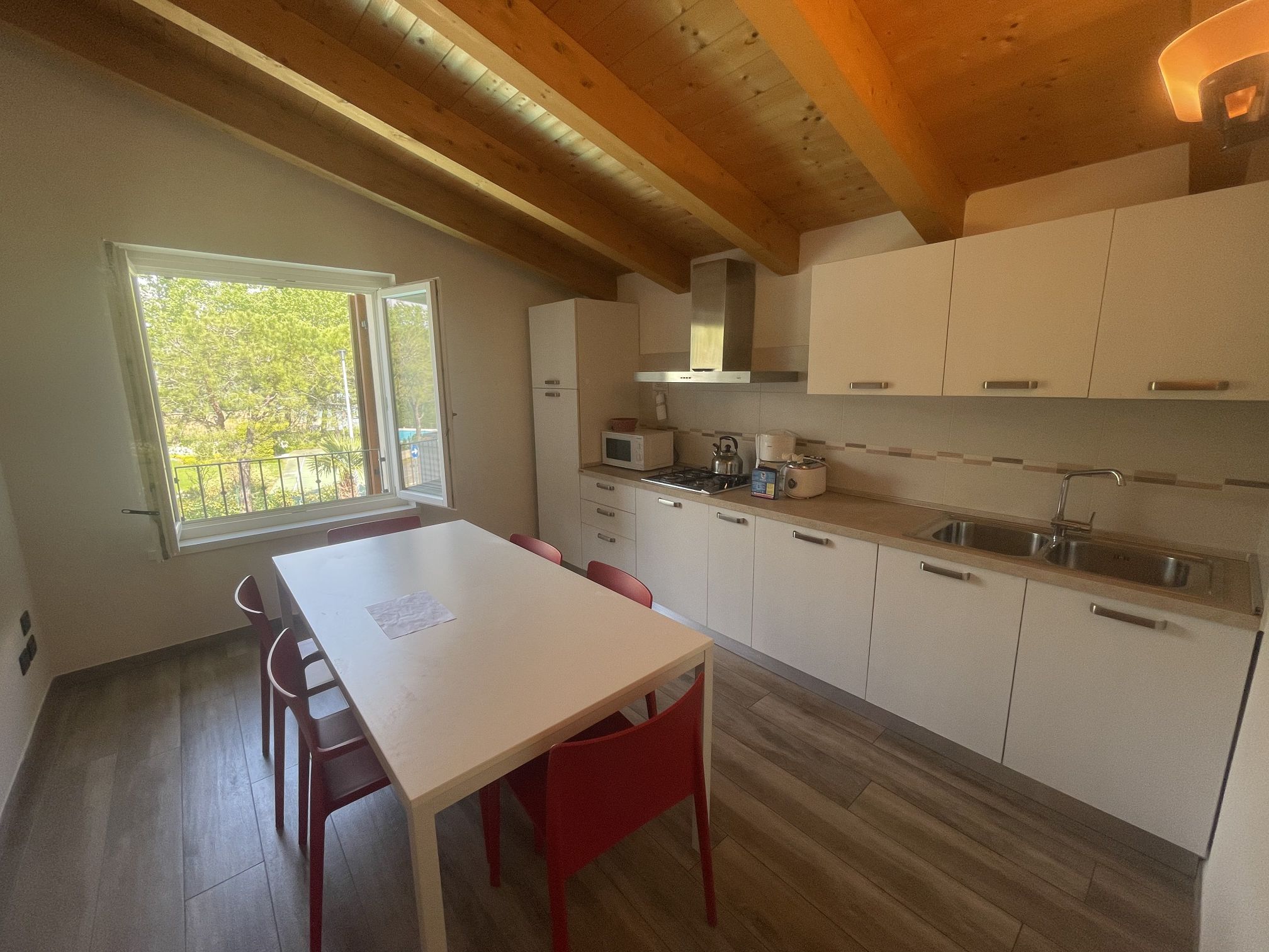 - Angolo cottura attrezzato con piano cottura, forno, frigorifero e microonde