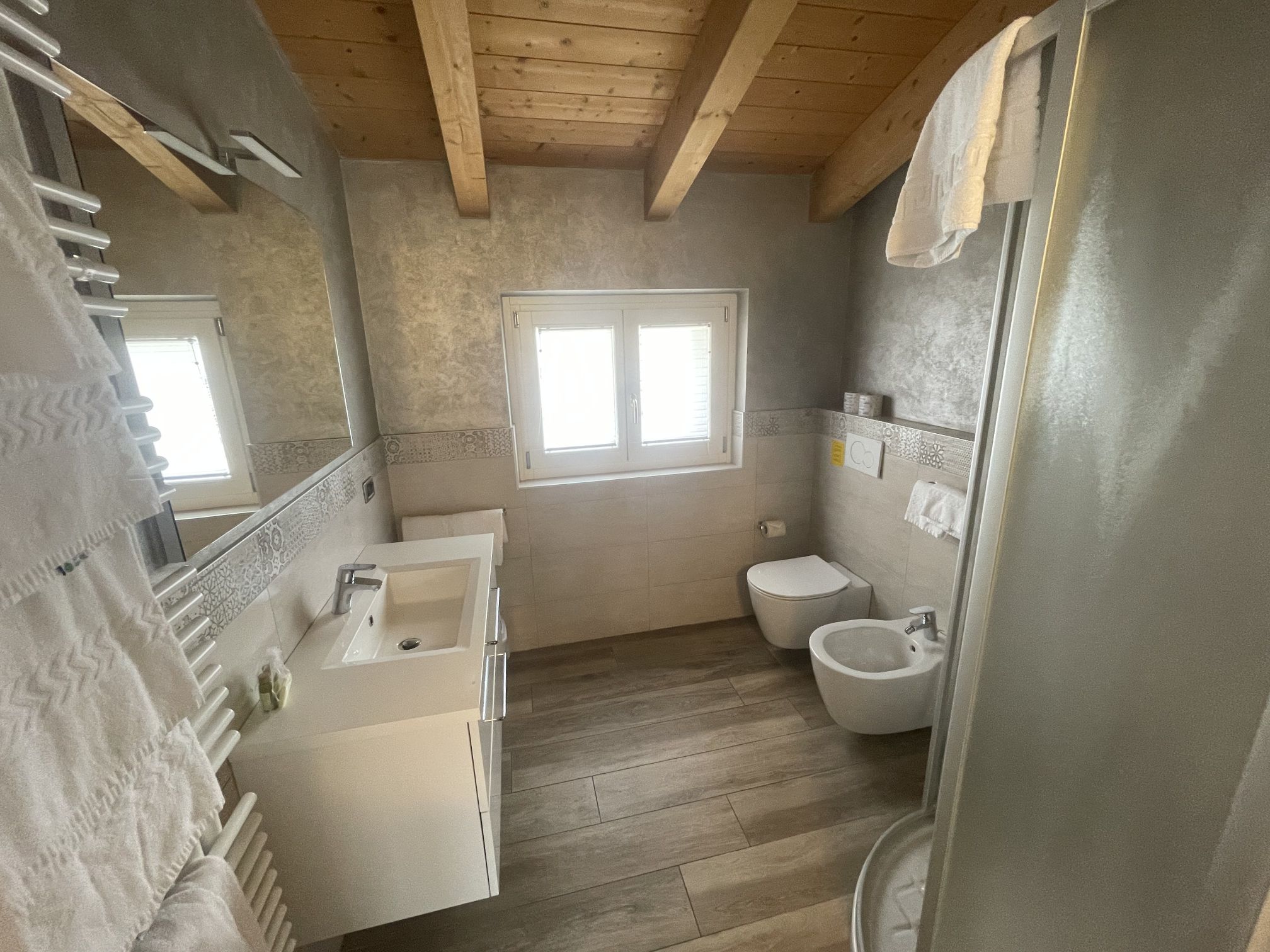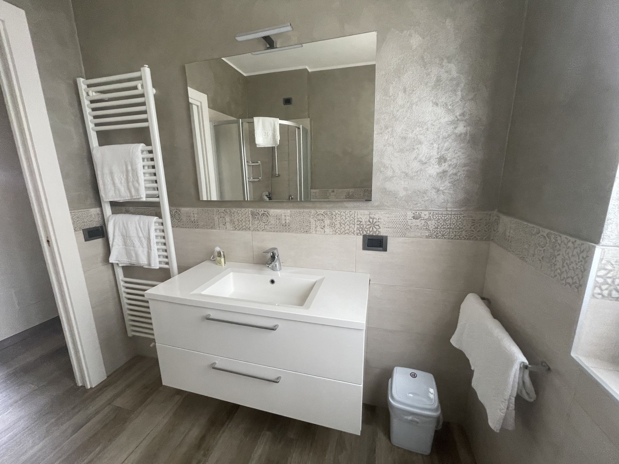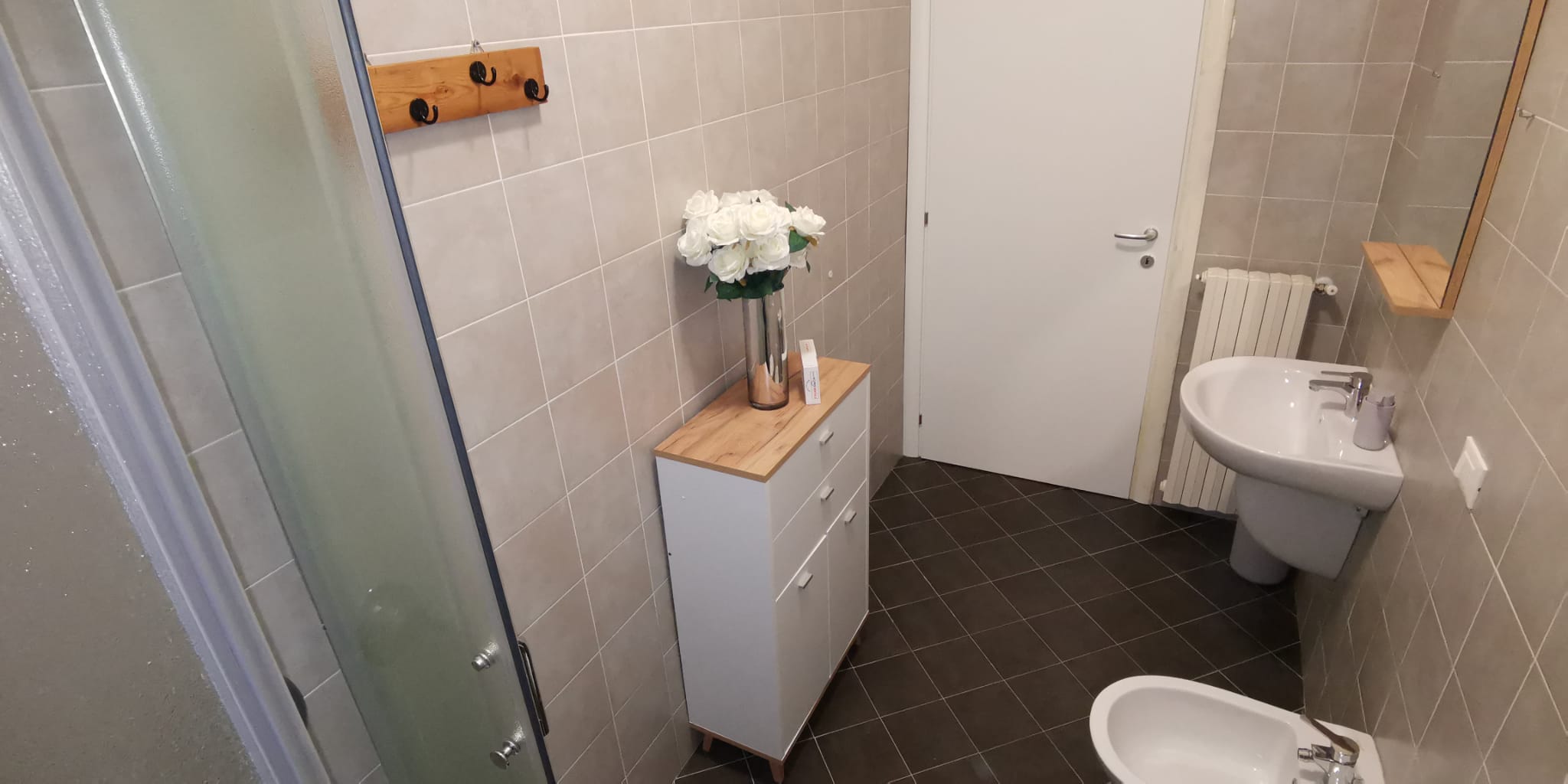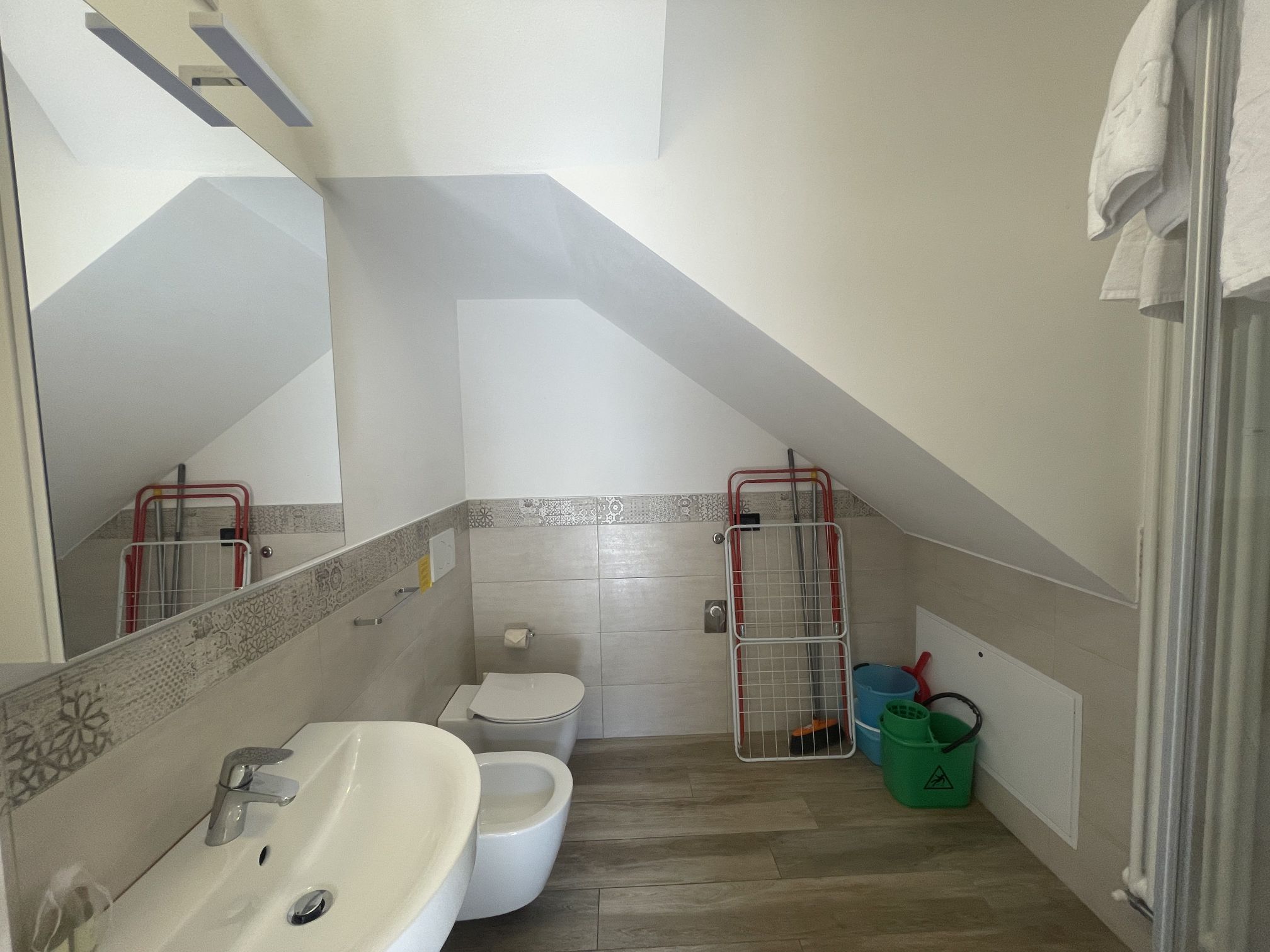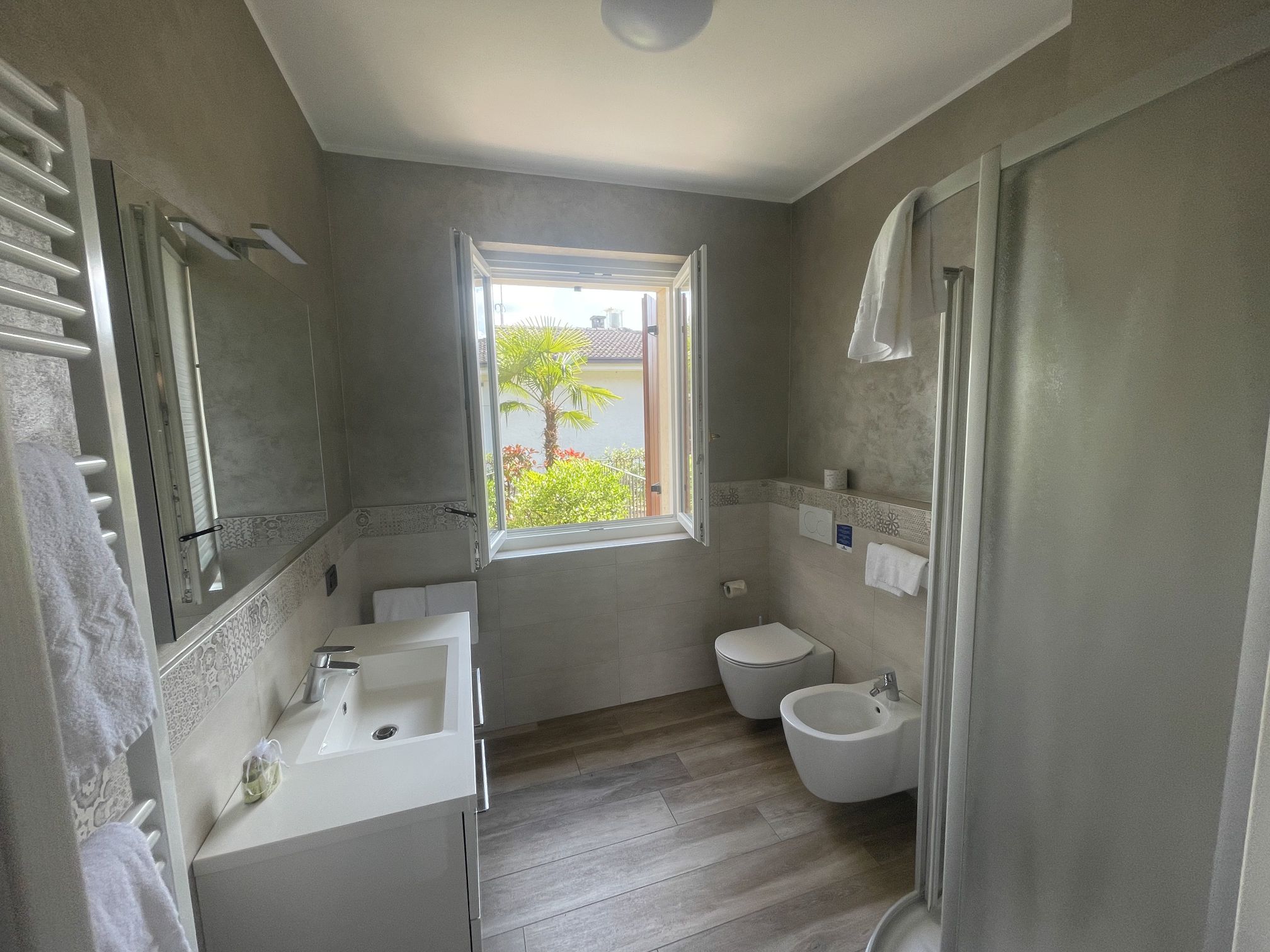 - Bagno moderno con doccia, WC, bidet e lavatrice