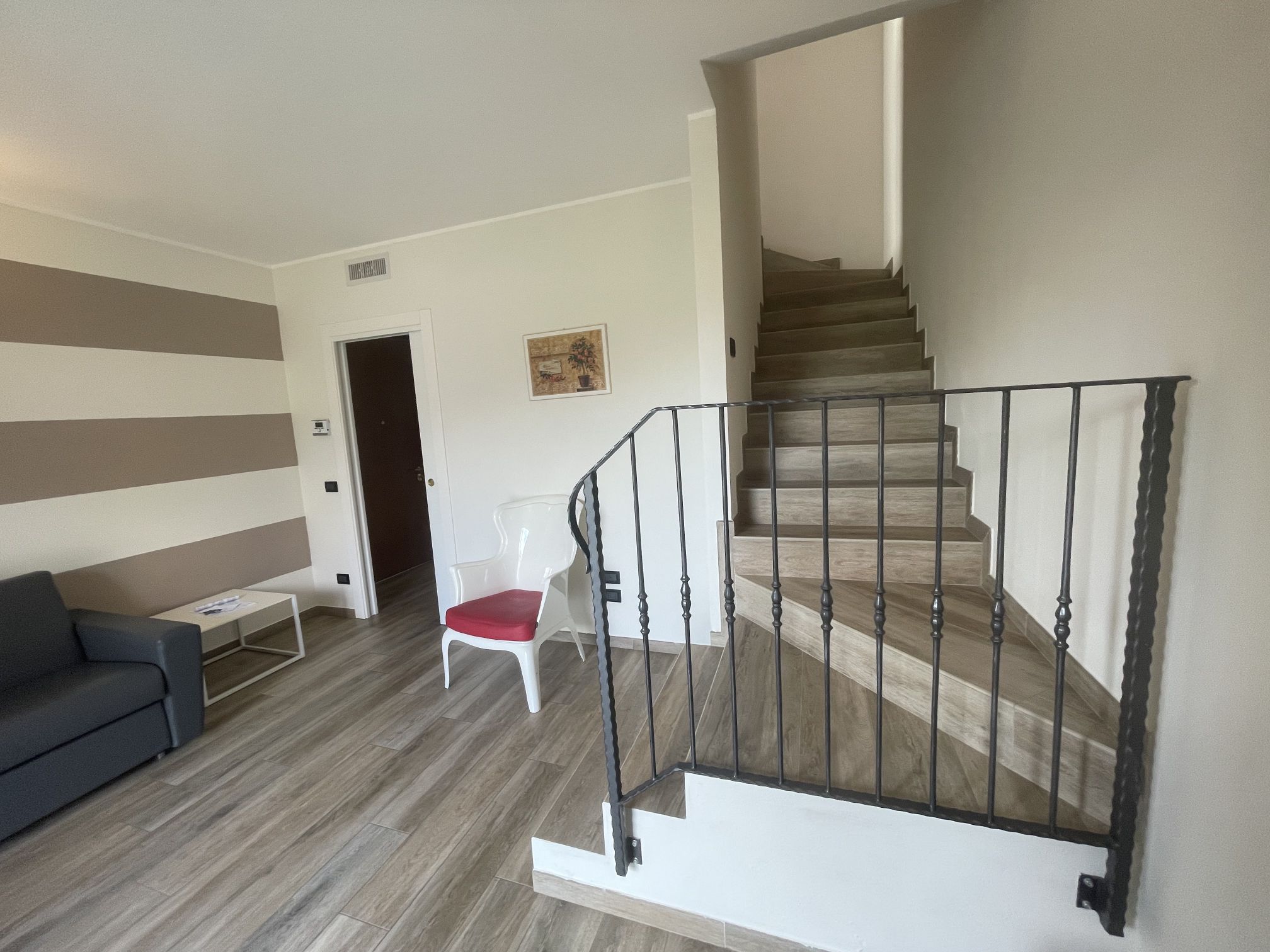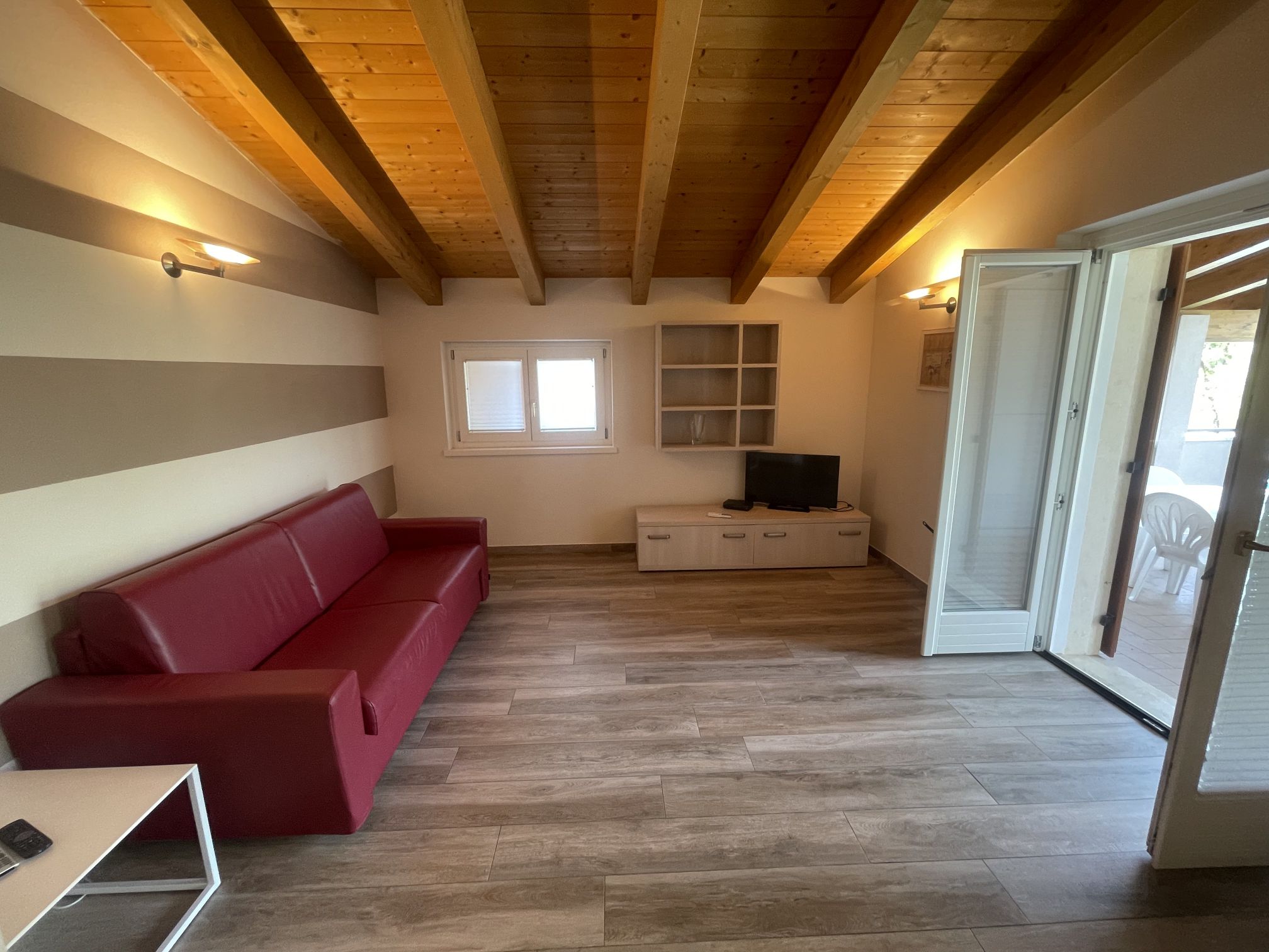 L'appartamento "Villa Aurora 2" situato in zona residenziale di Punta Grò, a un centinaio di metri dall'Hotel, è una porzione di una villa singola di sole tre unità abitative. L'appartamento è disposto su due livelli, piano terra composto da cucina, un bagno e salotto, terrazza e giardino con utilizzo della piscina privata della villa, piano primo una stanza matrimoniale, un bagno e una stanza con due letti singoli. Composto da un'ampia e luminosa zona giorno con accesso diretto alla terrazza attrezzata con tavolo e sedie e un piccolo barbeque, angolo cottura completamente attrezzato e zona pranzo. E' possibile ricavare altri due posti letto utilizzando il divano in salotto.
