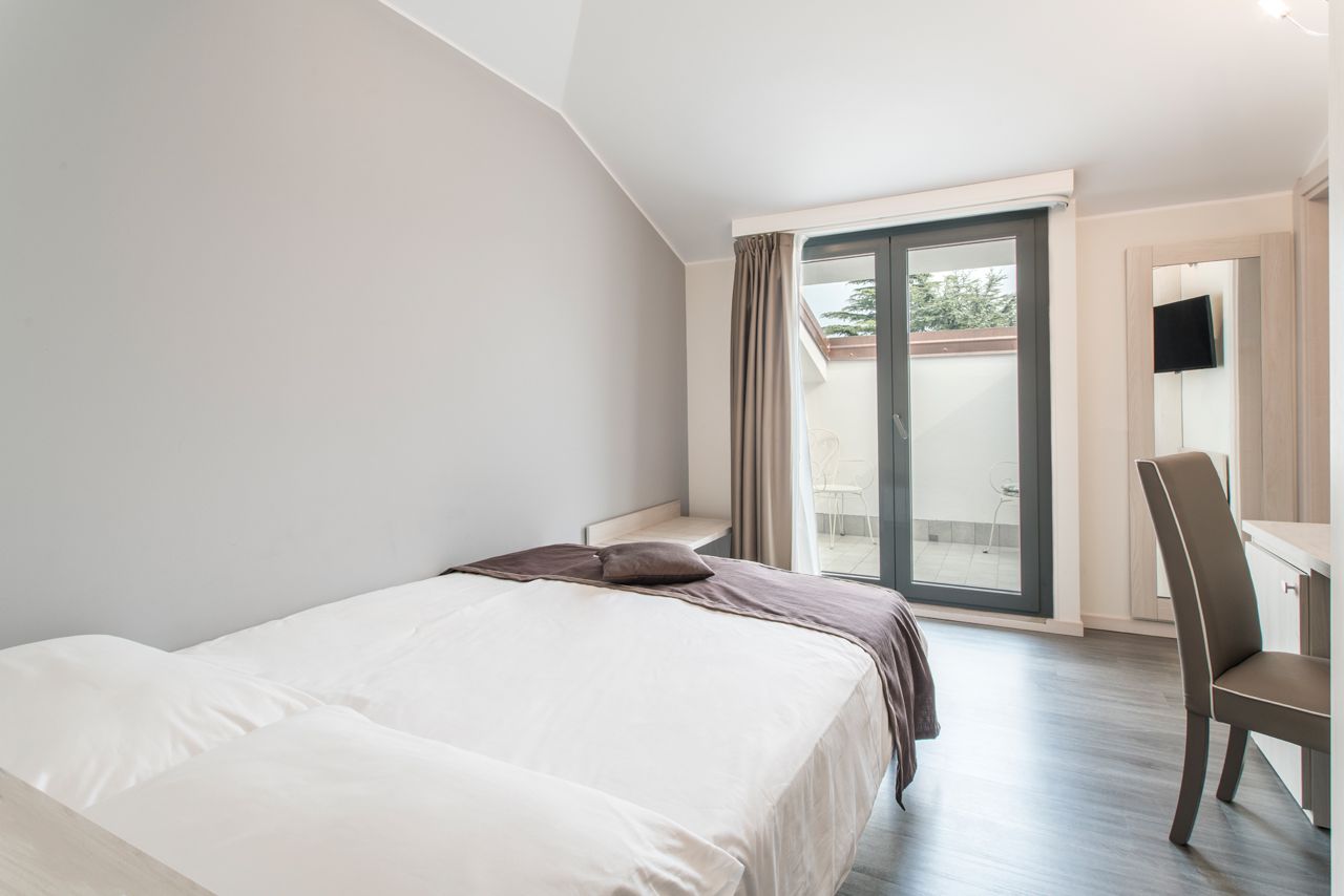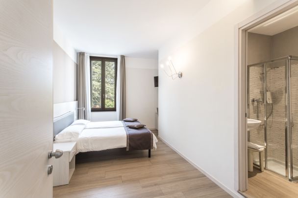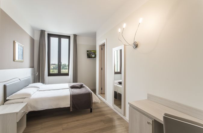 Completamente rinnovate con nuovi impianti, serramenti, arredate in stile classico/moderno con colori tenui, mansardate, alcune con grazioso balcone; piu’ piccole dello standard, con letto alla francese, dotate di aria condizionata, tv sat a schermo piatto, bagno con doccia, servizio cortesia, asciugacapelli