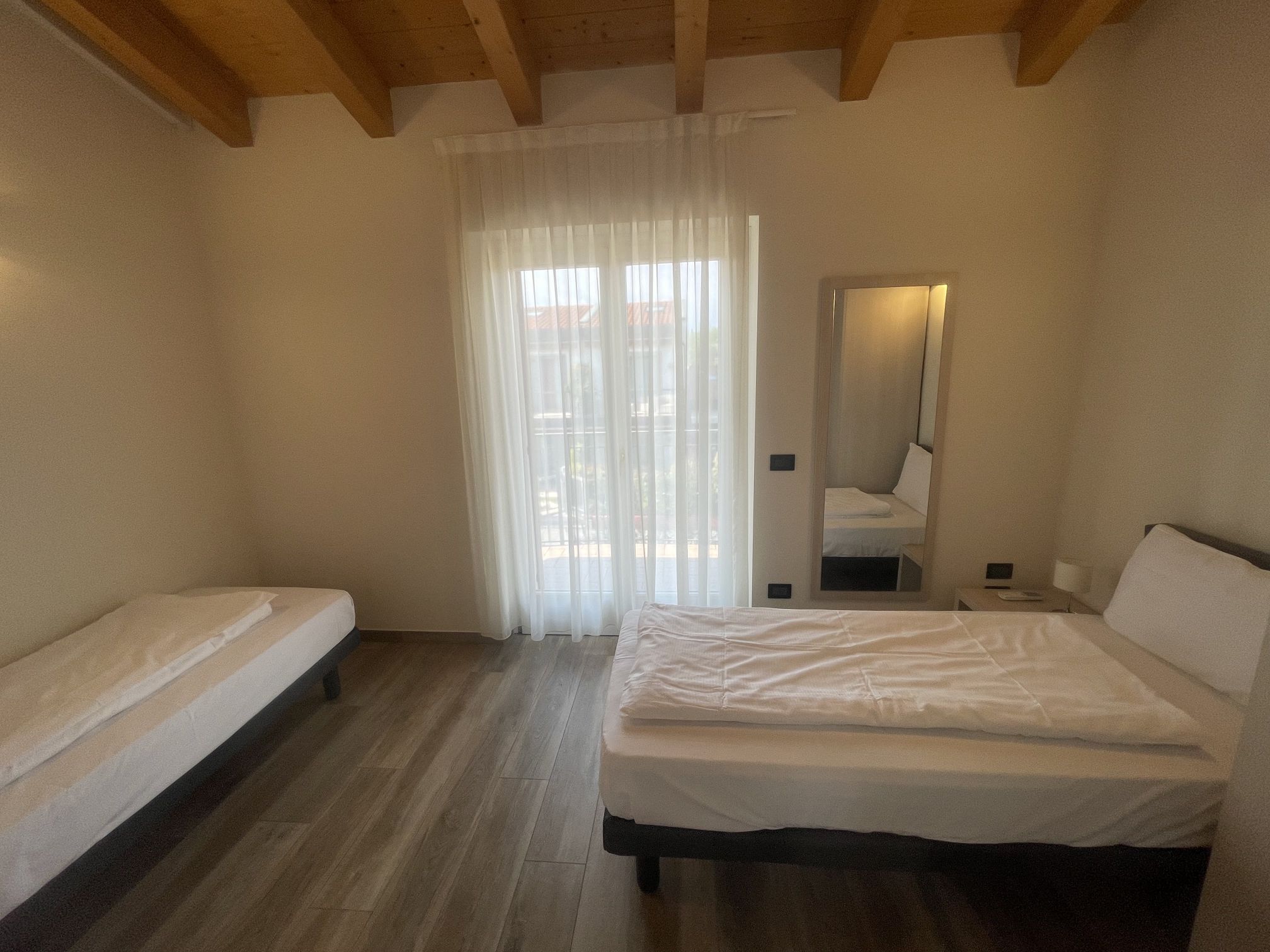 L'appartamento "Villa Aurora 1" situato in zona residenziale di Punta Grò, a un centinaio di metri dall'Hotel, è una porzione di una villa singola di sole tre unità abitative. L'appartamento è disposto su un unico piano,al piano terra composto da cucina, una stanza matrimoniale, una stanza con due letti singoli, due bagni, un salotto, terrazza e giardino con utilizzo della piscina privata della villa. Composto da un'ampia e luminosa zona giorno con accesso diretto alla terrazza attrezzata con tavolo e sedie e un piccolo barbeque, angolo cottura completamente attrezzato e zona pranzo. E' possibile ricavare altri due posti letto utilizzando il divano in salotto.