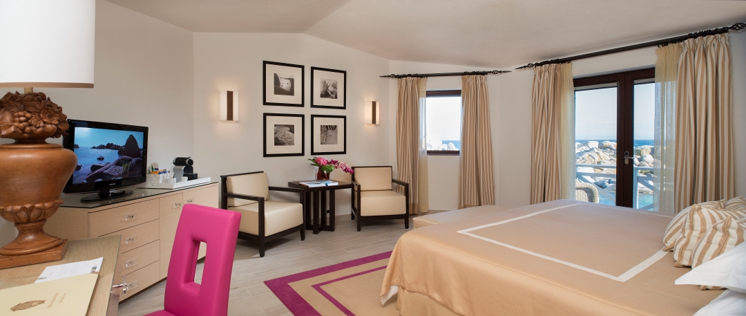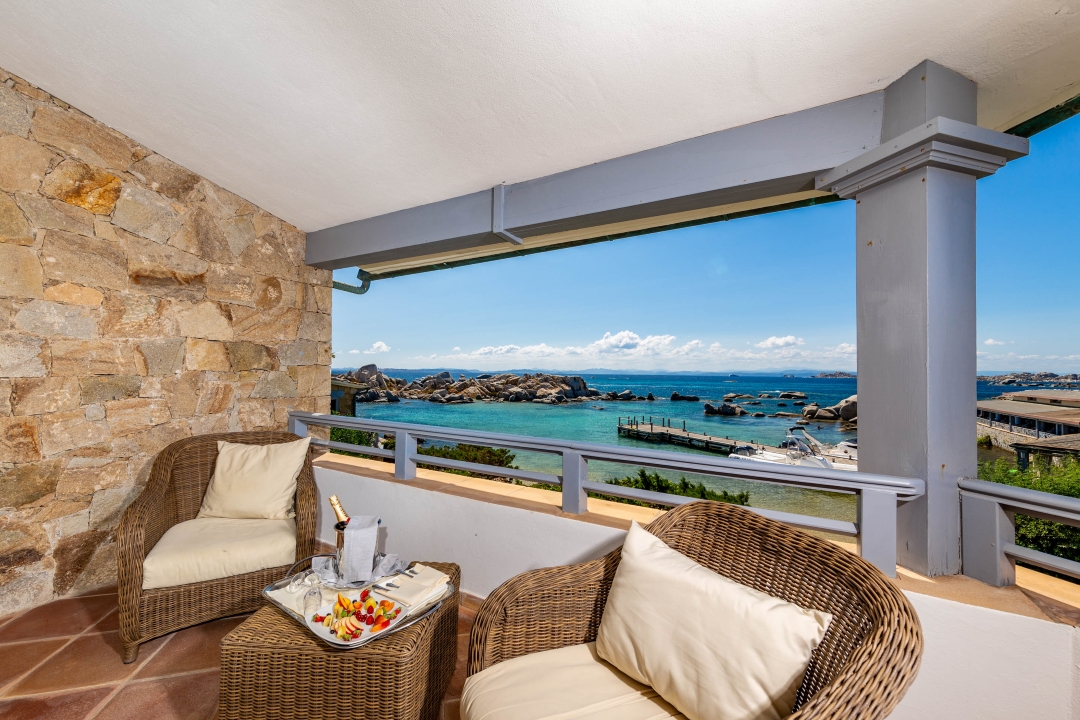 Una camera speciale con spettacolare vista sull’arcipelago di Lavezzi e balcone sopraelevato sul mare di Cavallo.