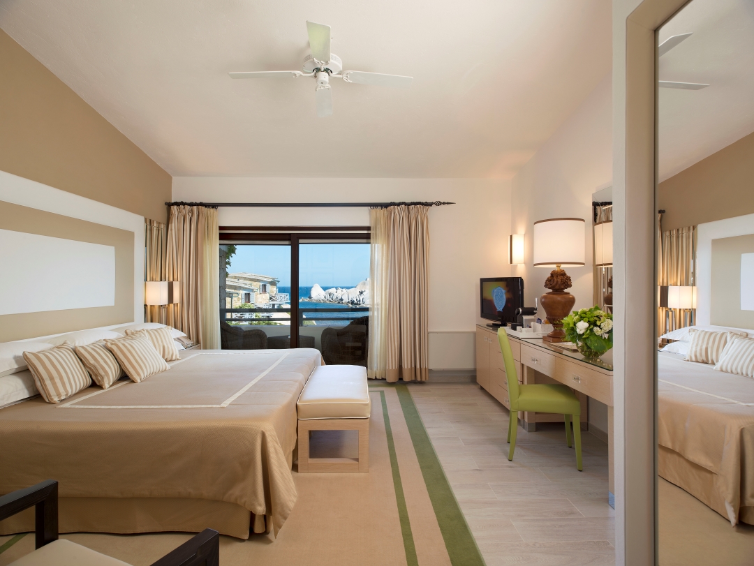Queste camere hanno una superficie media di 15-20 mq e dai loro balconi si può godere della splendida vista del mare turchese di Cavallo.