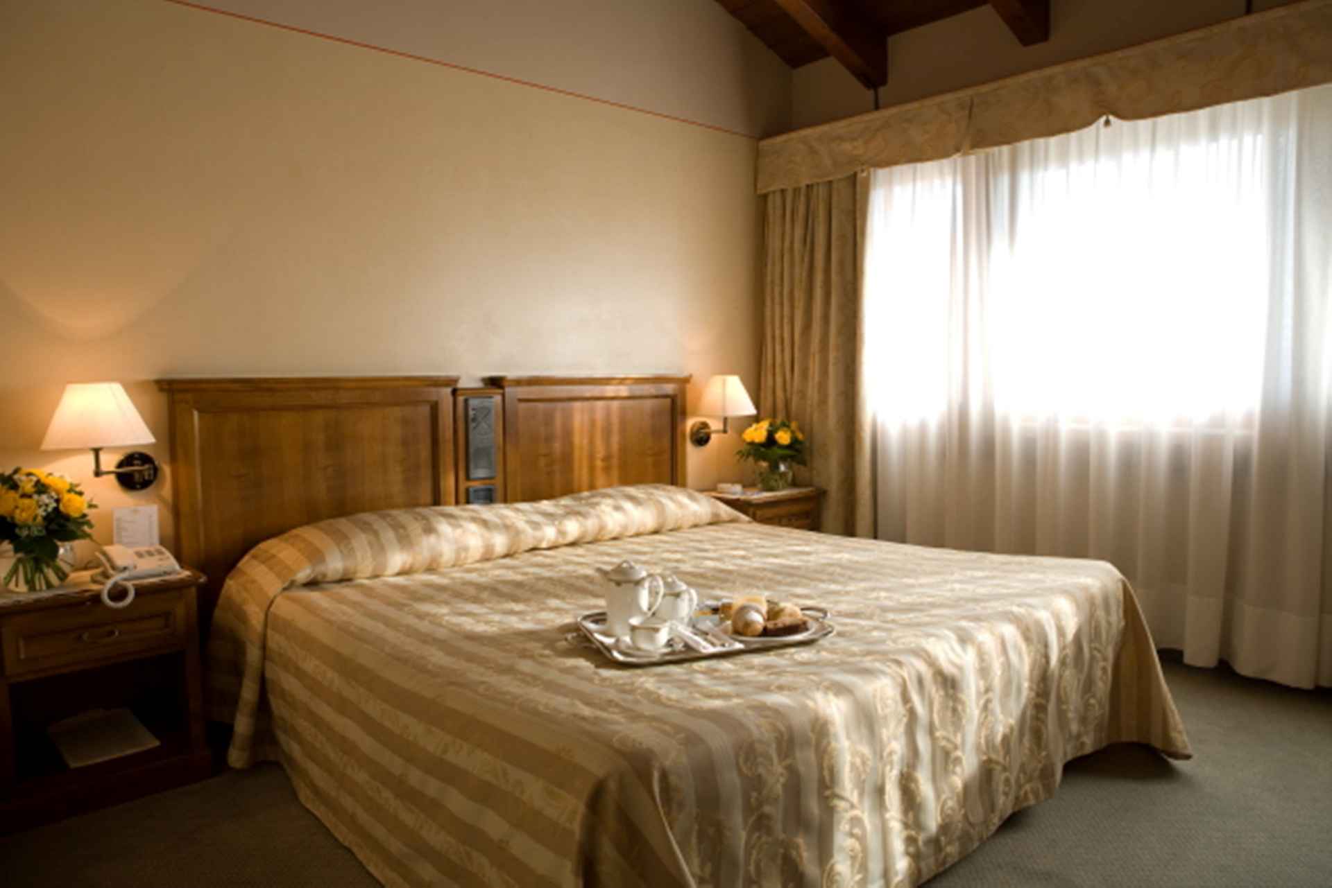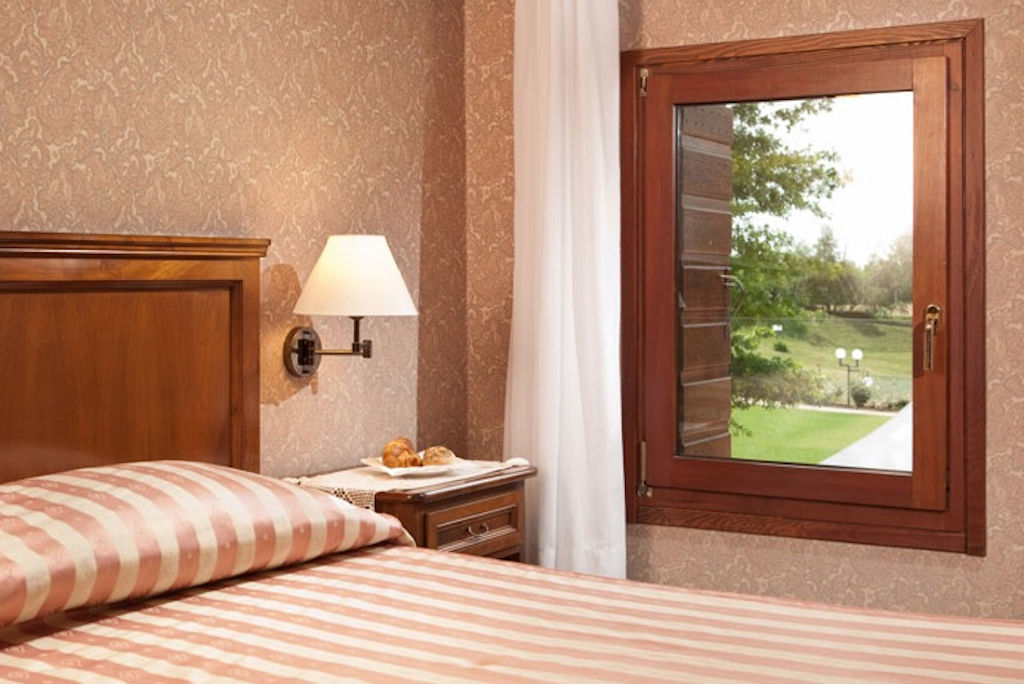 Camere dotate di un confortevole letto matrimoniale, pavimento sui toni del legno chiaro o una calda moquette, scrivania in stile classico come il resto dell’arredo, bagno piastrellato con doccia.
