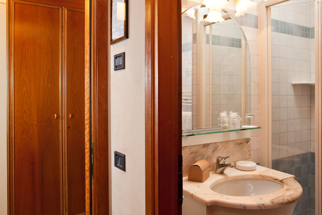 Le nostre camere singole sono dotate di un comodo letto singolo, pavimento sui toni del legno chiaro o una calda moquette, scrivania in stile classico come il resto dell’arredo, bagno piastrellato con doccia.