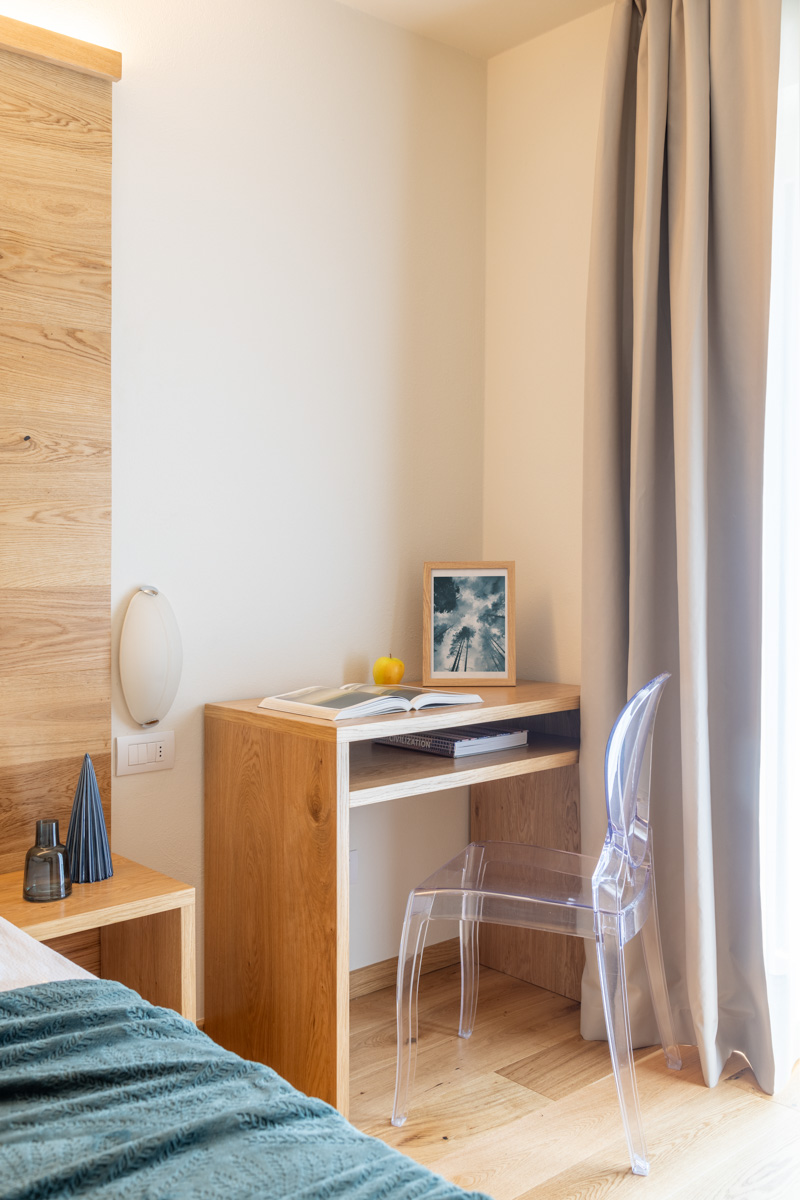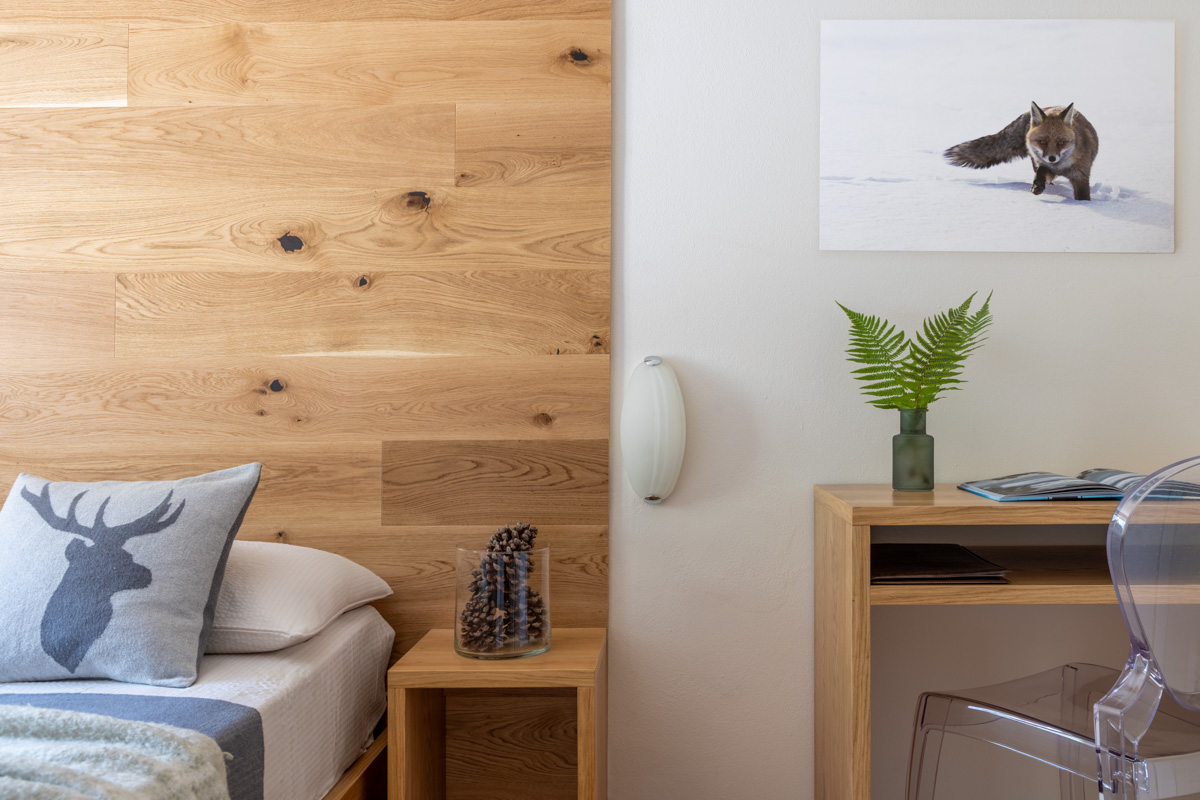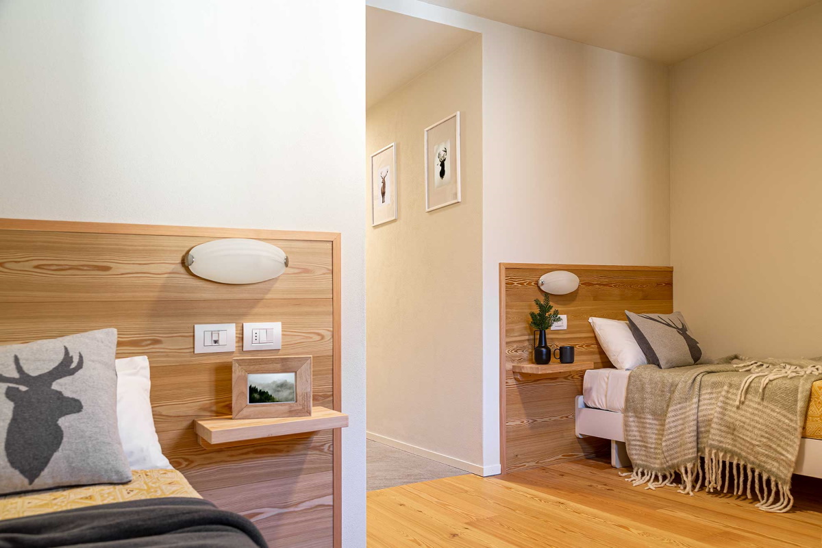 Camere Matrimoniali Queen, il legno le contraddistingue, interamente realizzate in rovere , pratiche e dotate di balcone verso valle offrono un ottimo comfort.