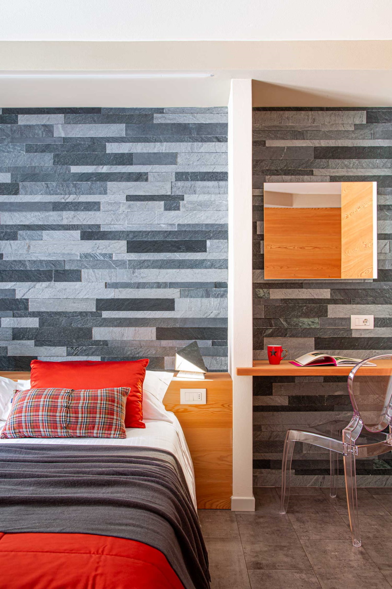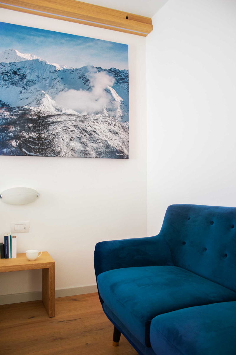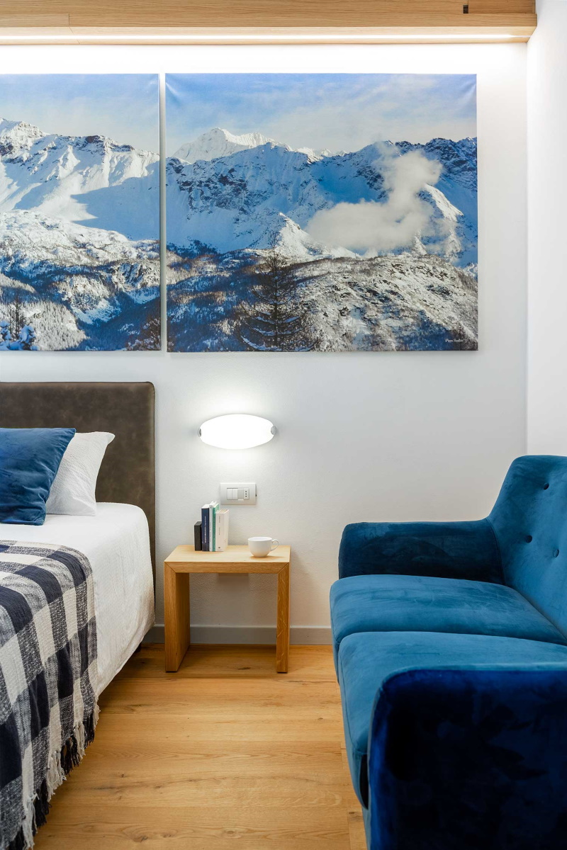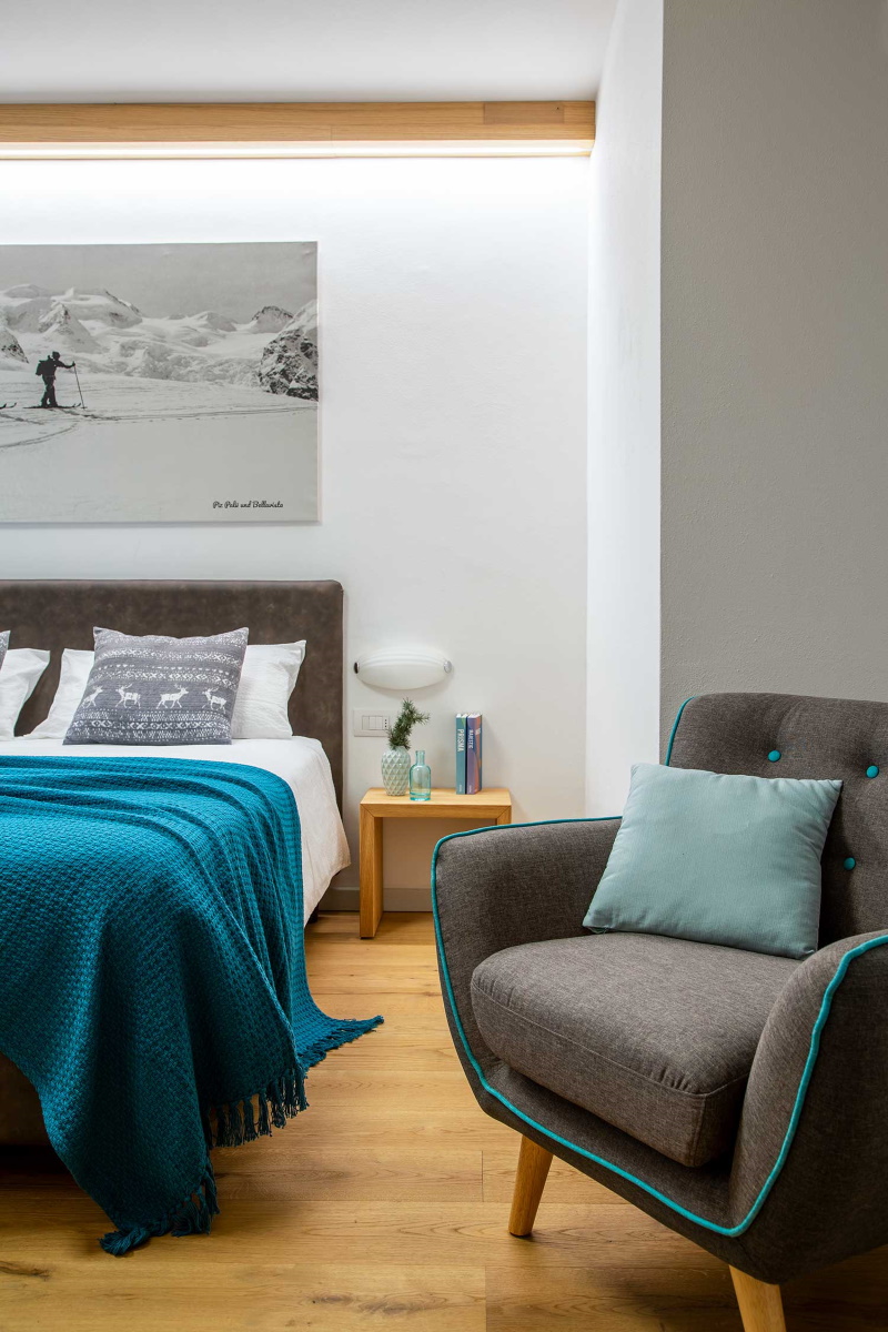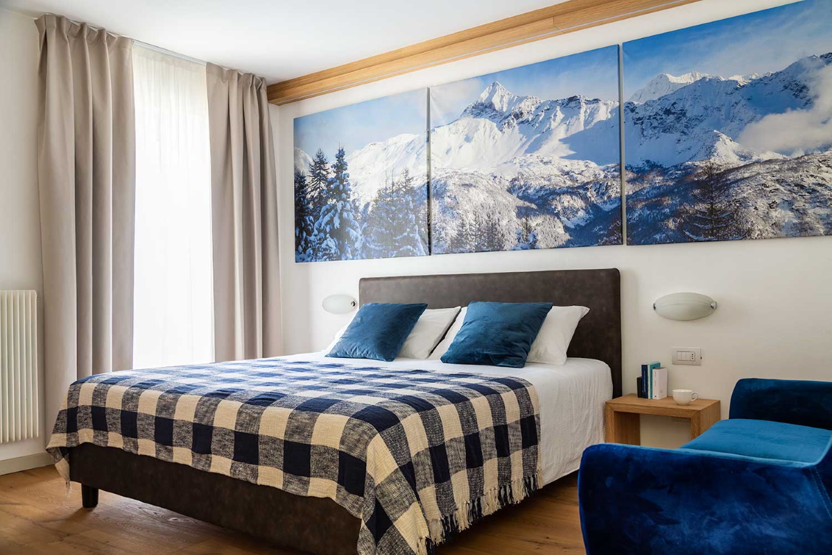 Camere Tripla Comfort, il profumo del legno e la pietra naturale della Valmalenco utilizzata nella realizzazione dei bagni contraddistinguono queste camere, tutte dotate di balcone e letti king size, offrono un ottimo comfort.