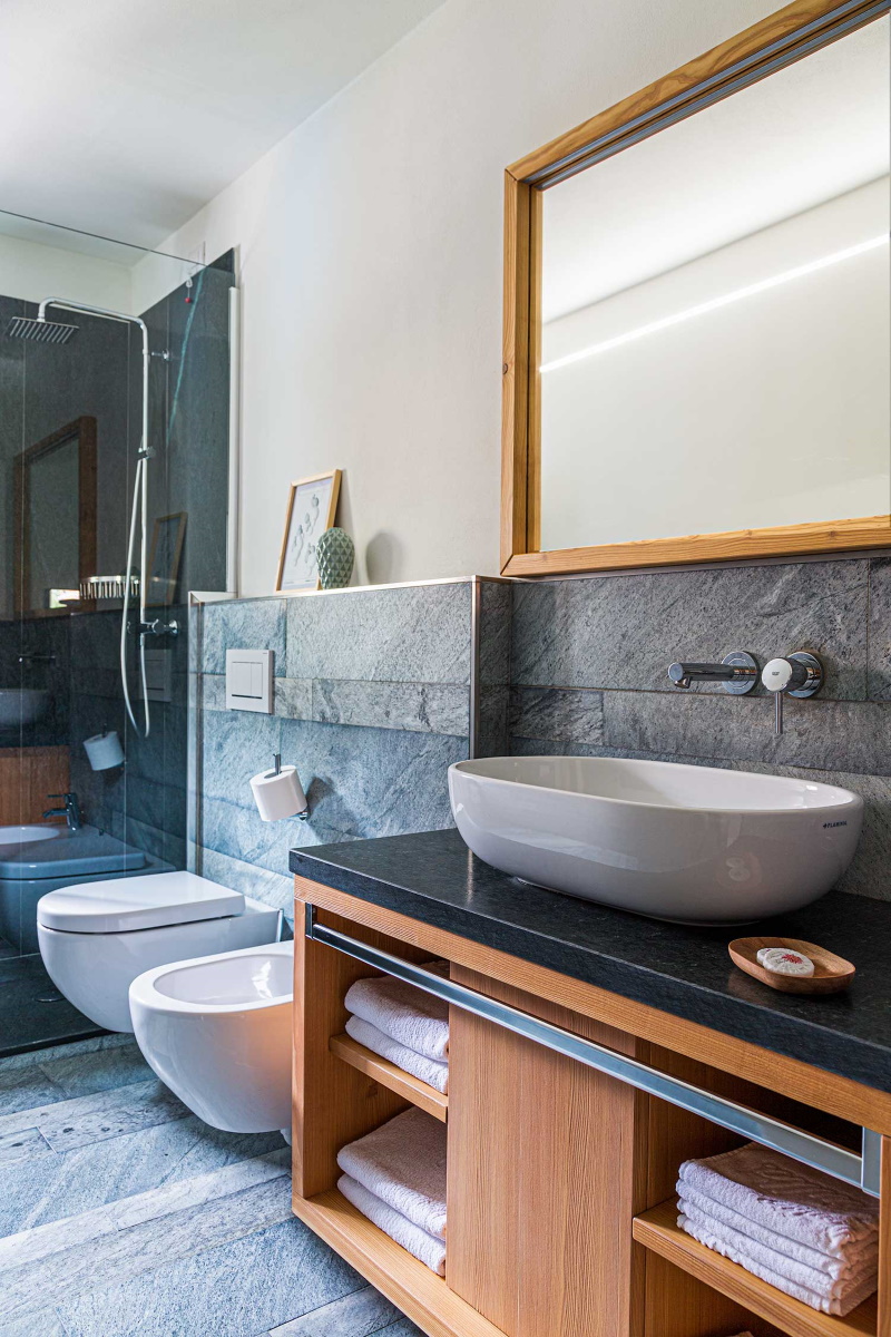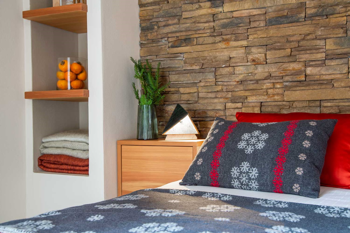 Camere Matrimoniali King, il profumo del legno e la pietra naturale della Valmalenco utilizzata nella realizzazione dei bagni contraddistinguono queste camere, tutte dotate di balcone e letti king size, offrono un ottimo comfort.