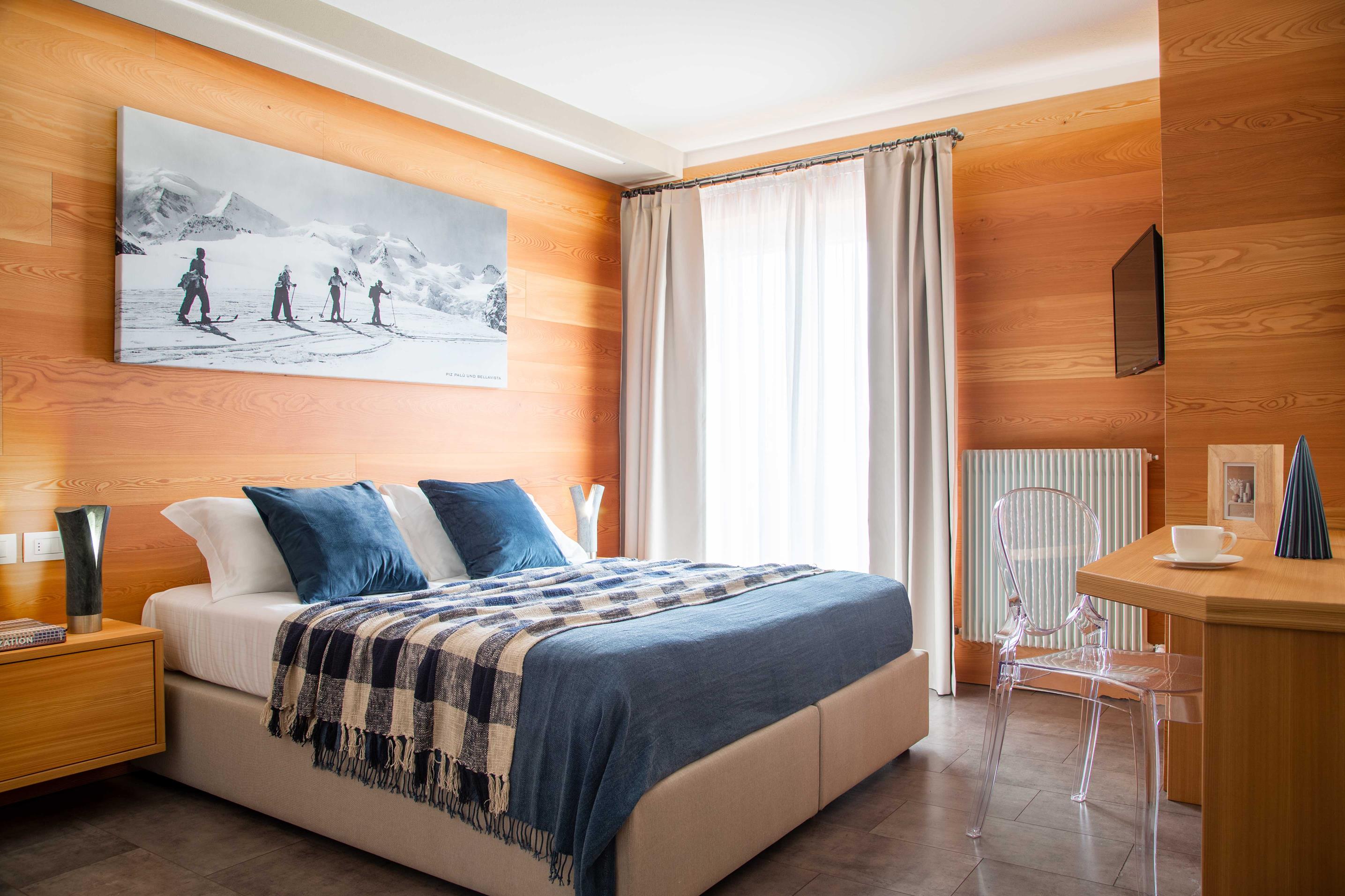 Camere Quadrupla Comfort, il profumo del legno e la pietra naturale della Valmalenco utilizzata nella realizzazione dei bagni contraddistinguono queste camere, tutte dotate di balcone e letti king size, offrono un ottimo comfort.