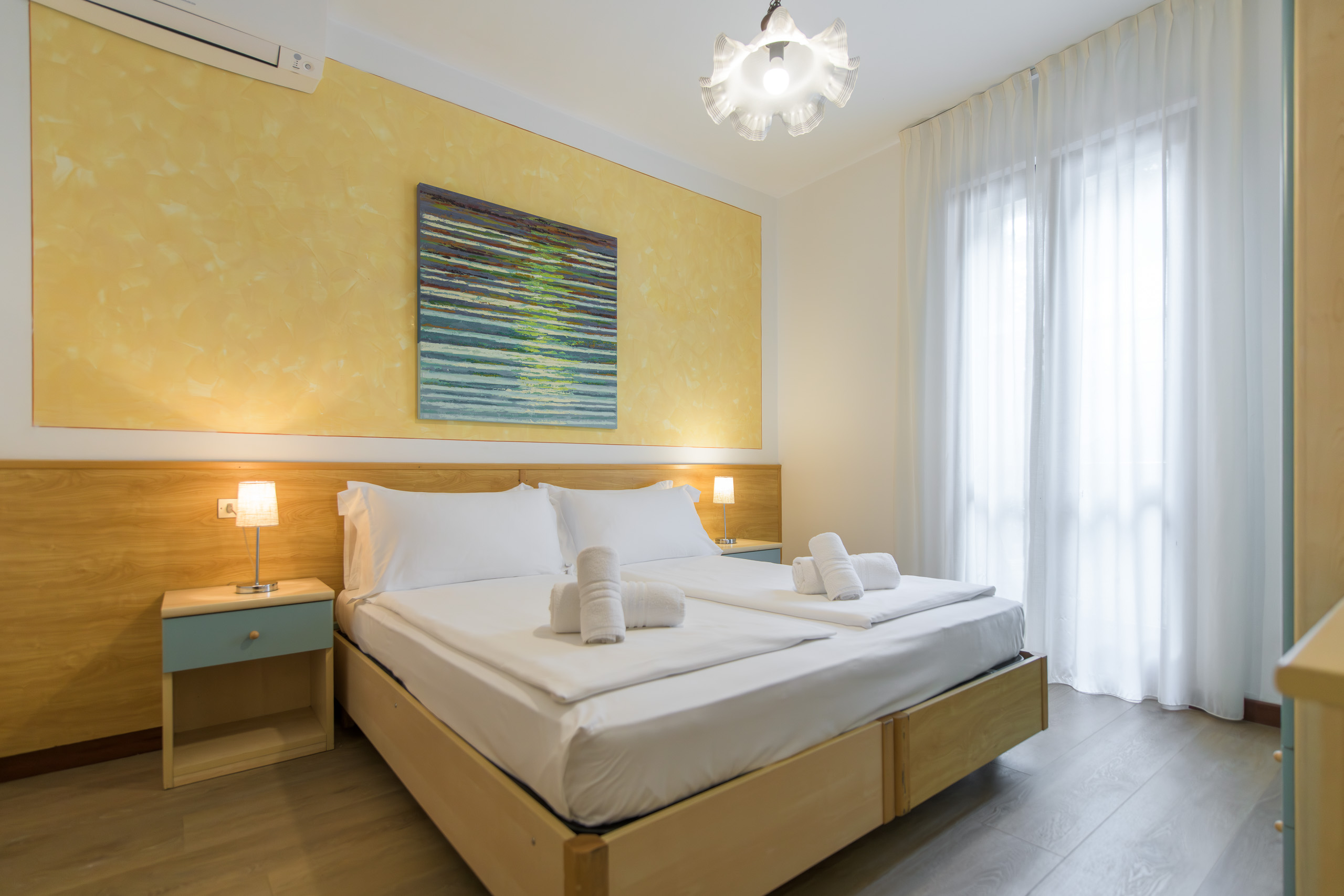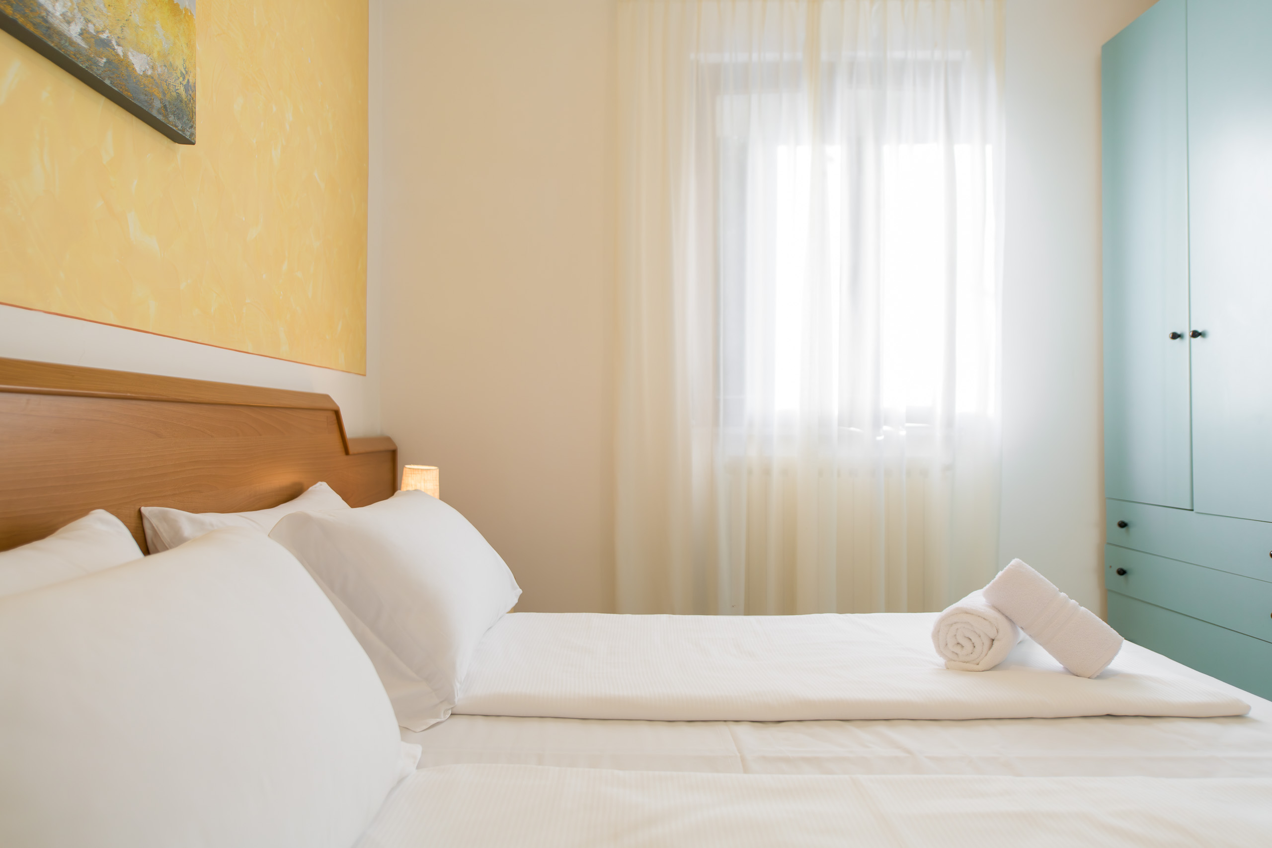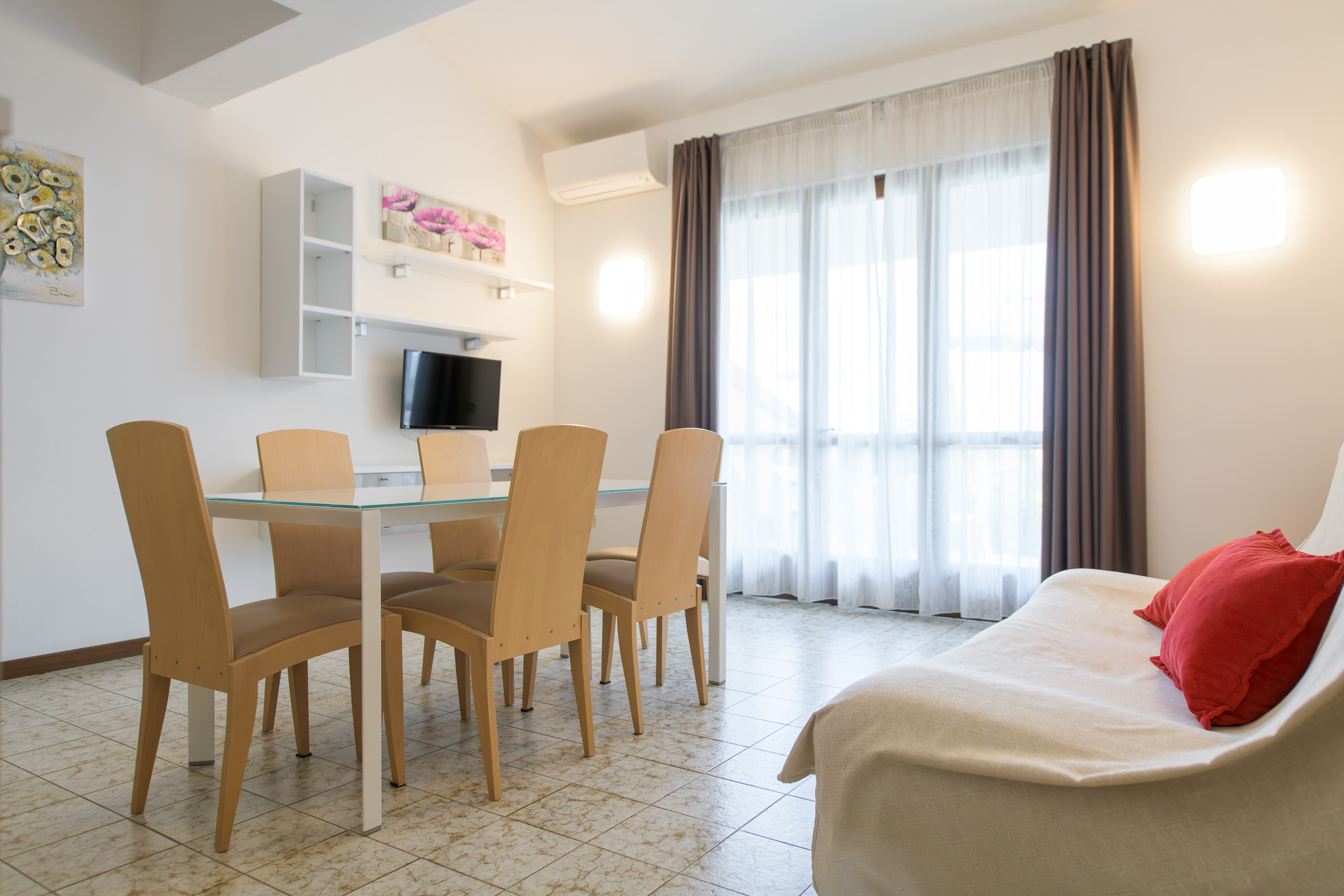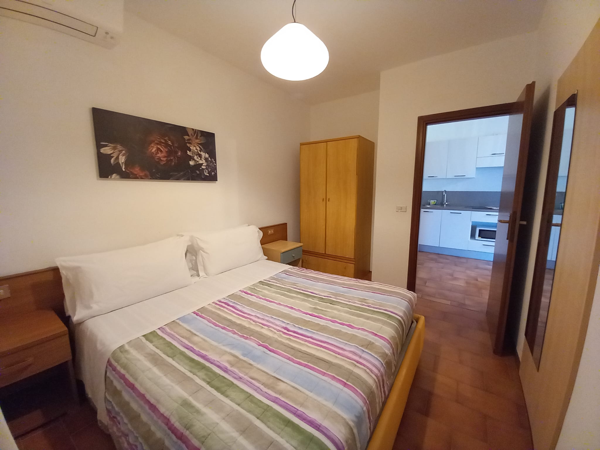 Appartamento arredato in modo semplice, luminoso e comodo, per un massimo di 4 persone, fornito di TV a schermo piatto, WI-FI (a banda limitata) cassaforte, aria condizionata e riscaldamento, bagno con doccia, WC, balcone o terrazza. Il bilocale dispone di una camera da letto, soggiorno con divano letto doppio o letto a castello e un angolo cottura attrezzato con frigorifero.