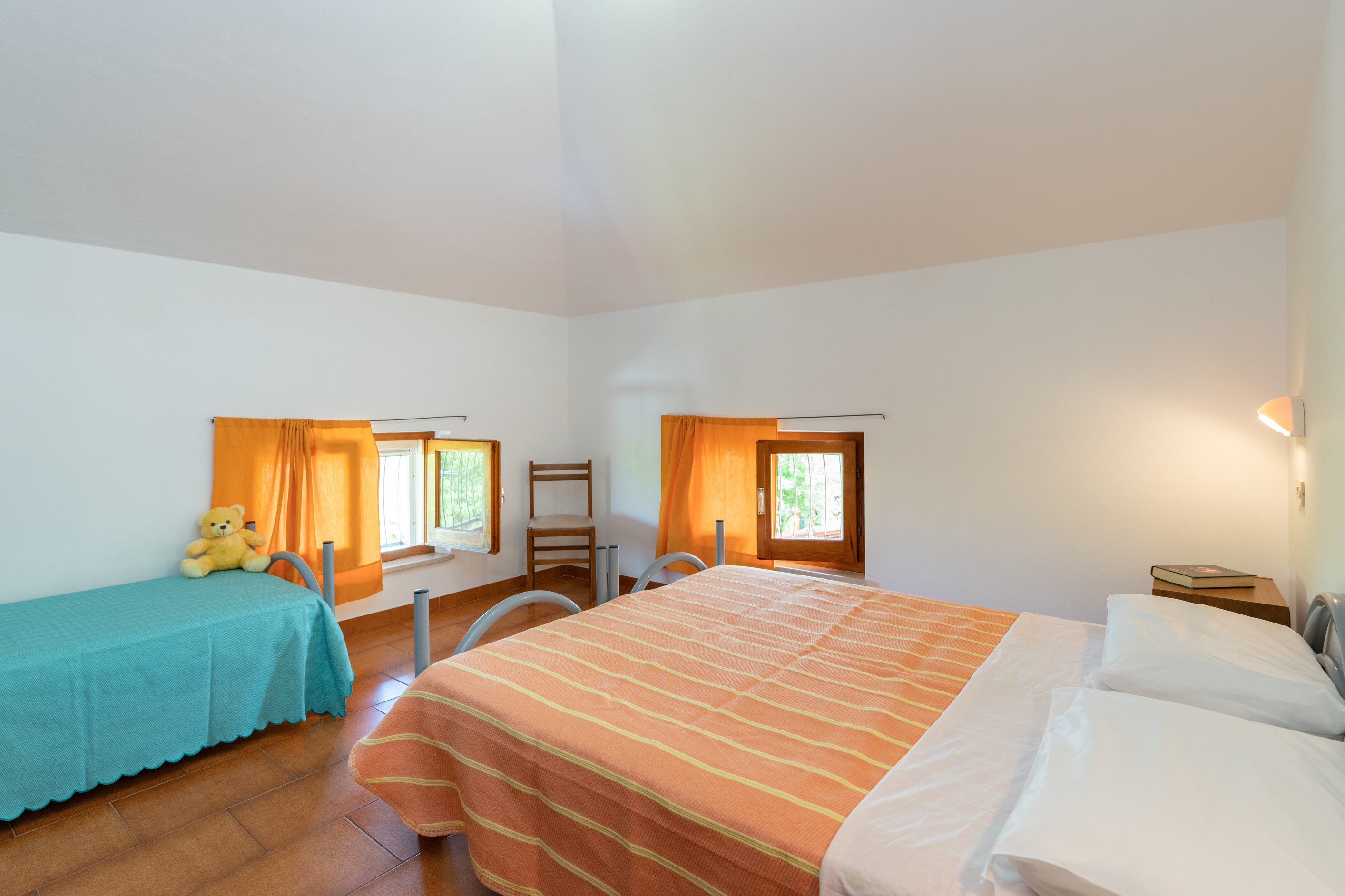 Appartamento trilocale (al primo piano, NO ASCENSORE) con angolo cottura,stoviglie, bicchieri, tazze e pentole, bagno con doccia, WC, acqua calda, TV. Dispone di 1 posto letto matrimoniale e 1 posto letto singolo, e camera con 3 posti letto singoli. Parcheggio auto interno. Servizio spiaggia con un ombrellone, un lettino, una sdraio, connessione Wifi, Animazione e Miniclub, climatizzazione e ingresso in piscina.