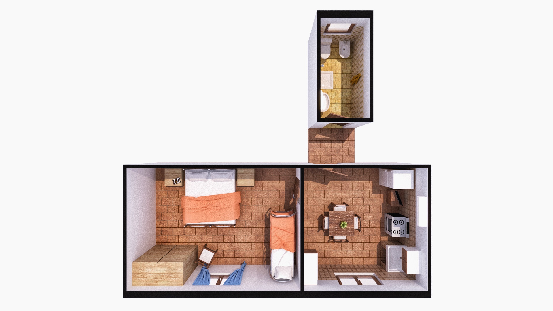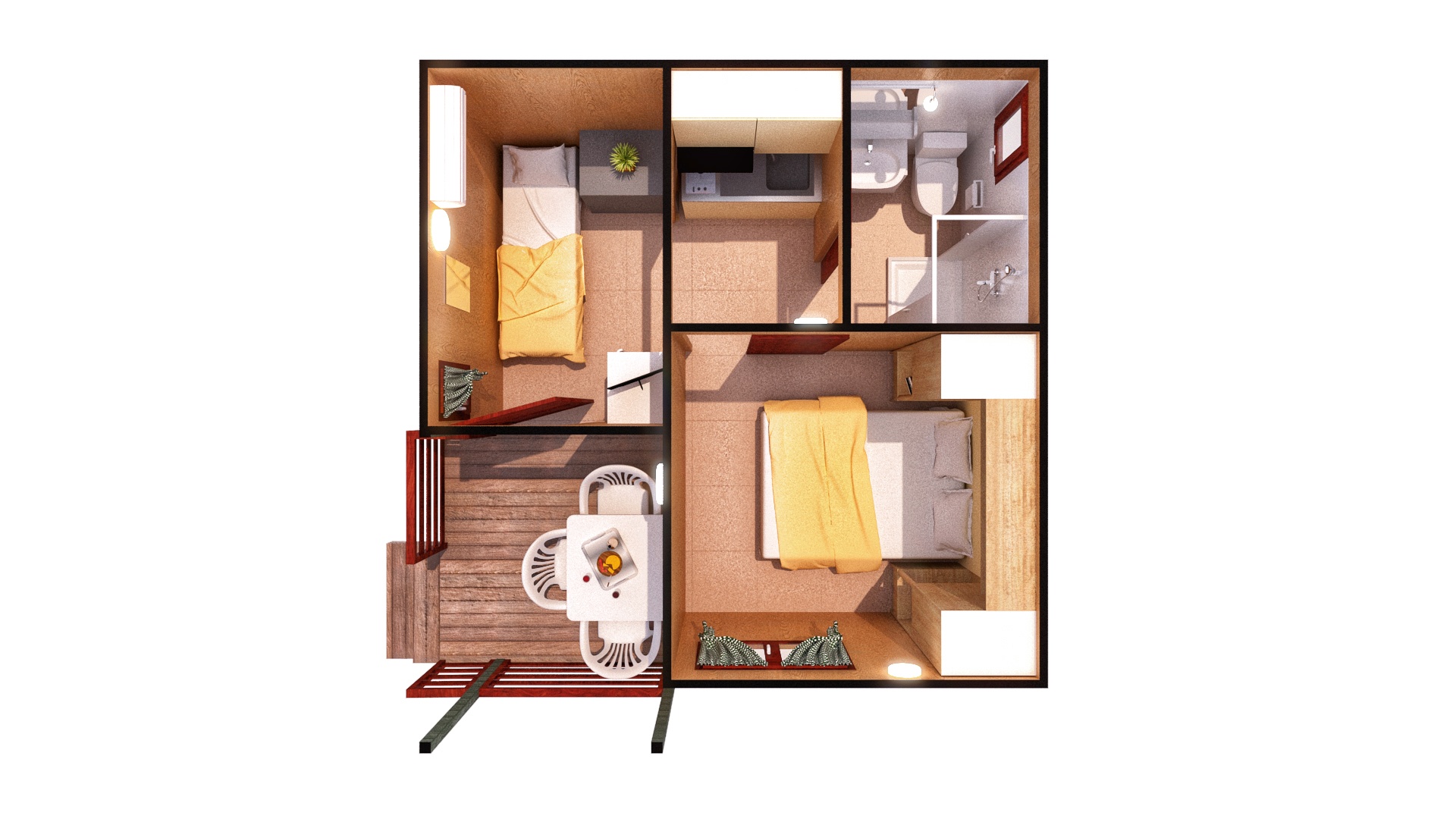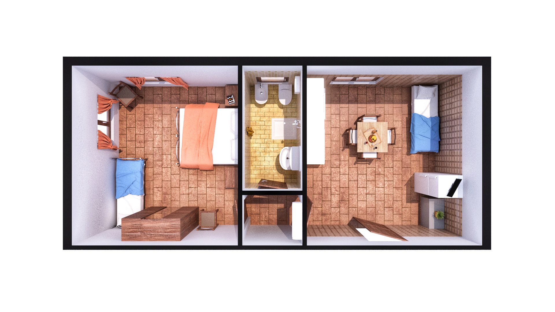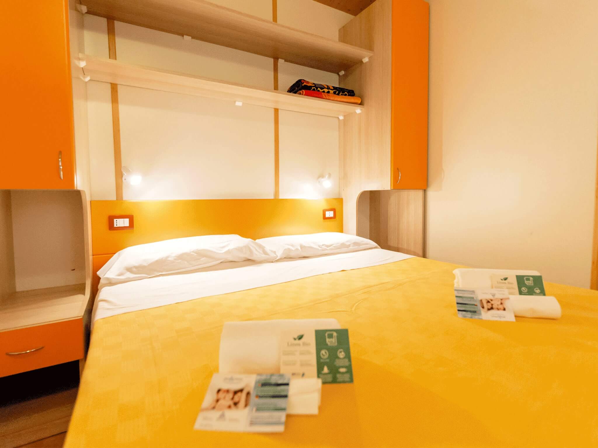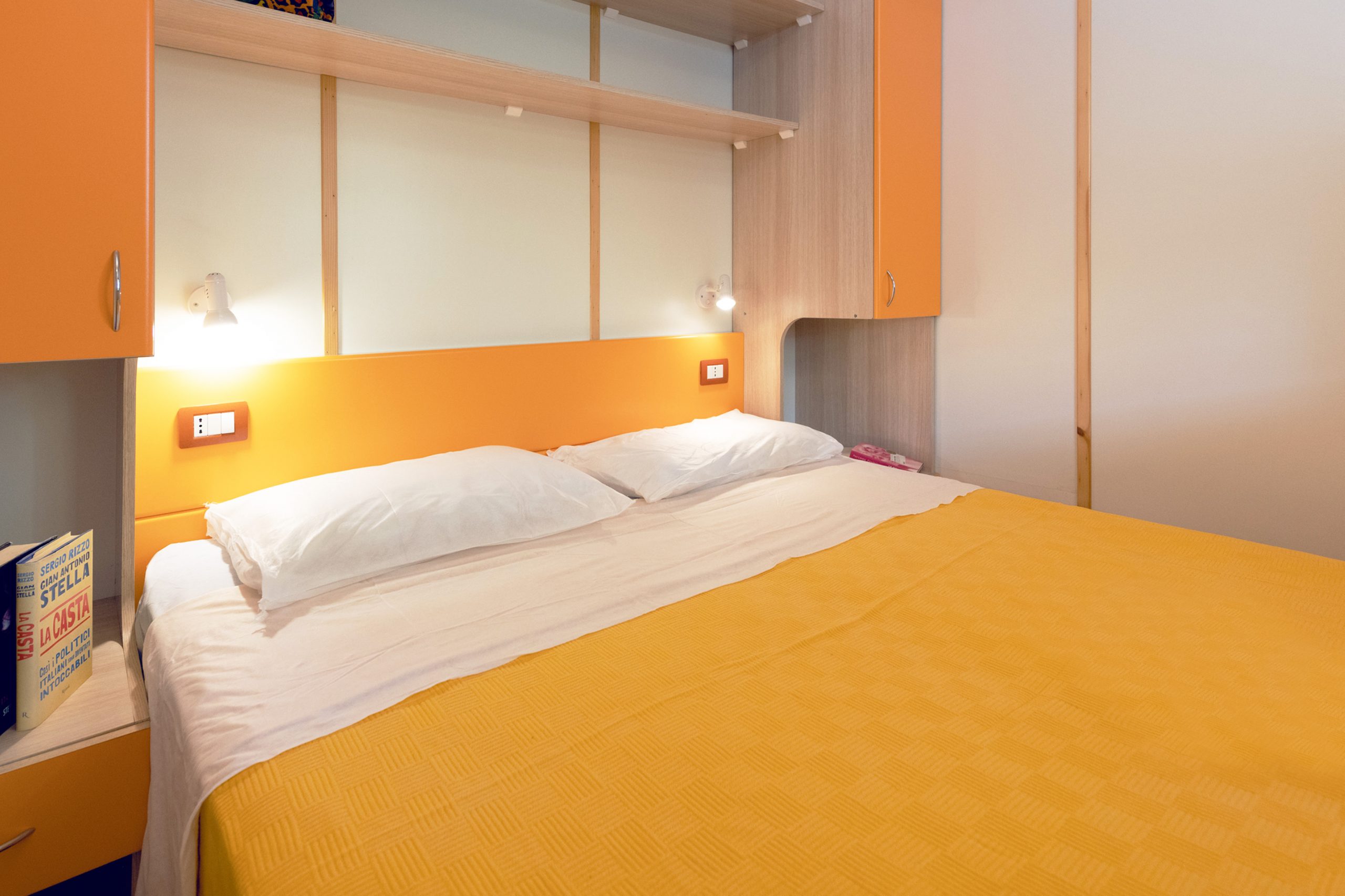 Casamobile bilocale in legno con veranda e giardino, angolo cottura,stoviglie, bicchieri, tazze e pentole, bagno (NO BIDET), doccia, acqua calda, TV. Dispone di 1 posto letto matrimoniale e 1 poltronaletto in soggiorno. Parcheggio auto interno. Servizio spiaggia con un ombrellone, un lettino, una sdraio, connessione Wifi, Animazione e Miniclub, climatizzazione e ingresso in piscina.