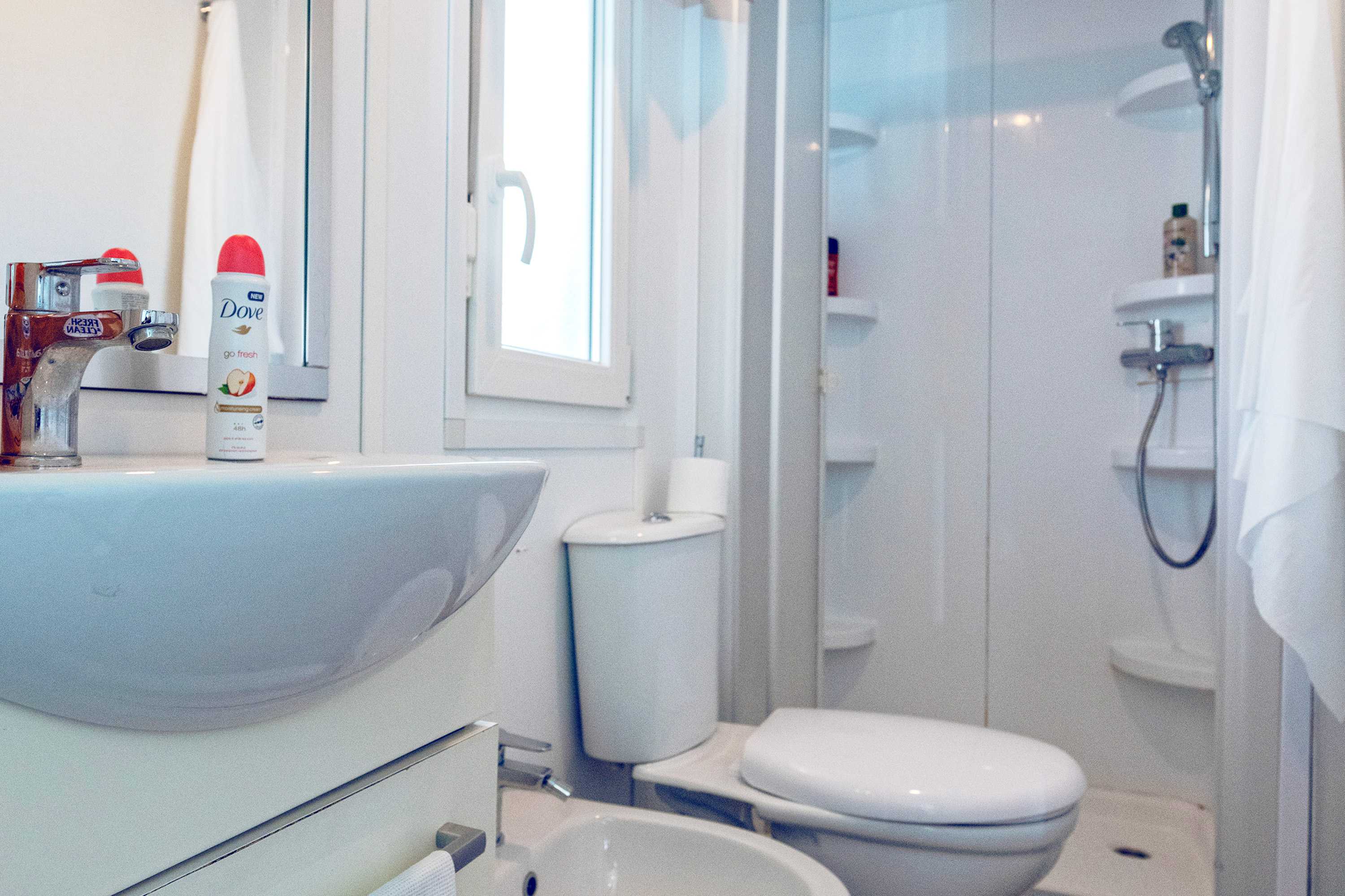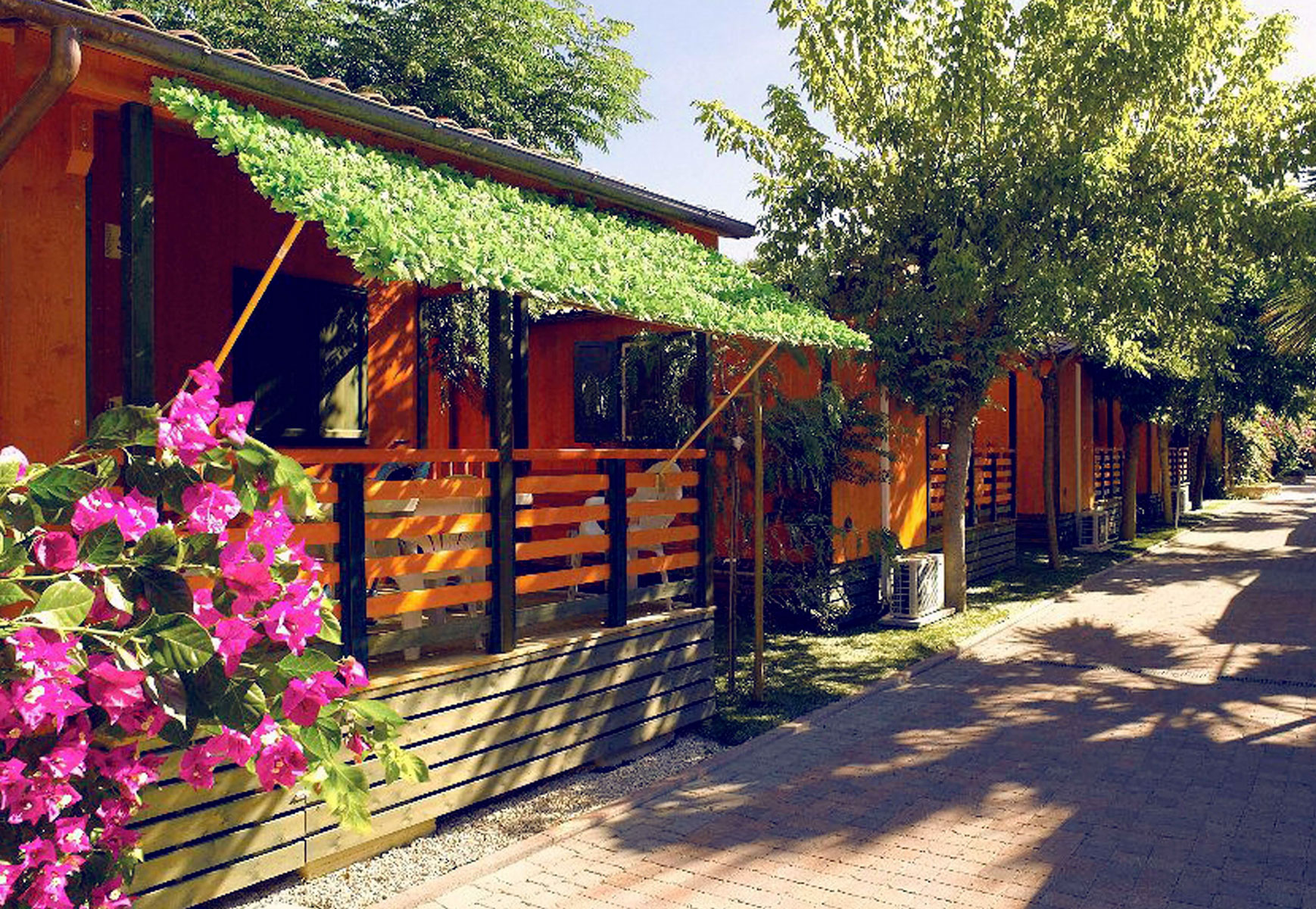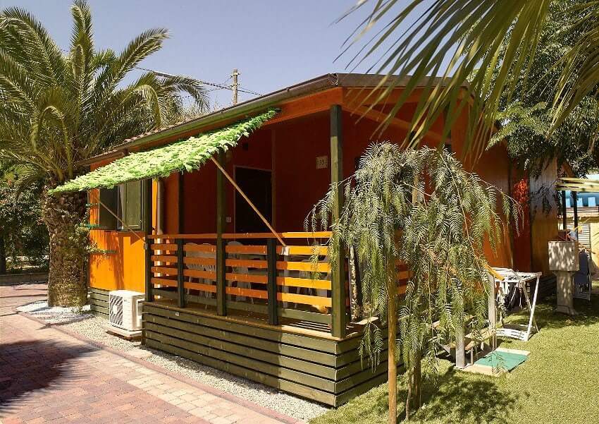 Casamobile trilocale in legno con veranda e giardino, angolo cottura,stoviglie, bicchieri, tazze e pentole, bagno, doccia, acqua calda, TV. Dispone di 1 posto letto matrimoniale, 2 posti letto singoli e 1 doppio letto a scomparsa in soggiorno. Parcheggio auto interno. Servizio spiaggia con un ombrellone, un lettino, una sdraio, connessione Wifi, Animazione e Miniclub , climatizzazione e ingresso in piscina.