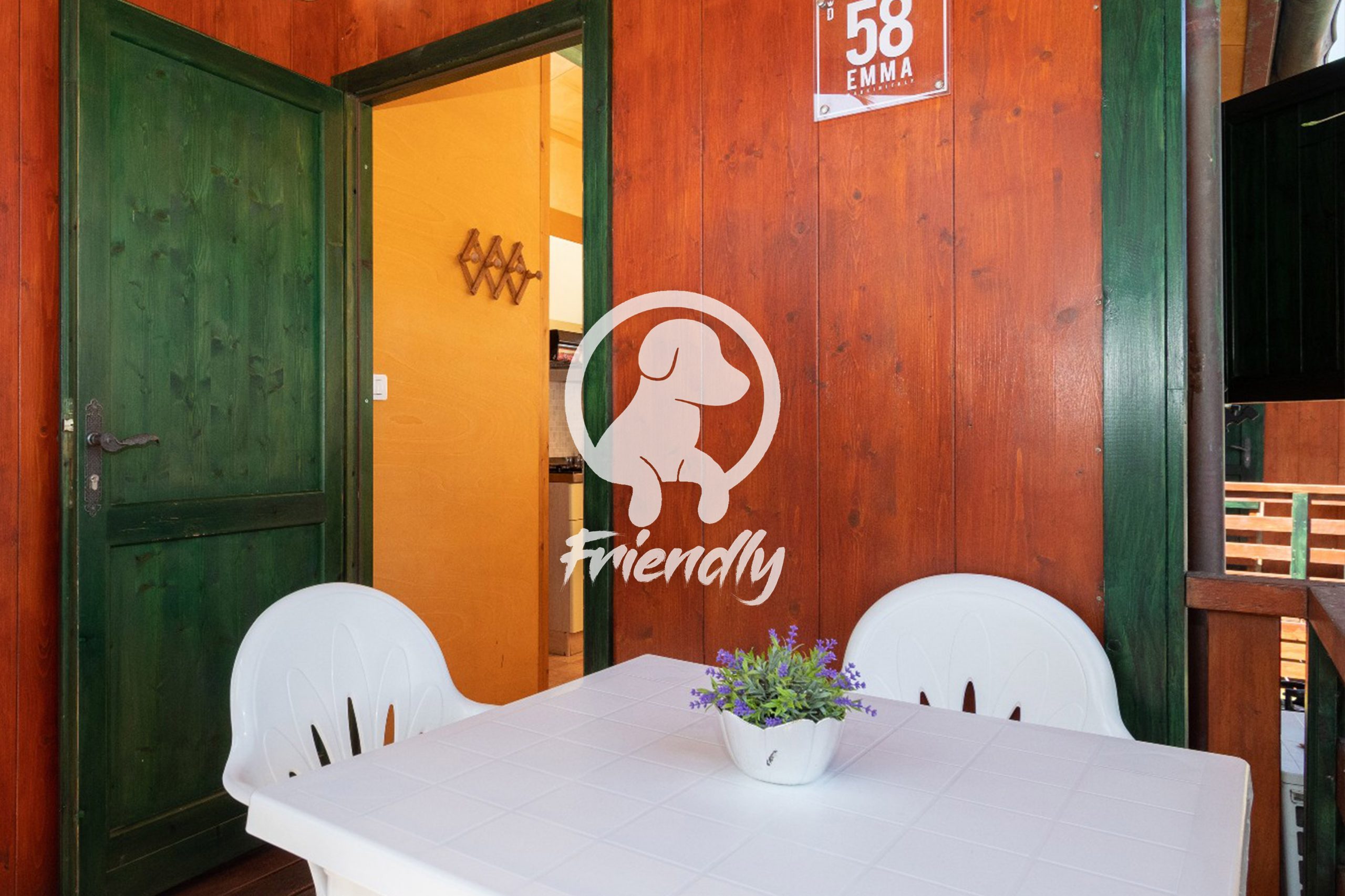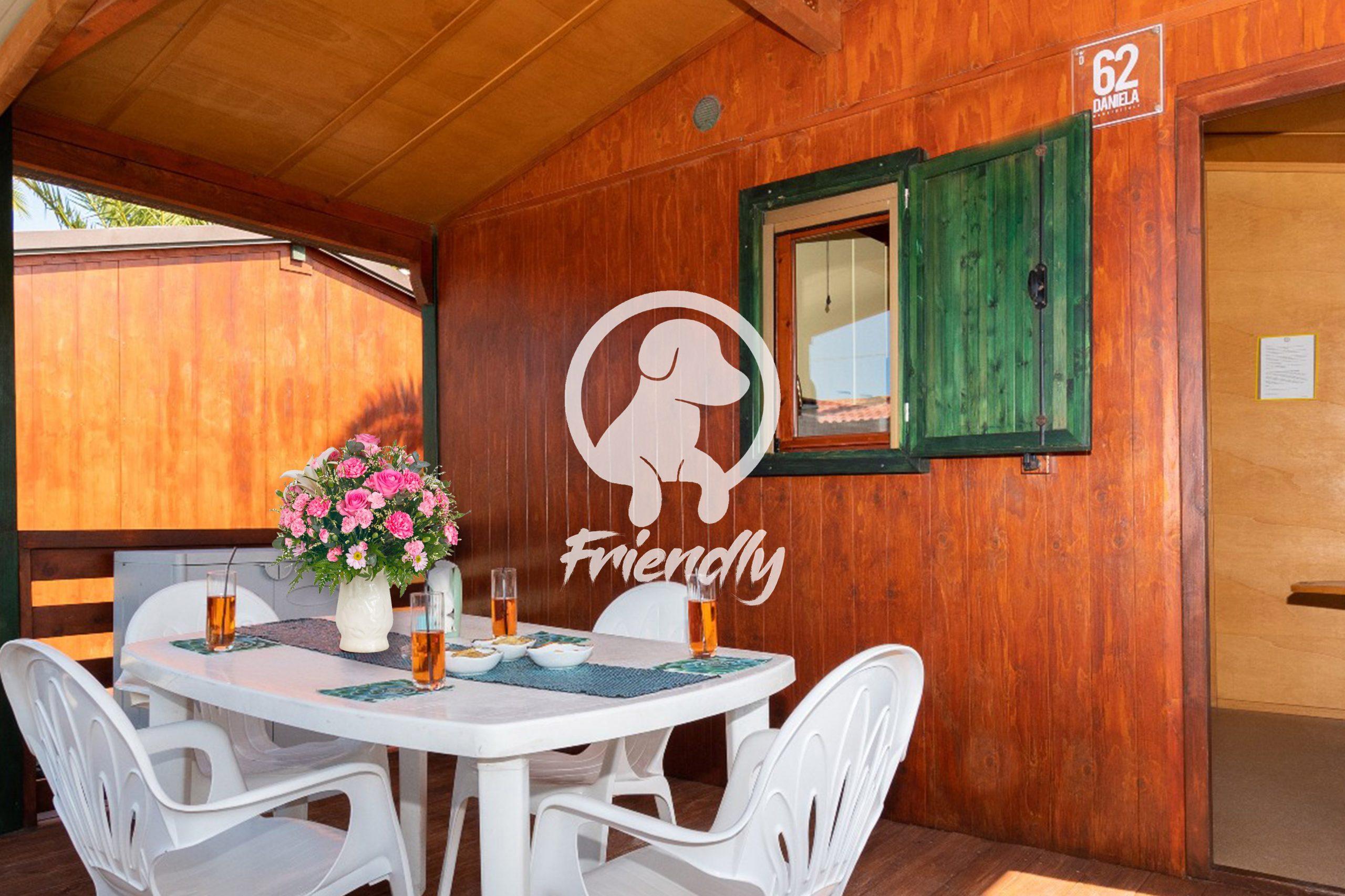 CASAMOBILE PET-FRIENDLY trilocale con veranda e giardino, angolo cottura,stoviglie, bicchieri, tazze e pentole, bagno, doccia, acqua calda, Microonde, TV. Dispone di 1 posto letto matrimoniale, 2 posti letto singoli e 1 divano letto in soggiorno. Parcheggio auto interno. Servizio spiaggia con un ombrellone, un lettino, una sdraio, connessione Wifi, Animazione e Miniclub, climatizzazione e ingresso in piscina.