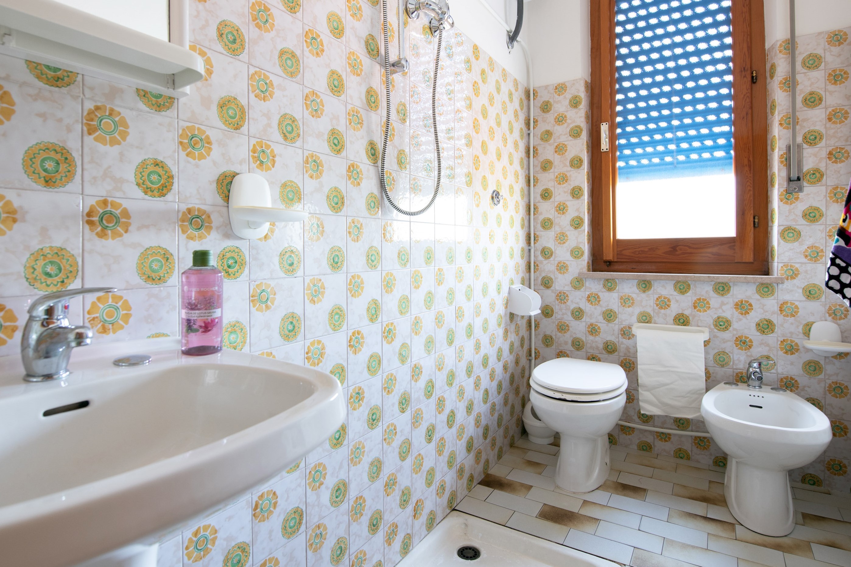 Appartamento quadrilocale (al secondo piano NO ASCENSORE) con angolo cottura,stoviglie, bicchieri, tazze e pentole, 2 bagni con doccia, WC, acqua calda, TV. Dispone di 1 posto letto matrimoniale e 2 posti letto in letto a castello, 2 posti letto singoli e 1 divanoletto matrimoniale in soggiorno. Parcheggio auto interno. Servizio spiaggia con un ombrellone, un lettino, una sdraio, connessione Wifi, Animazione e Miniclub, climatizzazione e ingresso in piscina.