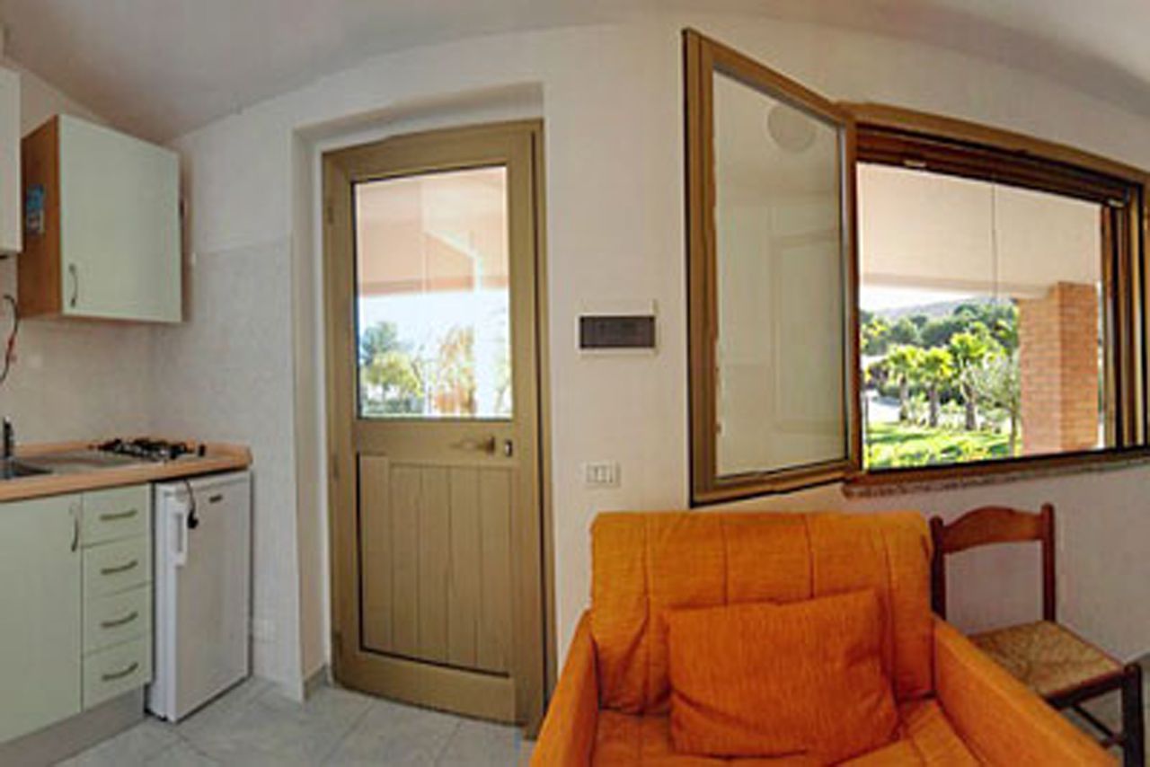 La Struttura, un bilocale 2/3 posti di circa 27 mq, è composta da 1 camera da letto matrimoniale con armadio; zona giorno con angolo cottura e divano letto (1piazza e ½); inoltre dispone di un bagno completo di tutti i servizi igienici e di una veranda attrezzata con tavolo e sedie.