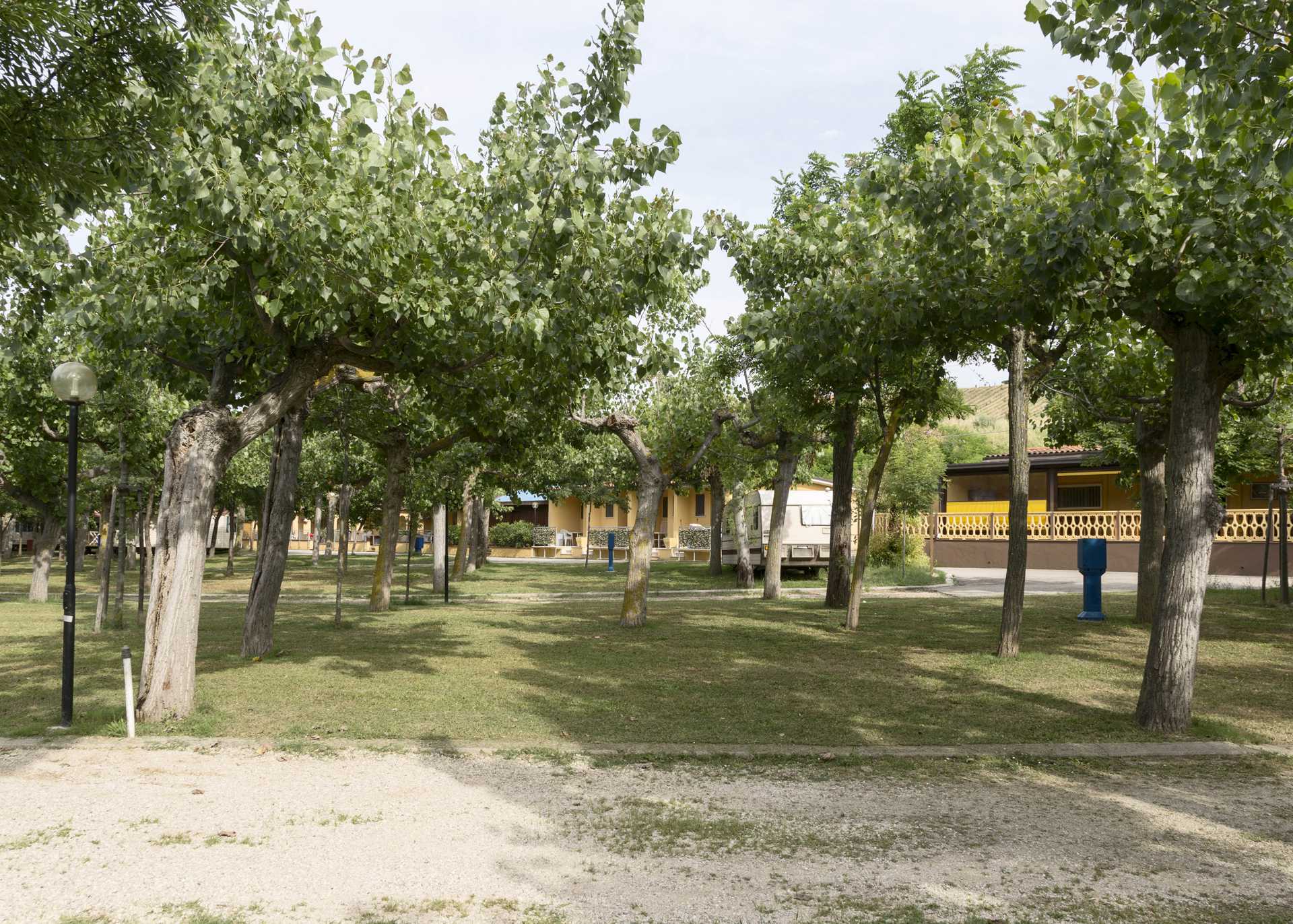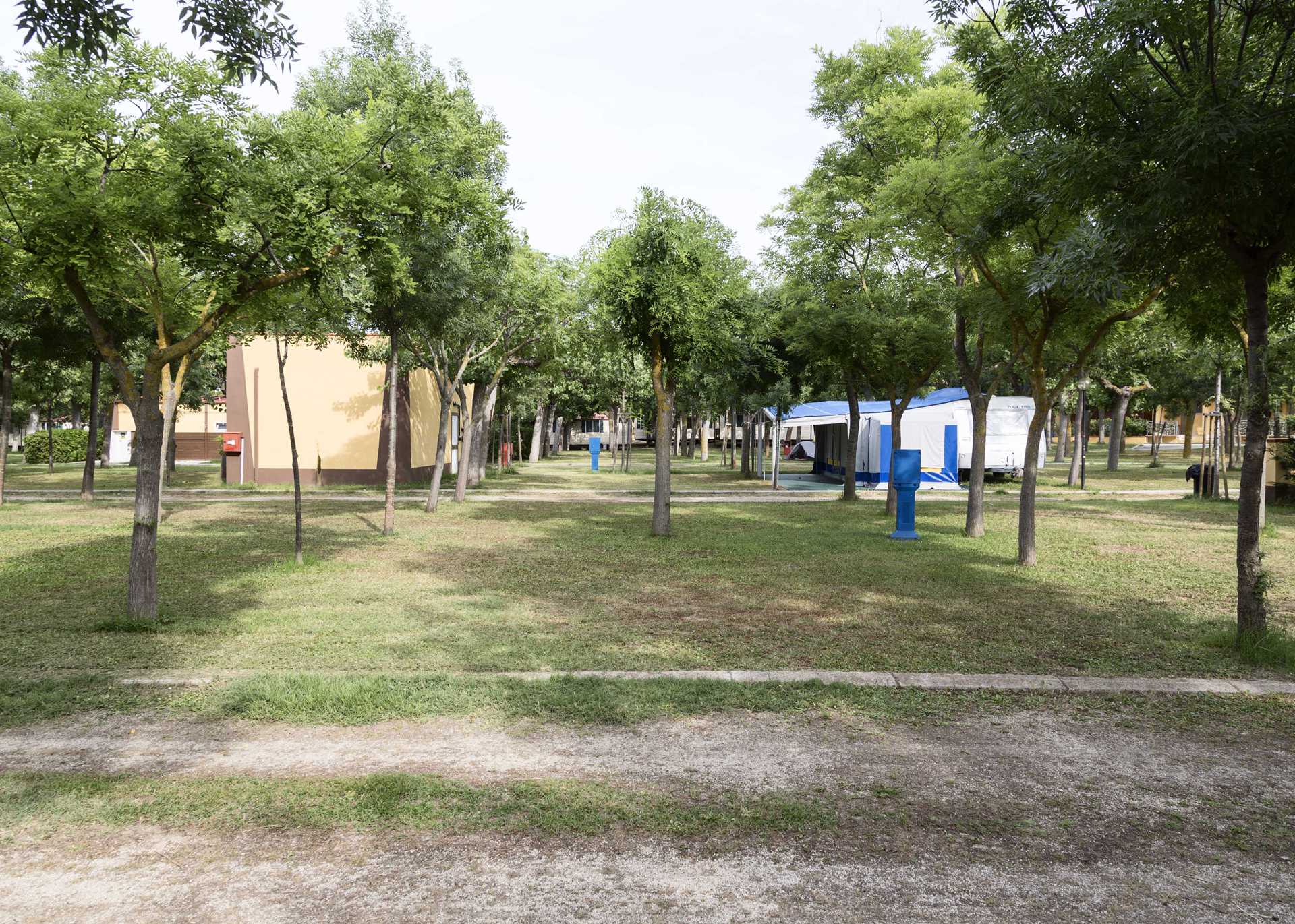 Le piazzole sono,principalmente, tutte pianeggianti con prato erboso, buona ombreggiatura (pioppi e frassini), delimitate, con attacco luce da 6 ampere.
