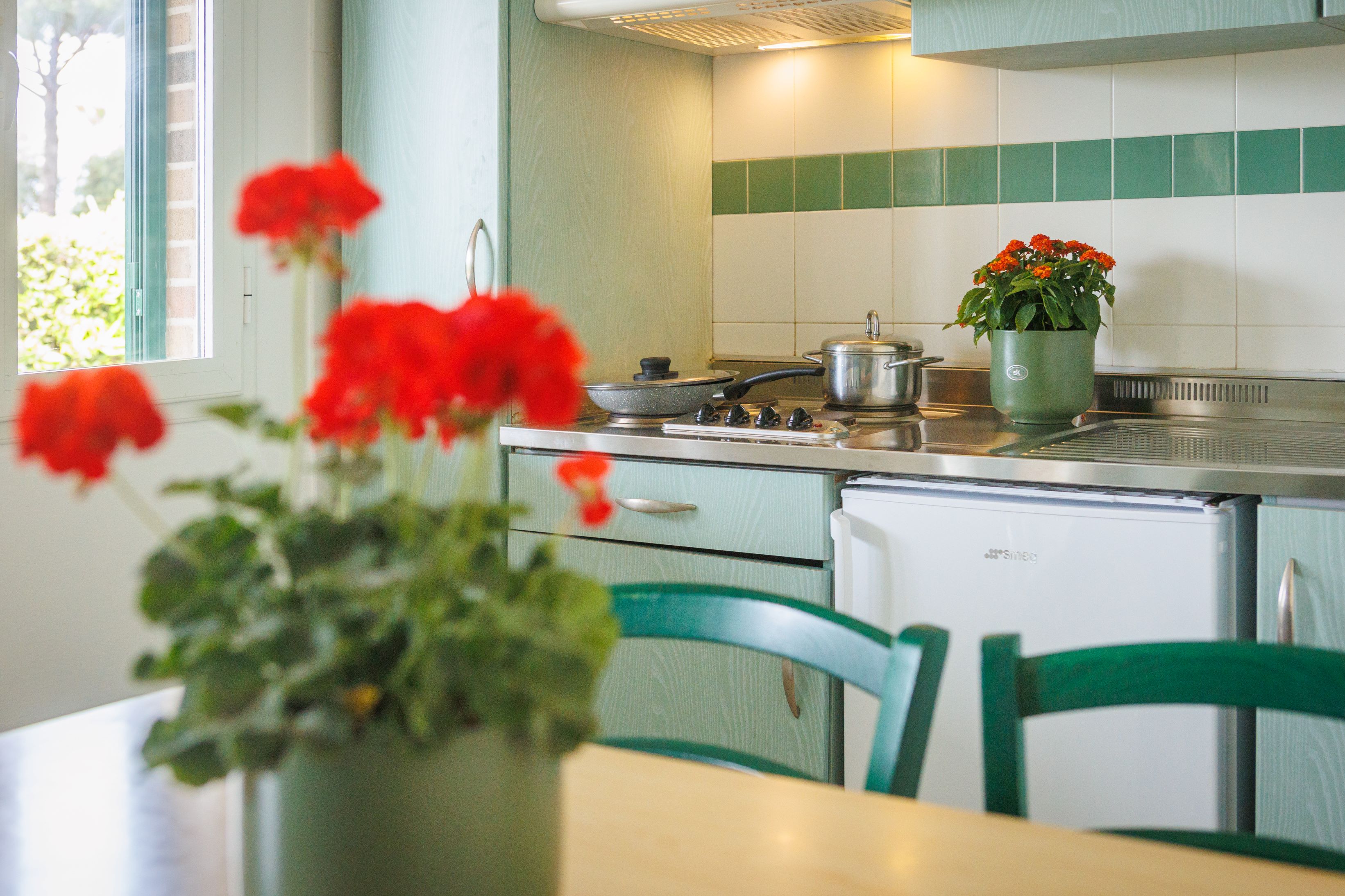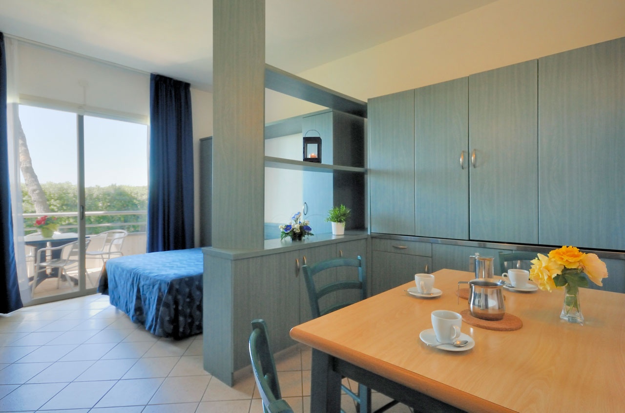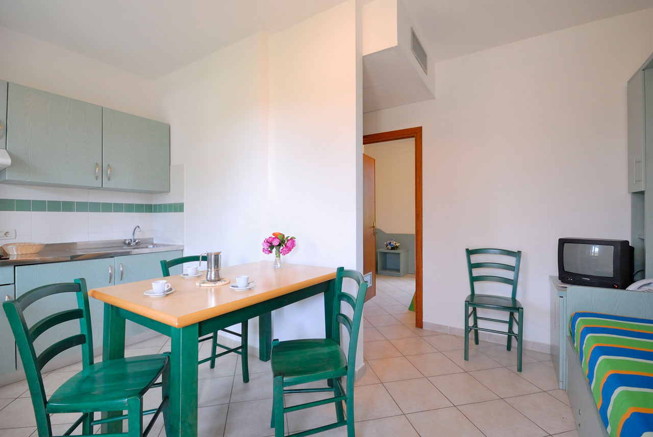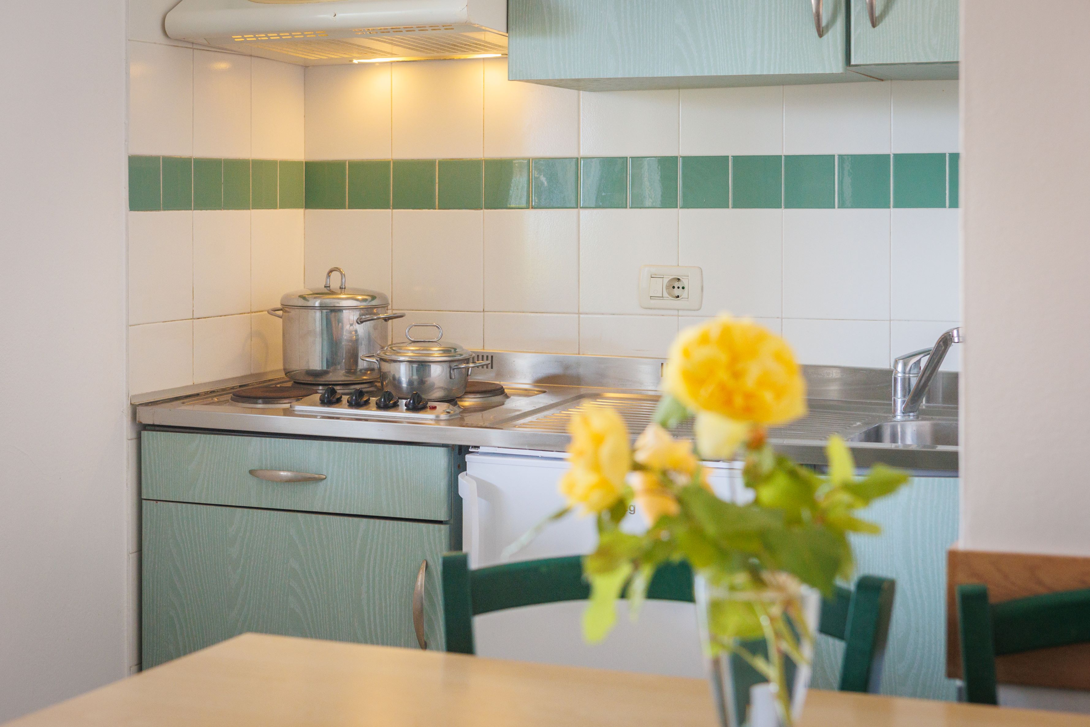 near the pool - two rooms apartment small living room with kitchenette and double sofa bed + bedroom with double bed and single bed + bathroom with shower and hairdryer + small patio with table and chairs and small garden not fenced- PETS NOT ALLOWED