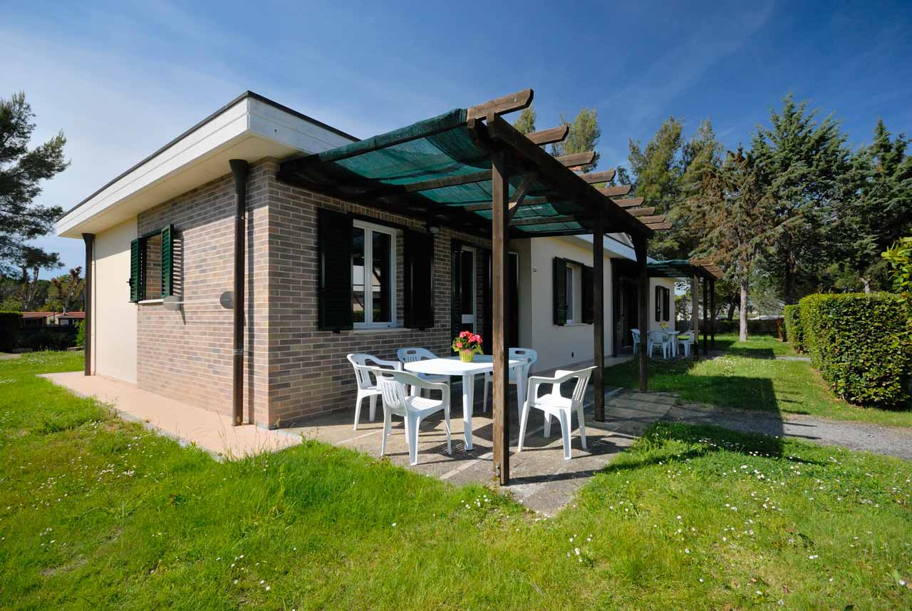 Quite area - Living room with kitchenette and double sofa bed, double bedroom, twin bedroom, bathroom with shower and hair dryer, veranda with table and chairs and small garden not fenced).