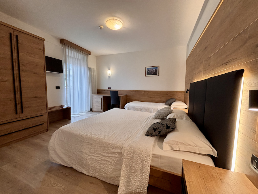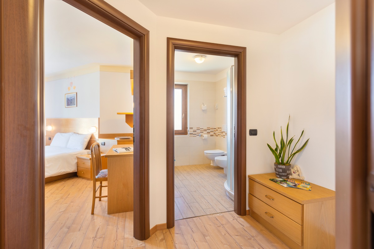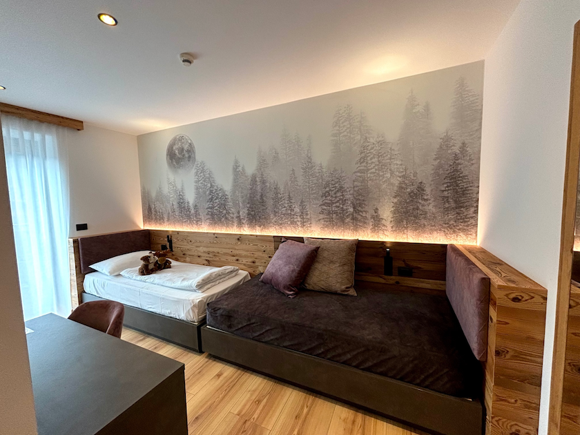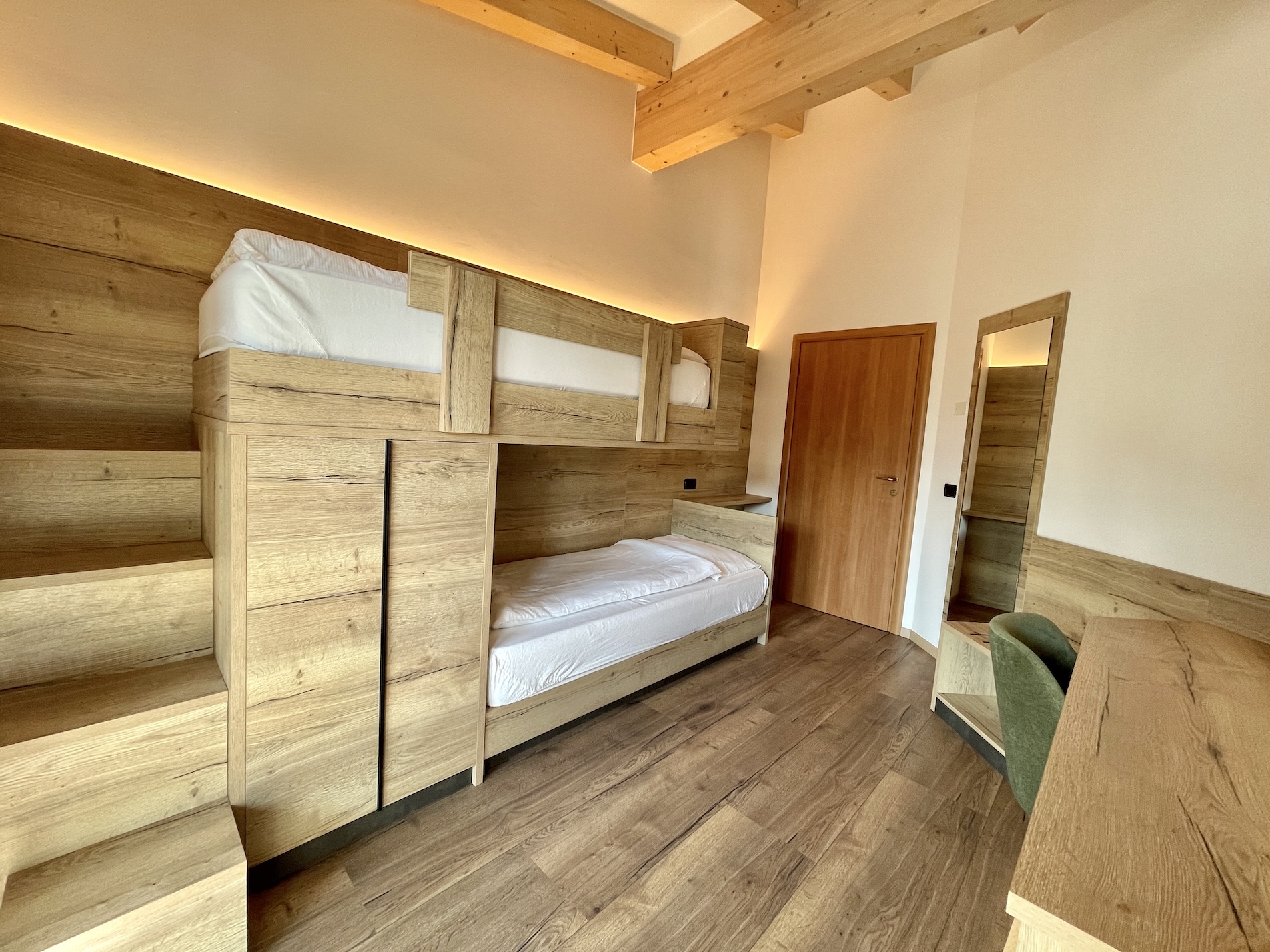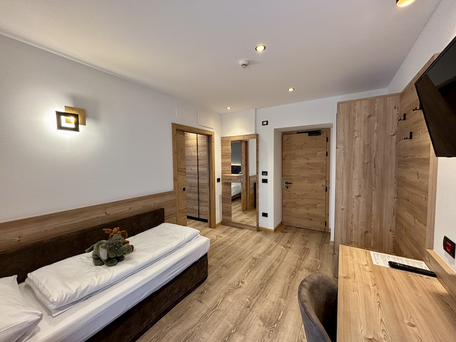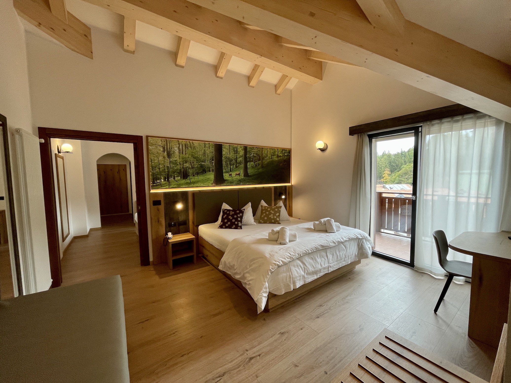 Scopri la nostra nuovissima Family Alpina, stanza che, con i suoi ambienti separati e i due bagni garantisce la privacy e comodità di casa.