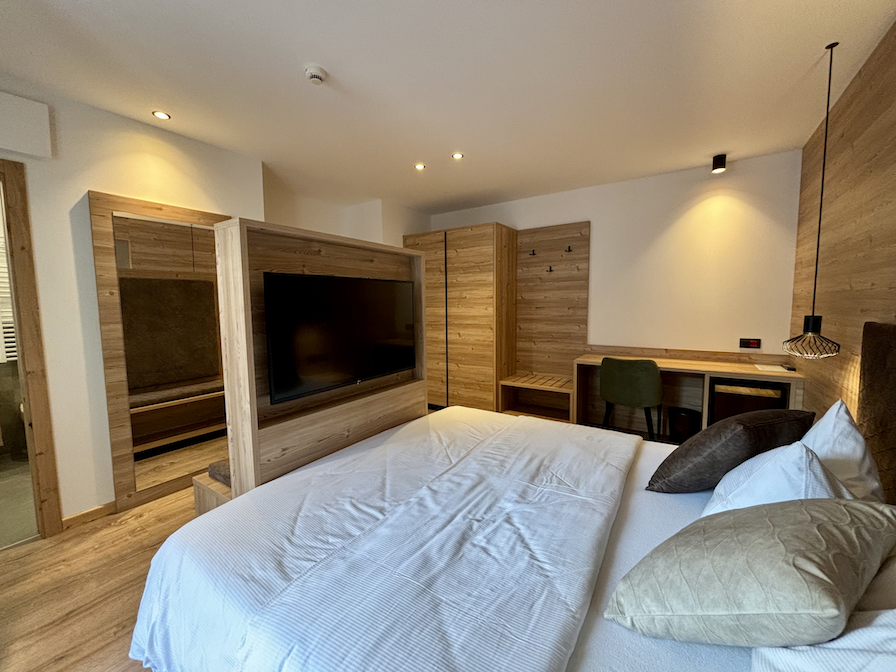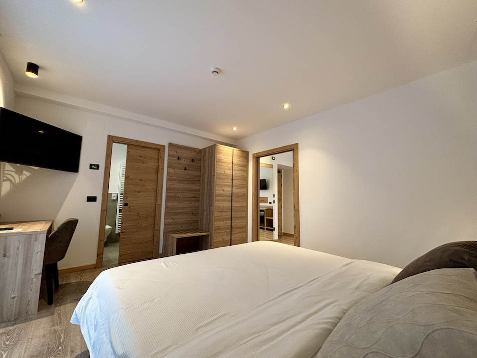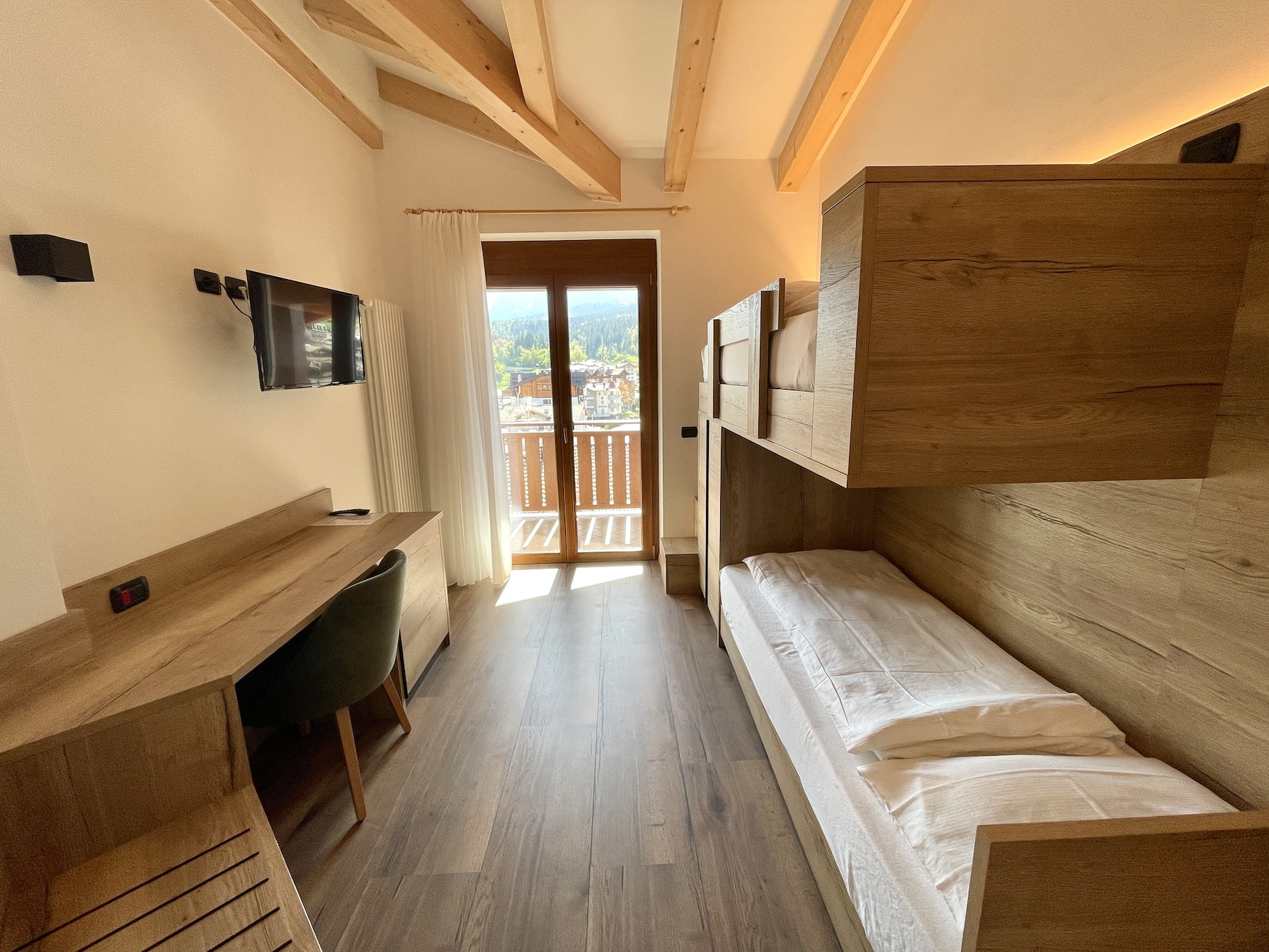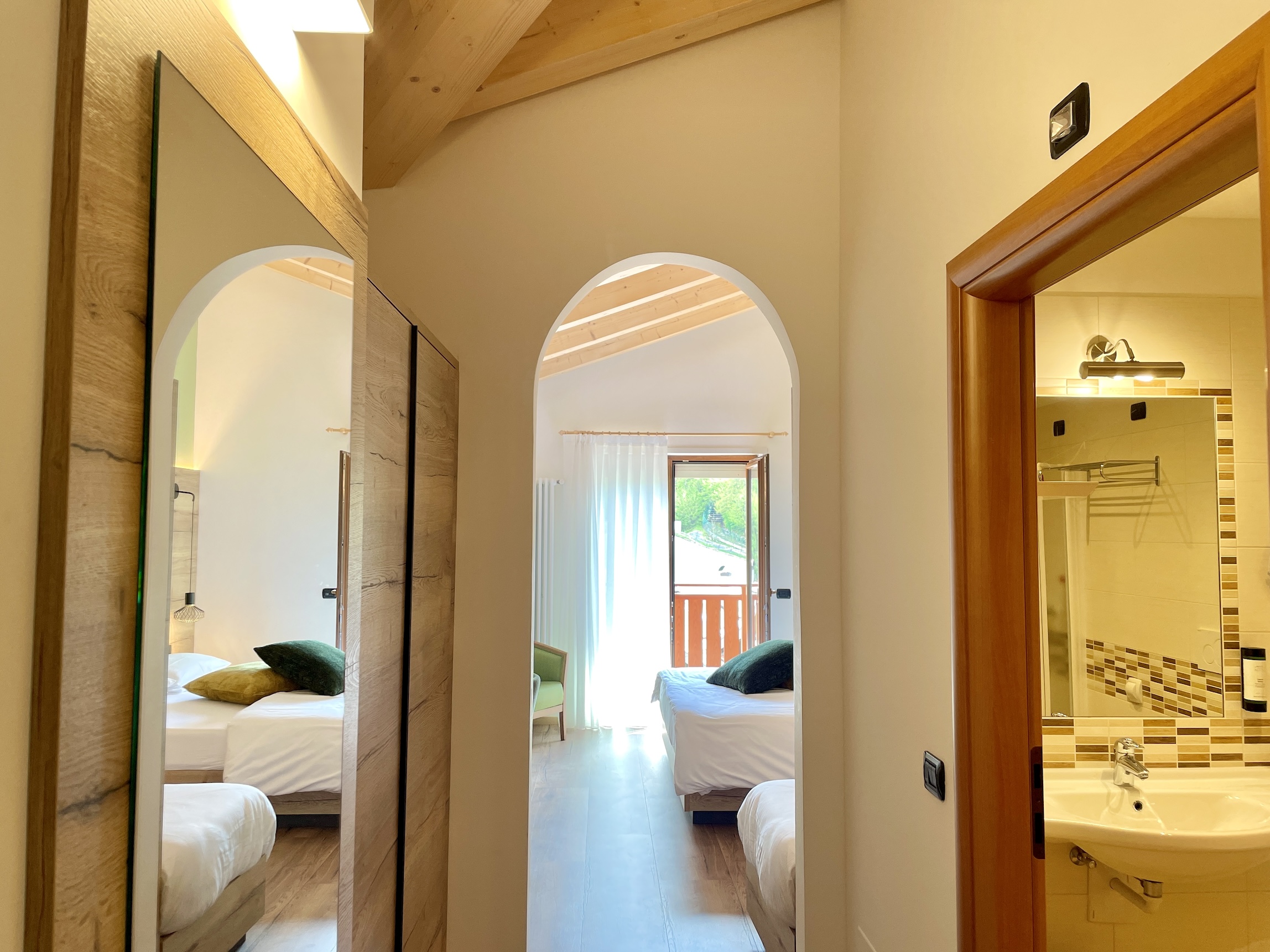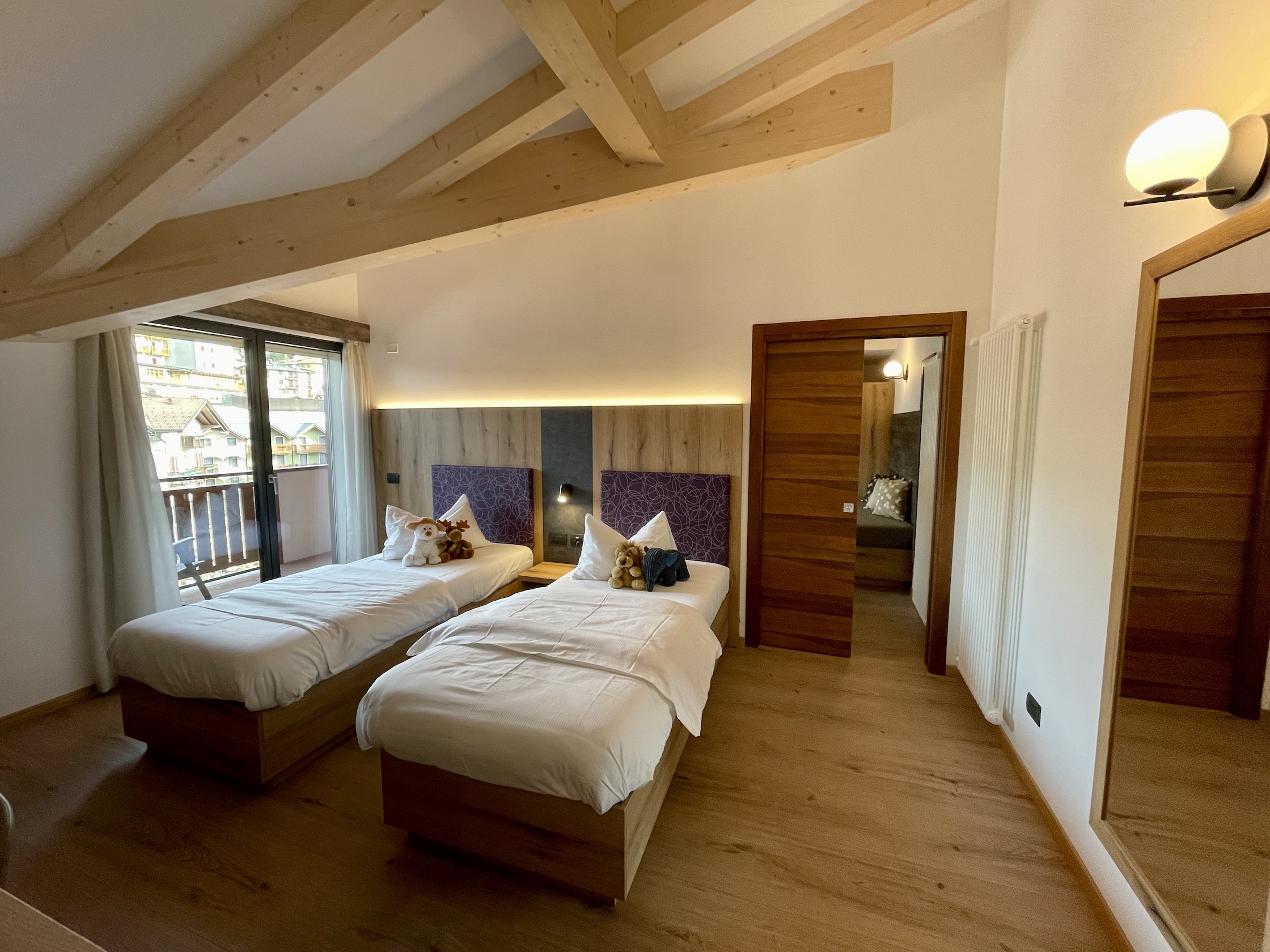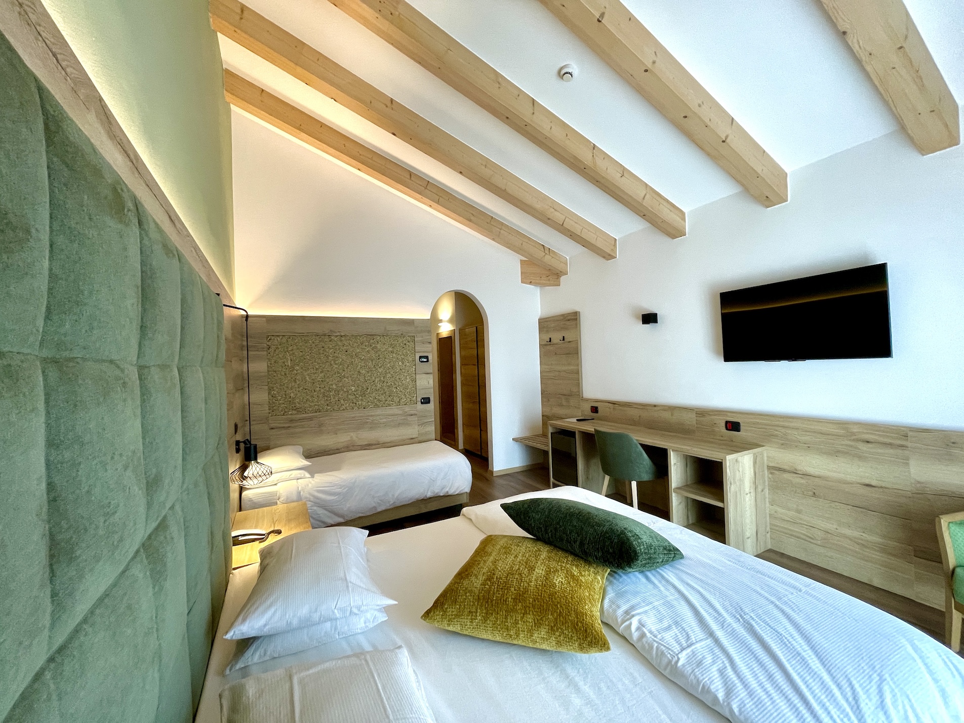 Scopri la nostra nuovissima Family Alpina, stanza che, con i suoi ambienti separati e i due bagni garantisce la privacy e comodità di casa.