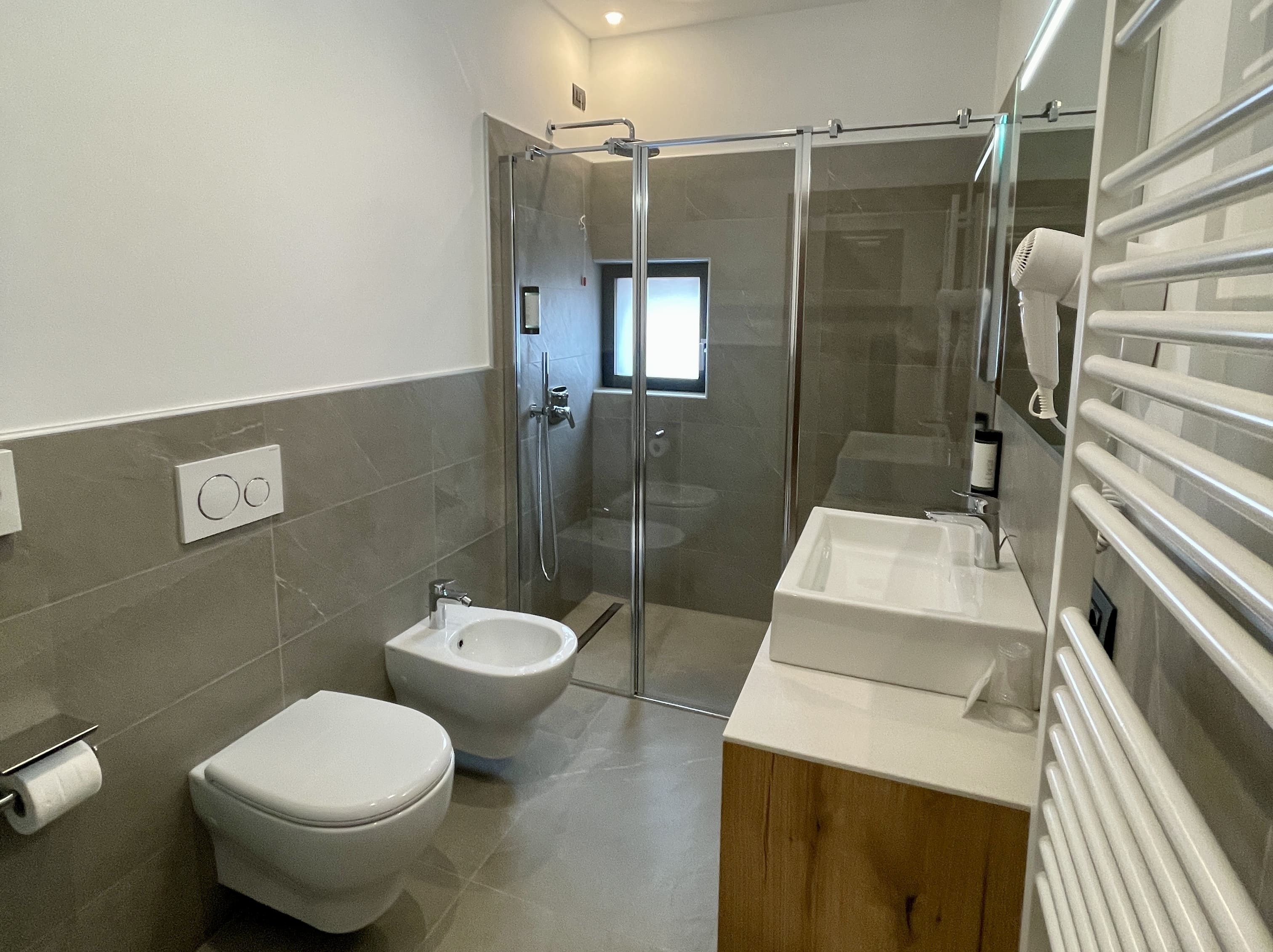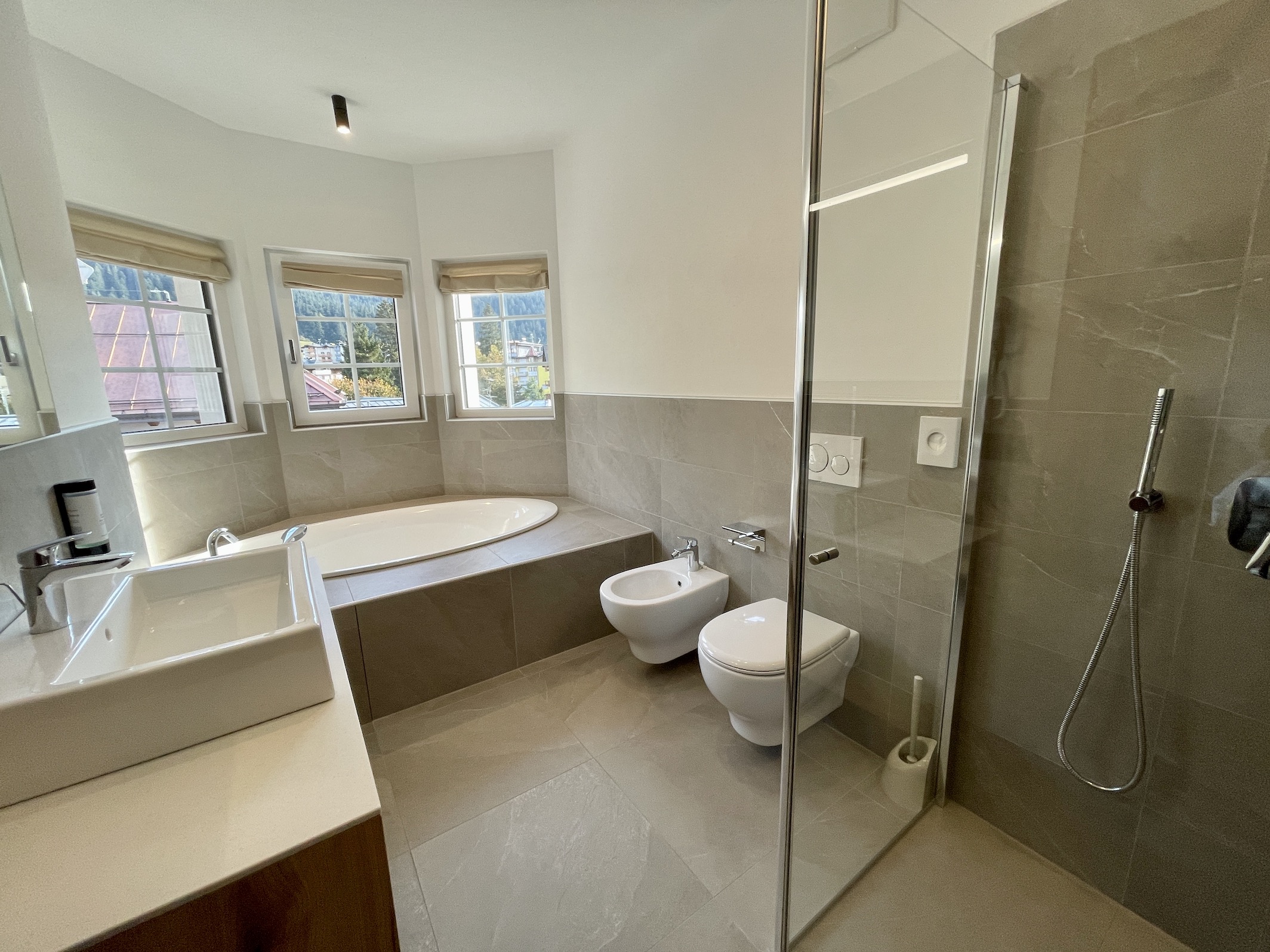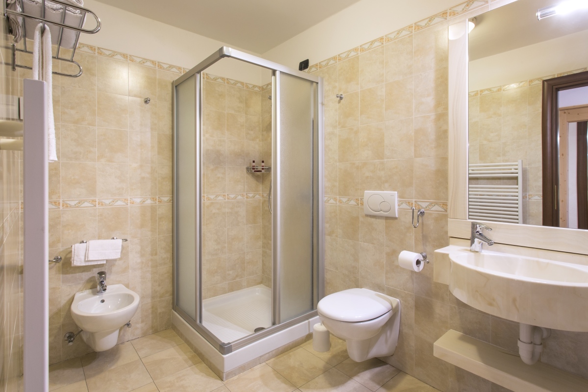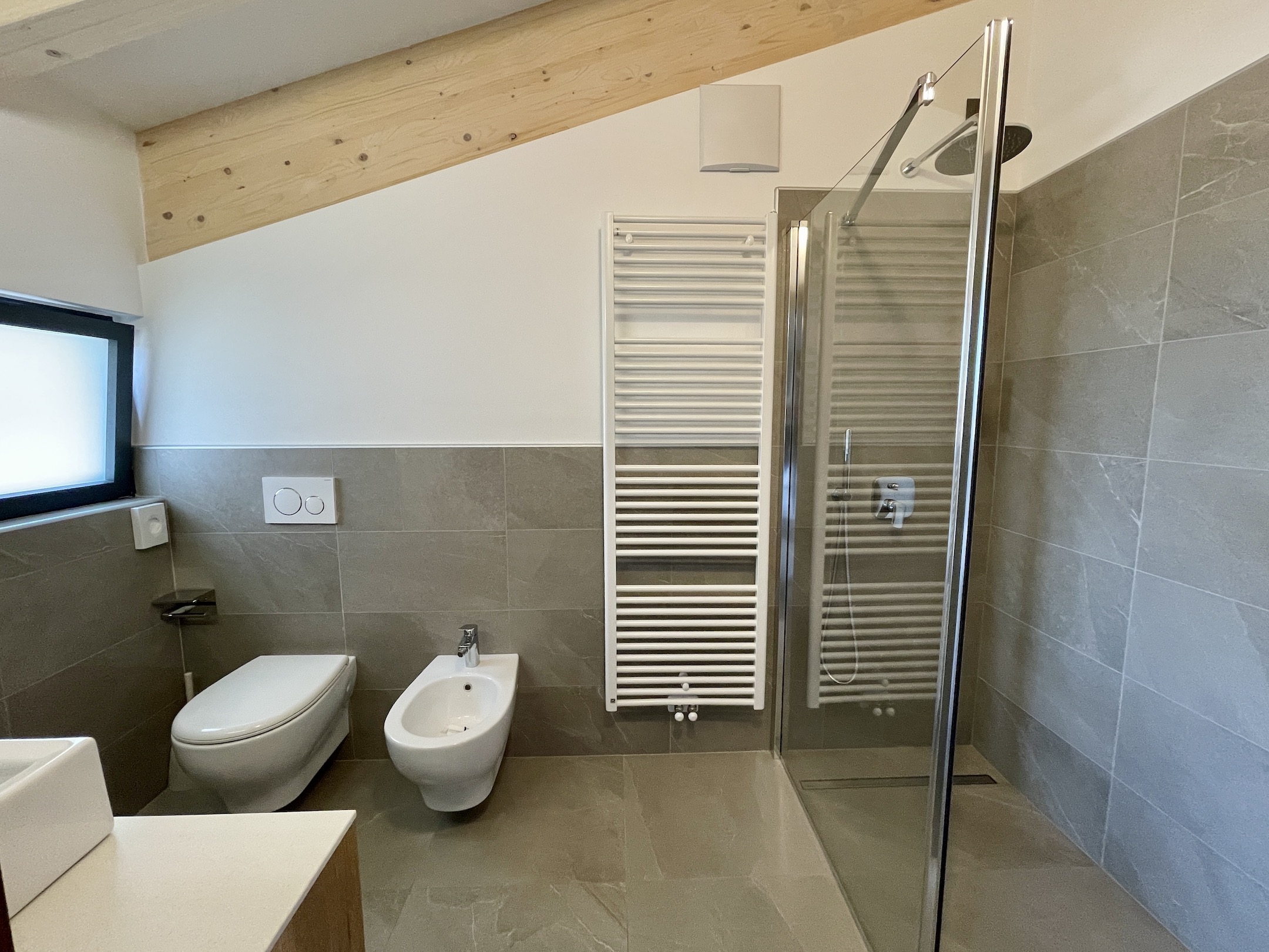 Nell'ampio bagno troverai una vasca ad aspettarti dopo le lunghe camminate o una giornata sugli sci.