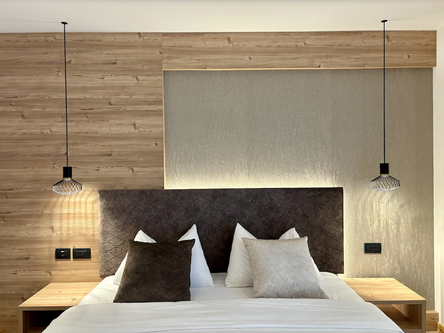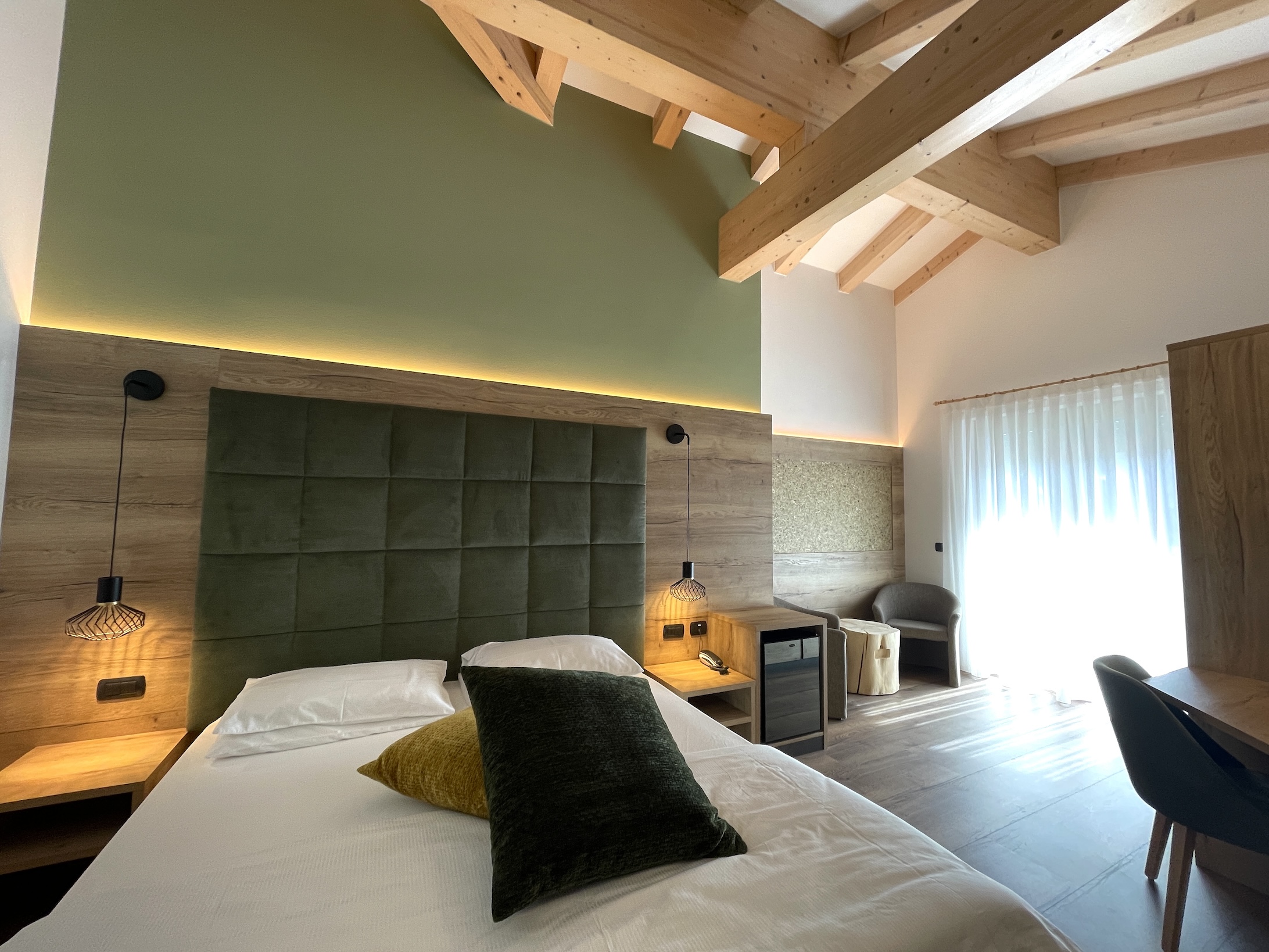 Scegli una camera matrimoniale Superior, confortevole e luminosa è arredata interamente con legno di abete ed è perfetta per 2 persone.