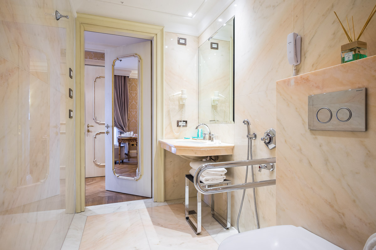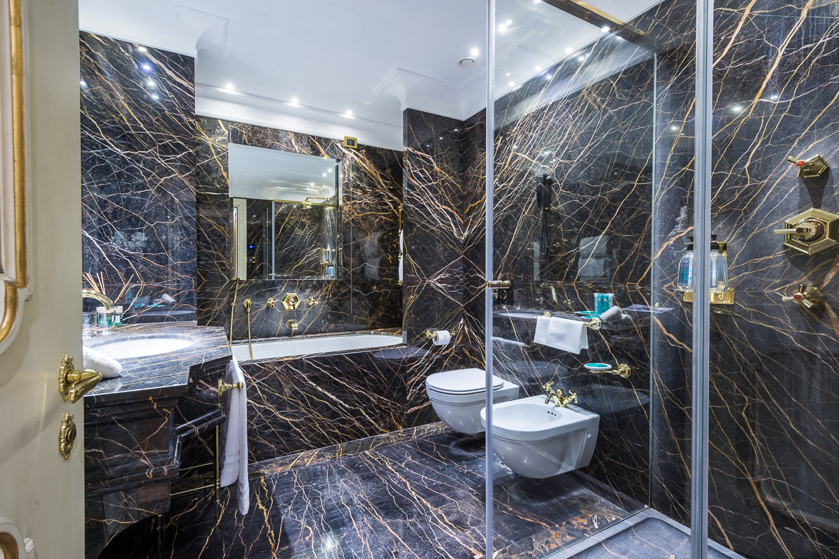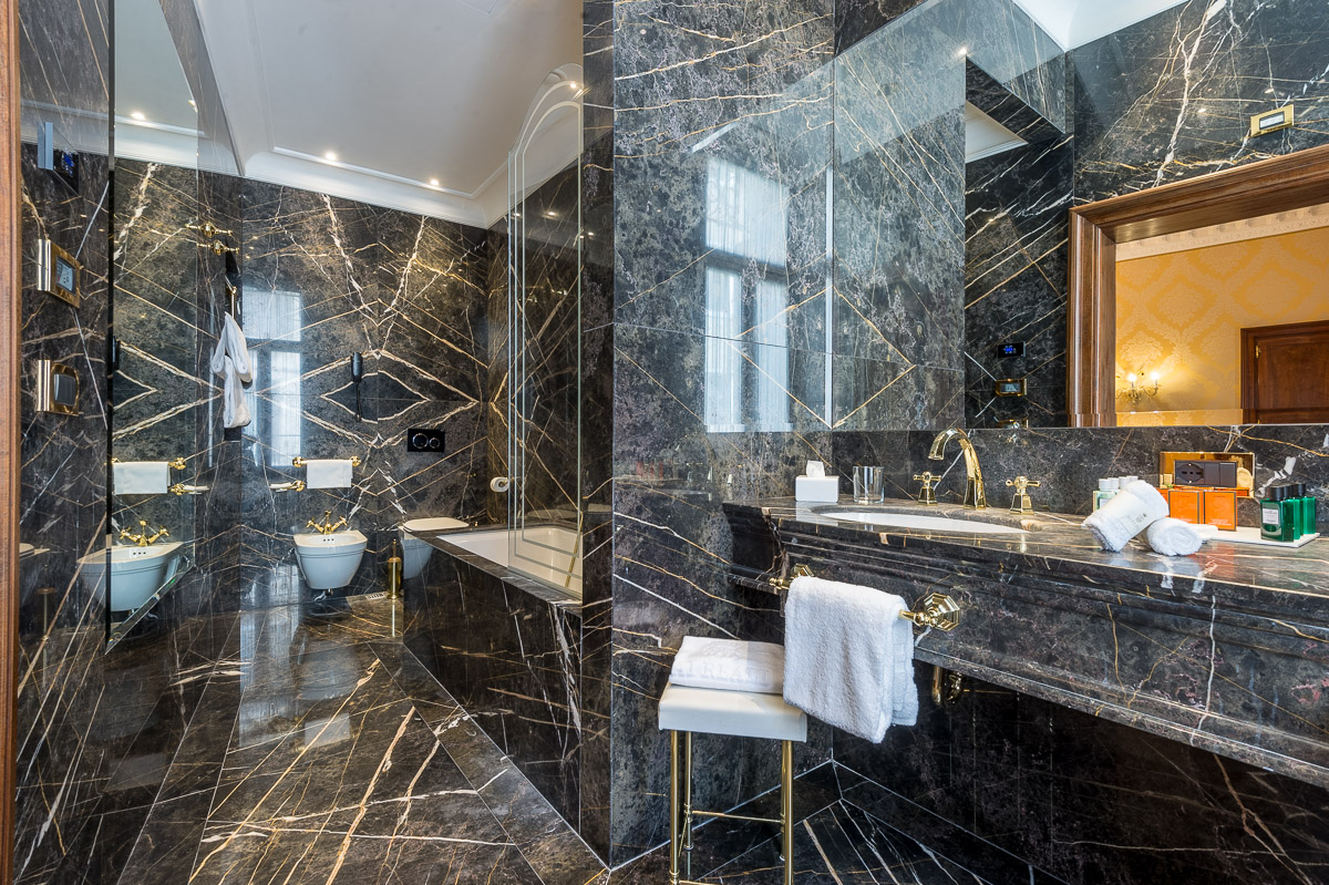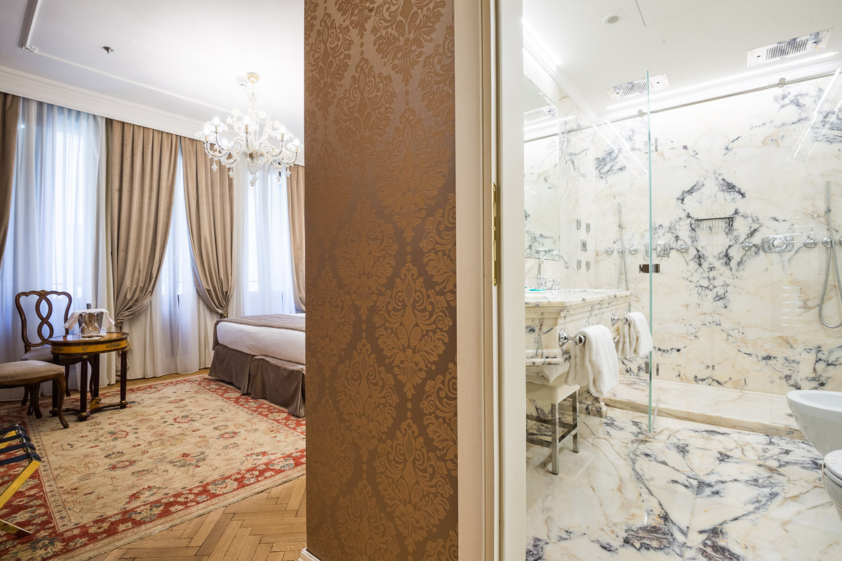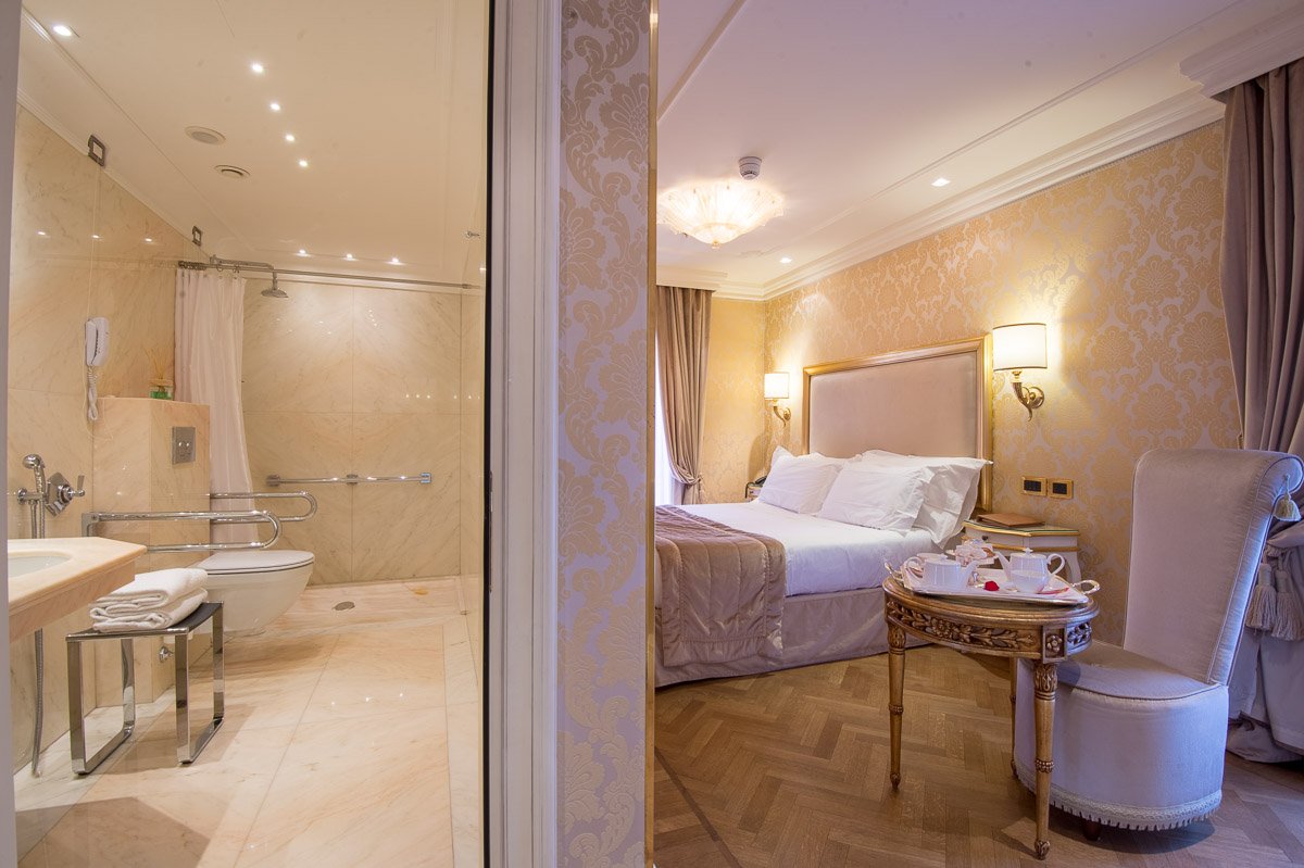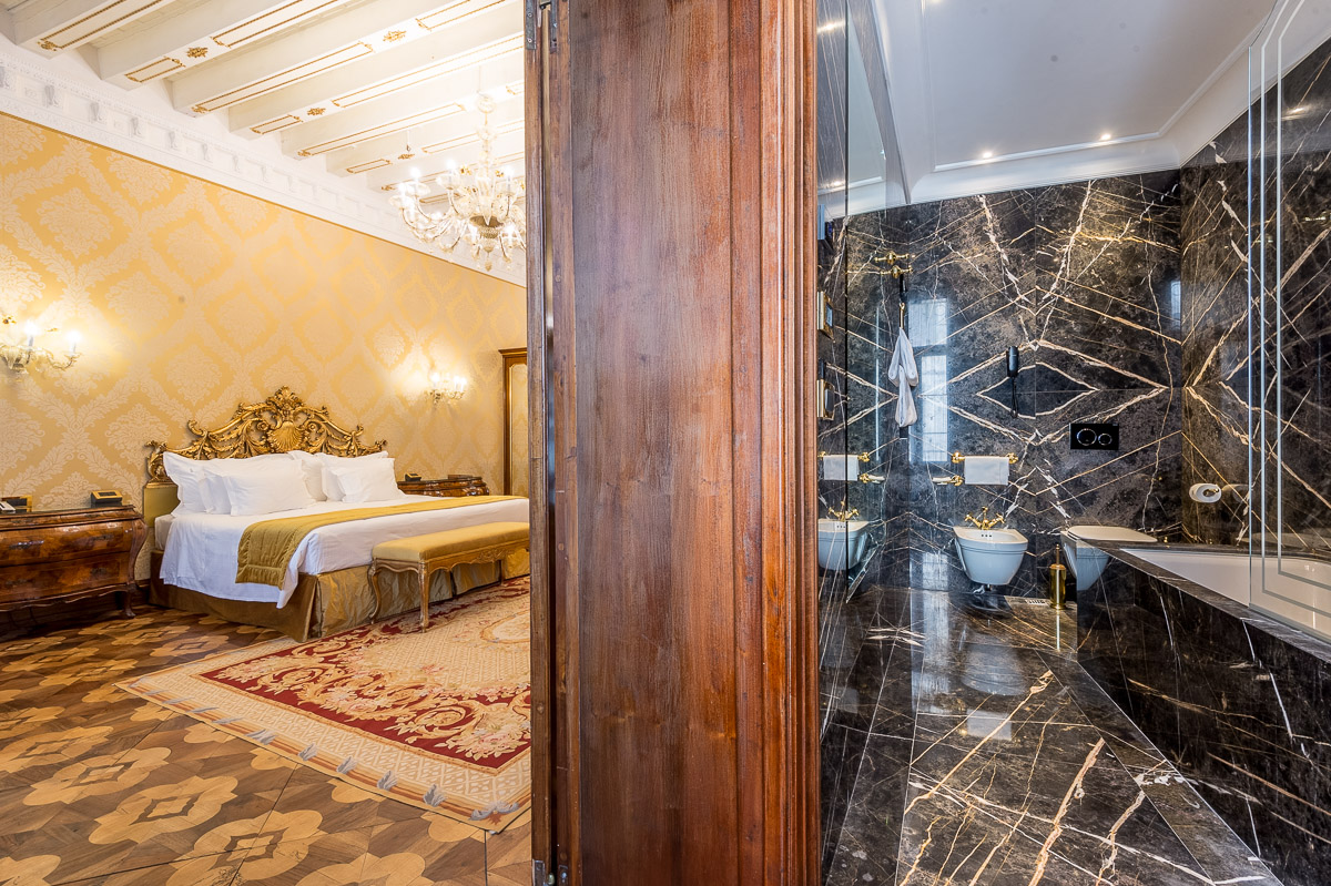 Our Superior rooms of about 20 Sqm have a high level of comfort. They are all furnished in warmVenetian style with antique textile on the walls, ancient wooden flooring or the typical “Venetian terrace”,which can be found in the most elegant aristocratic palaces. All rooms are equipped with a mini-bar, laptop-size safe, direct phone line, Internet, state-of-the-art flat screen TV, wireless connection. All polychrome marble bathrooms are equipped with shower or bathtub