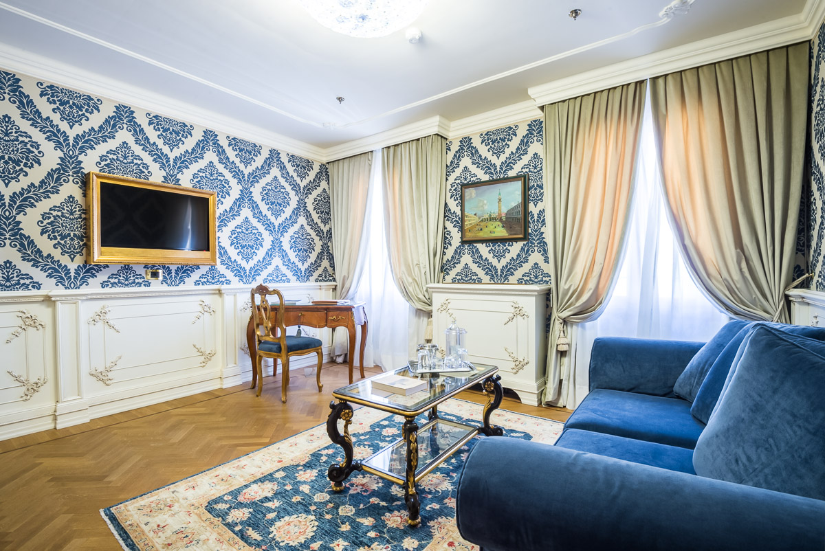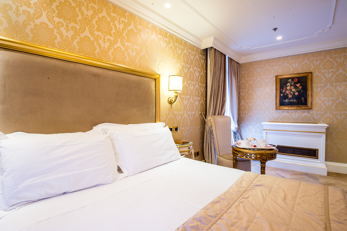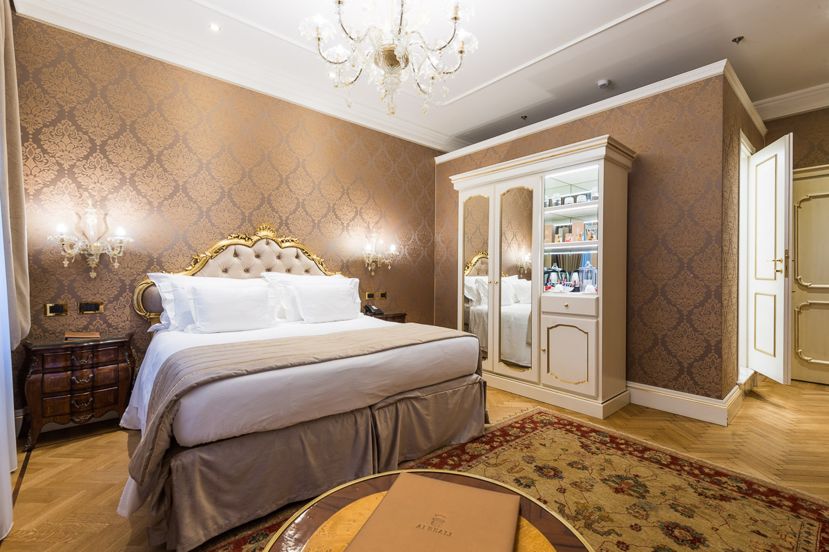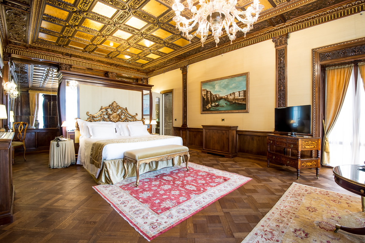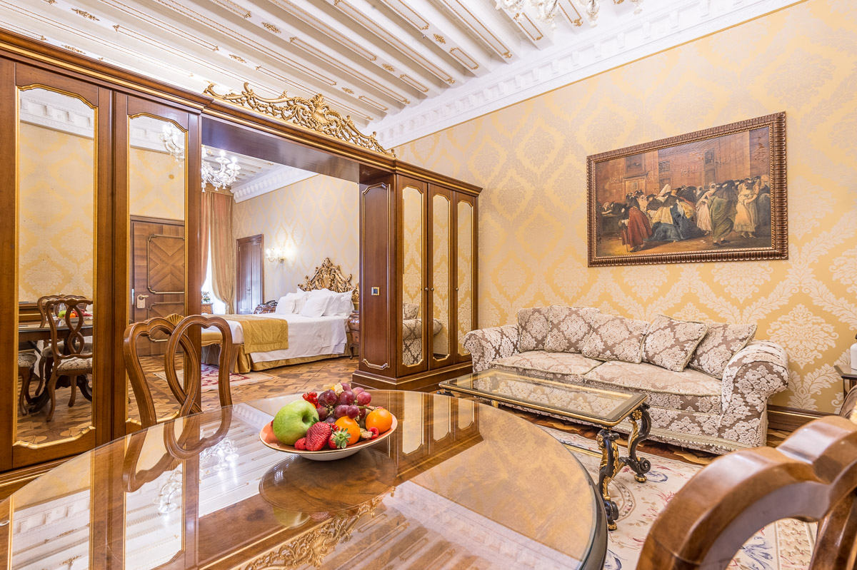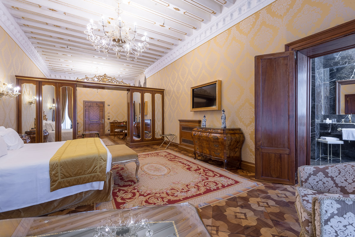Our Junior Suite rooms are quite generous in size – each one has about a 40 Sqm surface – and they are furnished in sumptuous historical Venetian style. Many of them also have a small fireplace dating back to late 1600, entirely refurbished ancient wooden flooring or the typical “Venetian terrace”, which can be found in the most elegant aristocratic palaces. All rooms are equipped with a desk,mini-bar, laptop-size safe, direct phone line, Internet, state-of-the-art flat screen TV, wireless connection. All polychrome marble bathrooms are equipped with shower or bathtub. All our Junior Suiterooms overlook a quiet canal.
