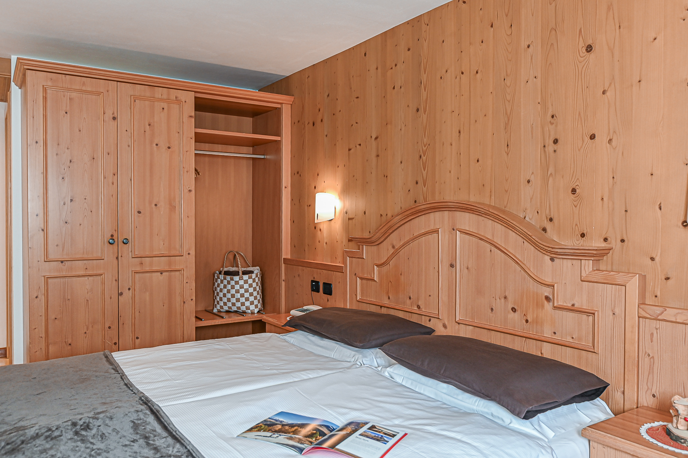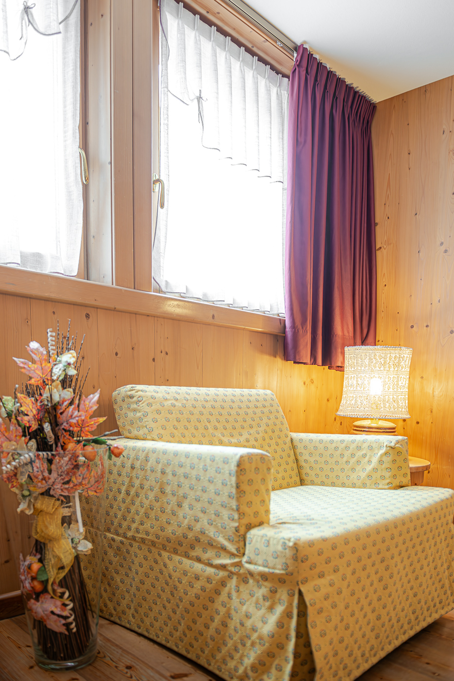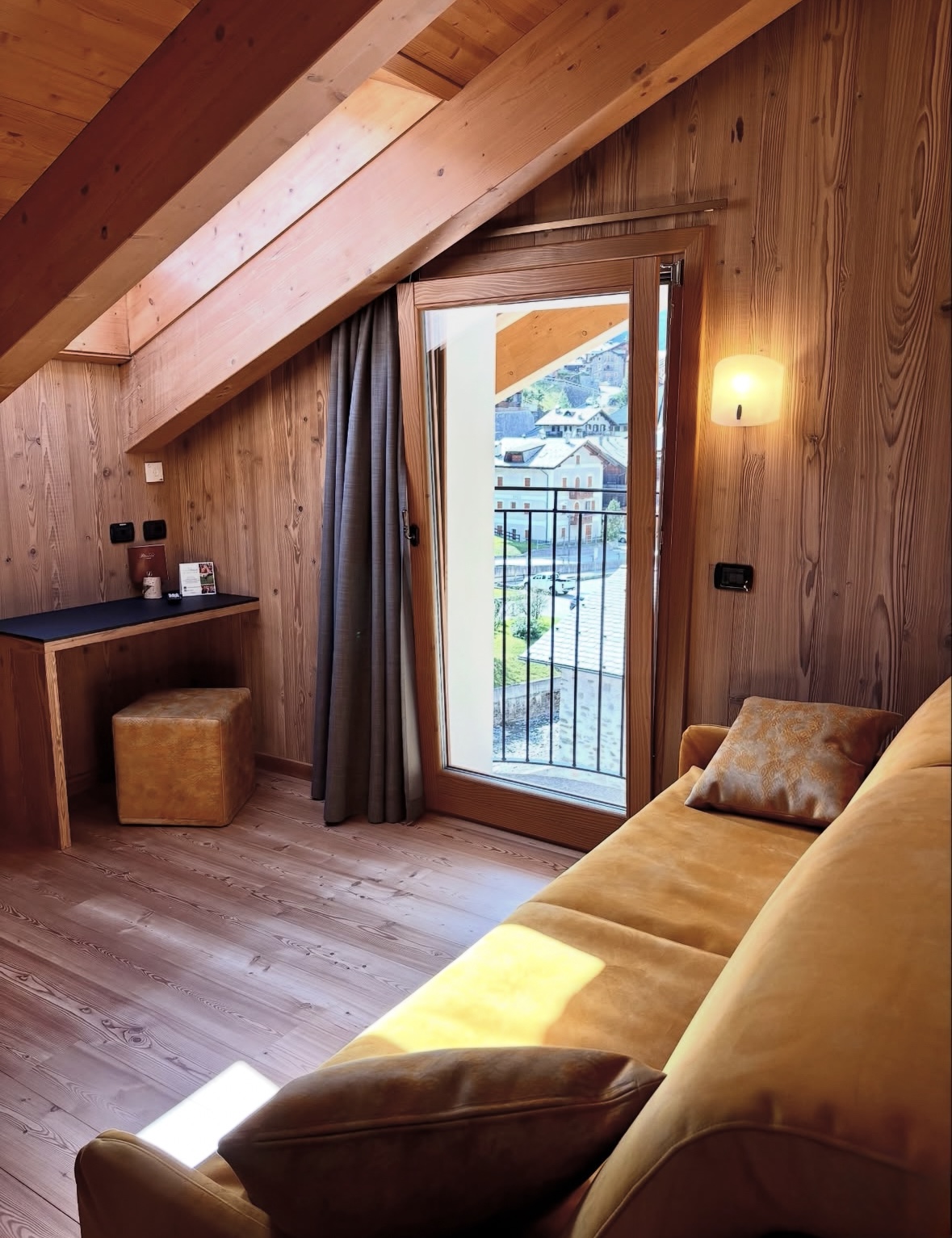 Spacious and welcoming, this 23 m² room offers a warm, relaxing atmosphere with natural wood flooring and simple yet refined furnishings. It features a cozy sitting area with a small sofa that can be converted into an extra bed, ideal for a child up to 12/14 years old.