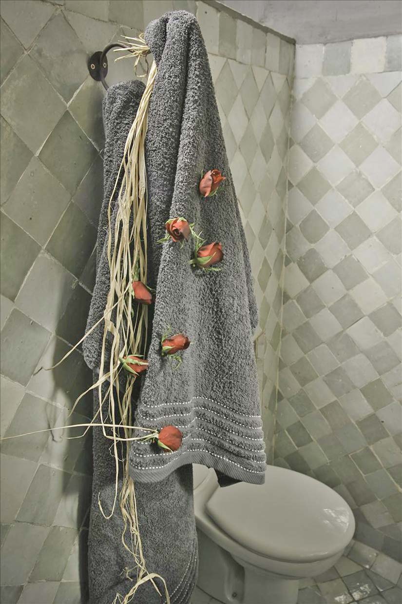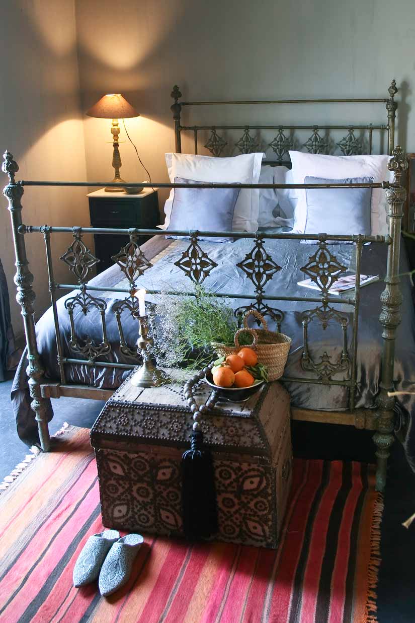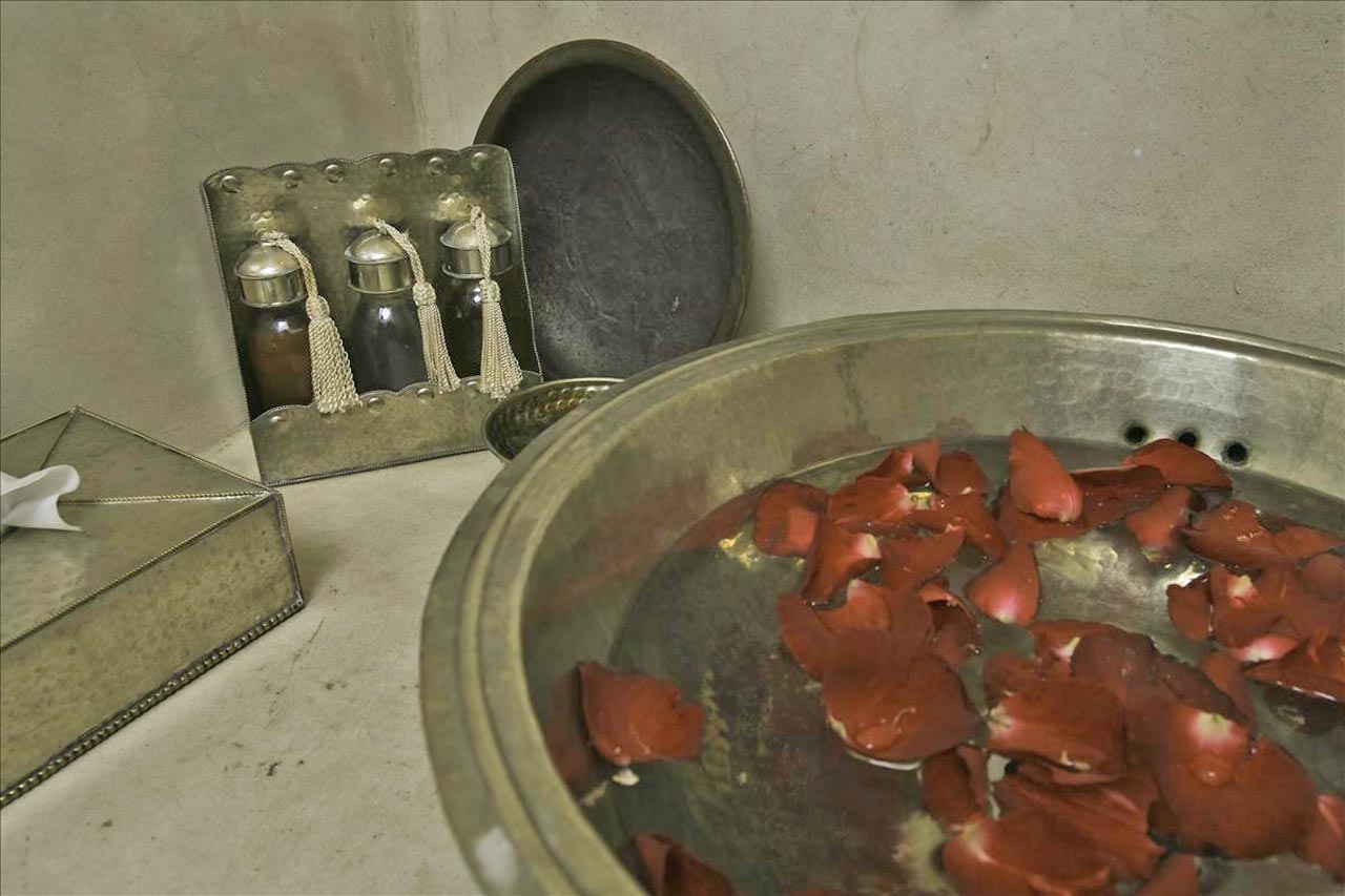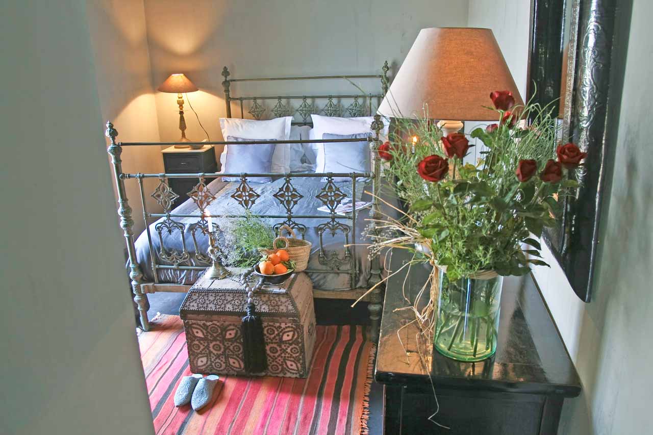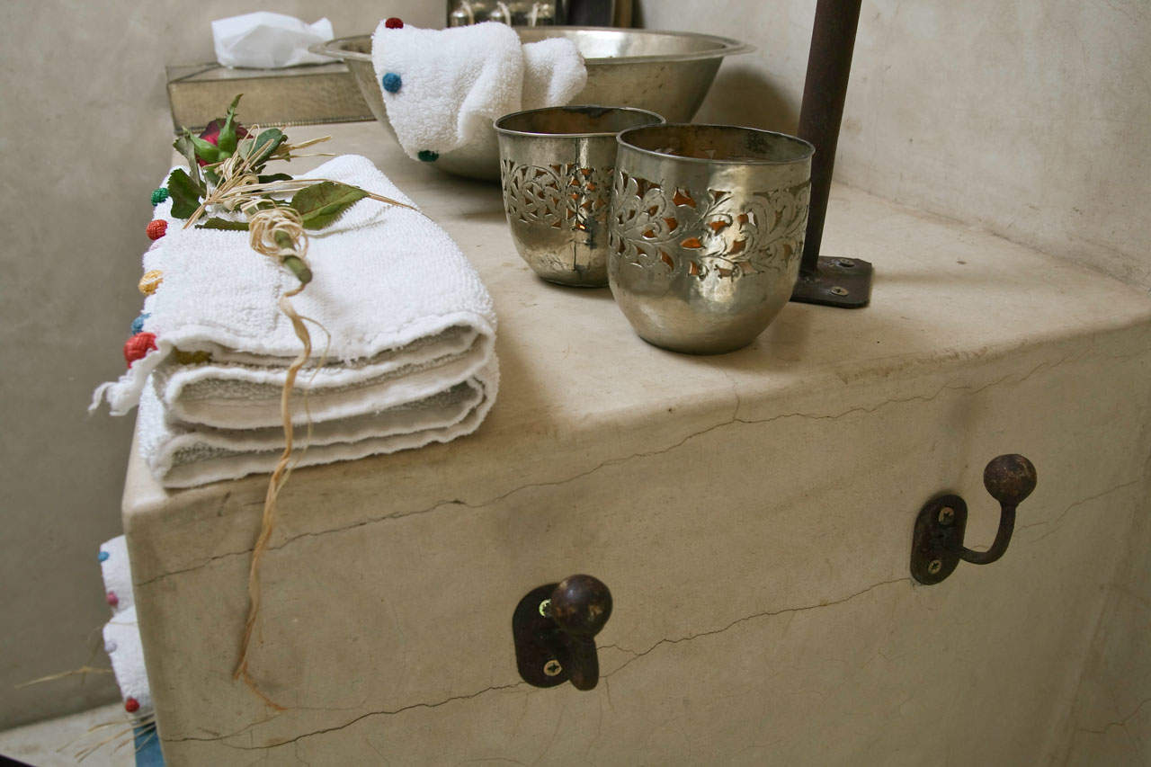 L'austerità e l'eleganza del grigio perla si unisce al calore degli oggetti in ottone. Preziosi caftani decorano i muri in calce lavorati a mano, tappeti berberi del deserto in mille sfumature rendono la Selim calda e avvolgente. Bagno in zellij di Féz e tadelakt sui toni bordeaux con vasca.