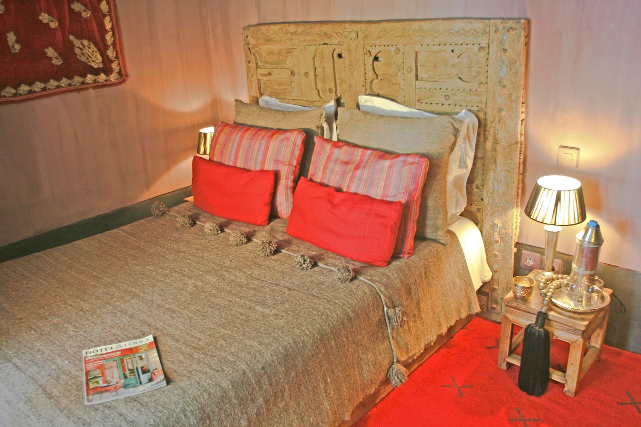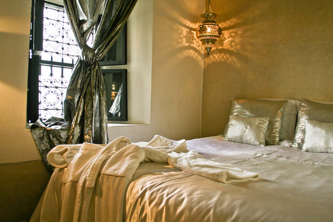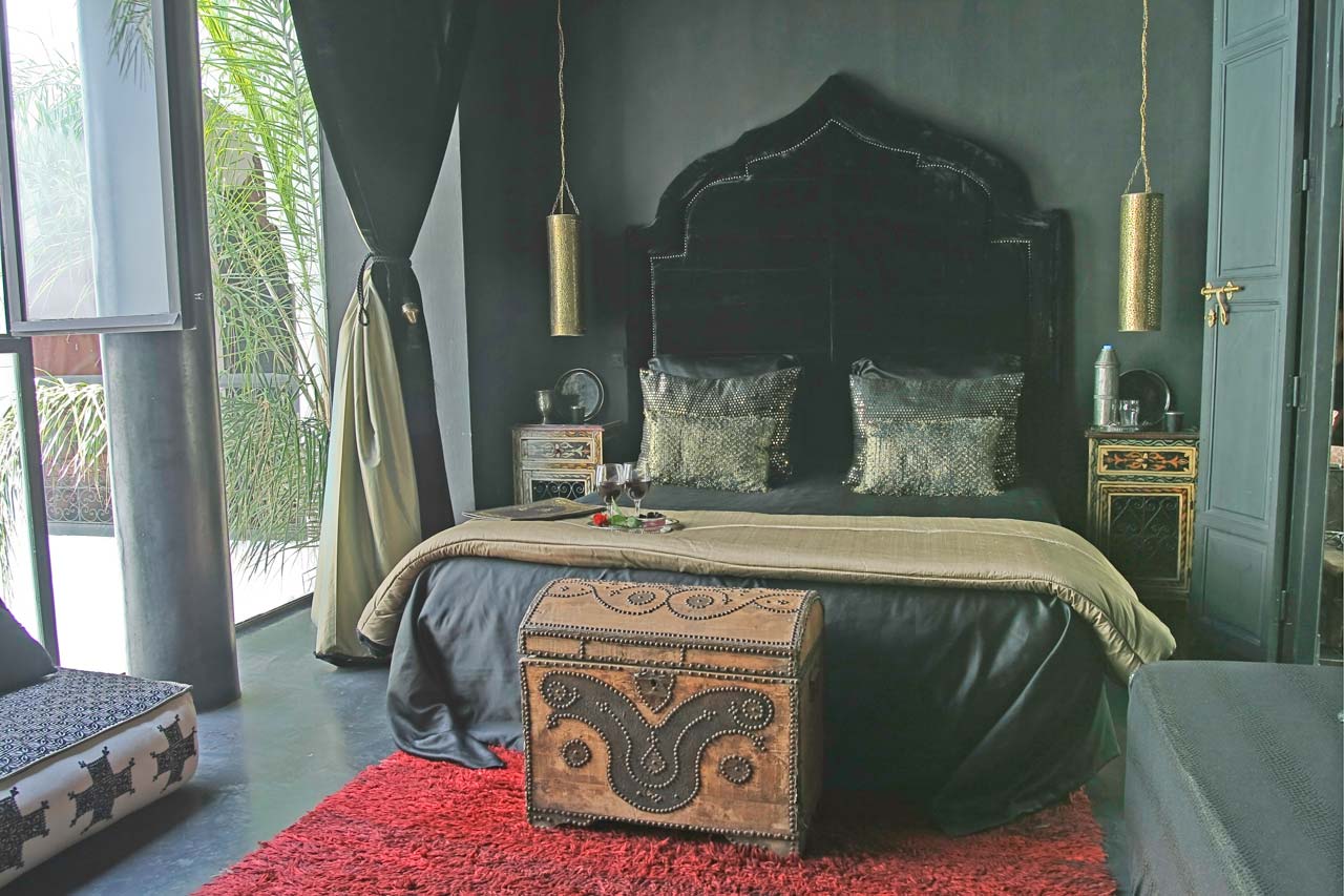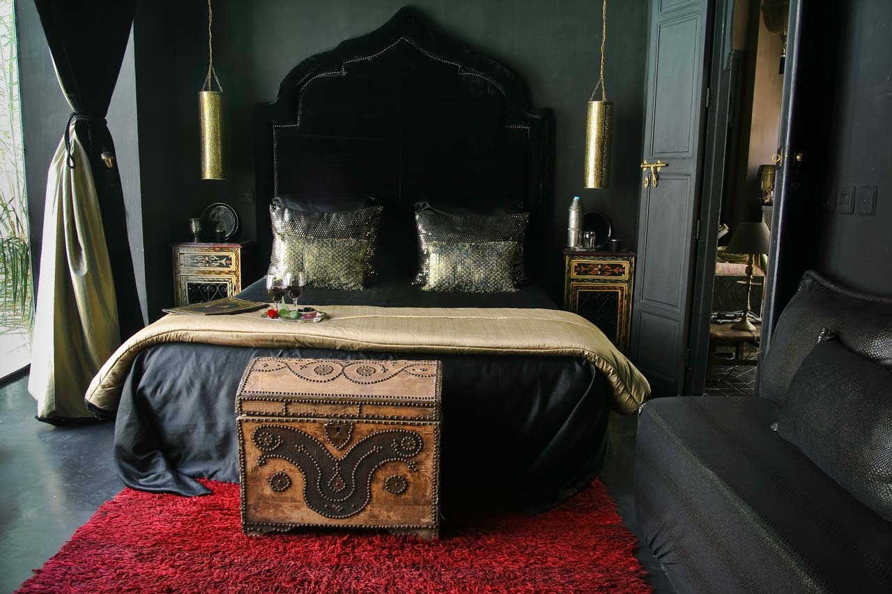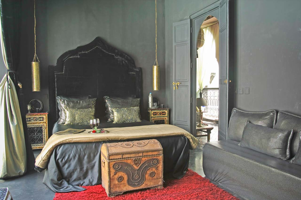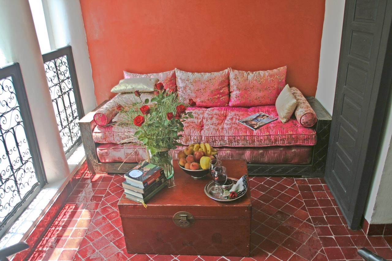 Il rosso predomina in ogni sua sfumatura avvolgendo preziosi tessuti e tappeti d'epoca. Lavorazioni berbere dell'Alto Atlas per il letto ed accenni metallici per gli oggetti, in un gioco di luci d'atmosfera unico e raffinato. Bagno in zellij di Féz e tadelakt amaranto che si amalgamano con delicatezza alla ricchezza dell'ottone lavorato a mano. Loggia privata, che affaccia sul patio della piscina, decorata con zellij rosso cina arredata con canapé indien e antiche cassapanche orientali.