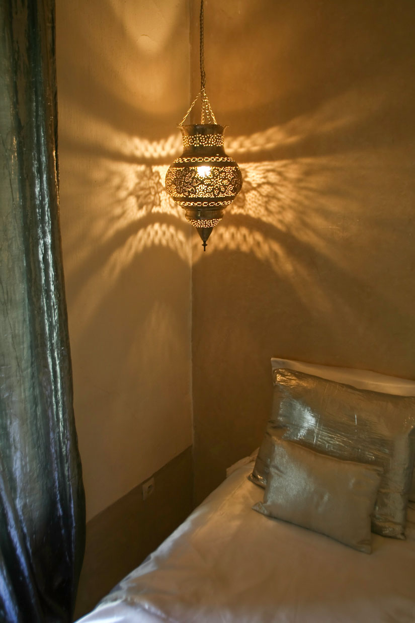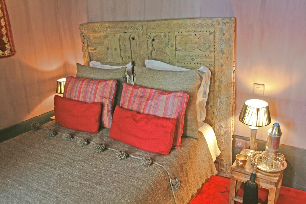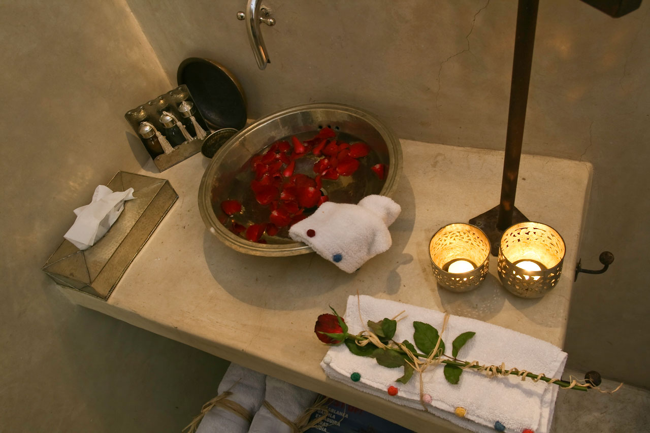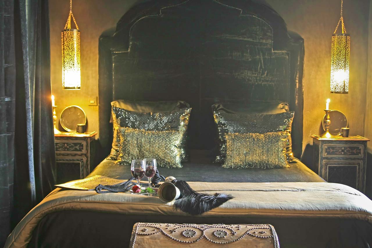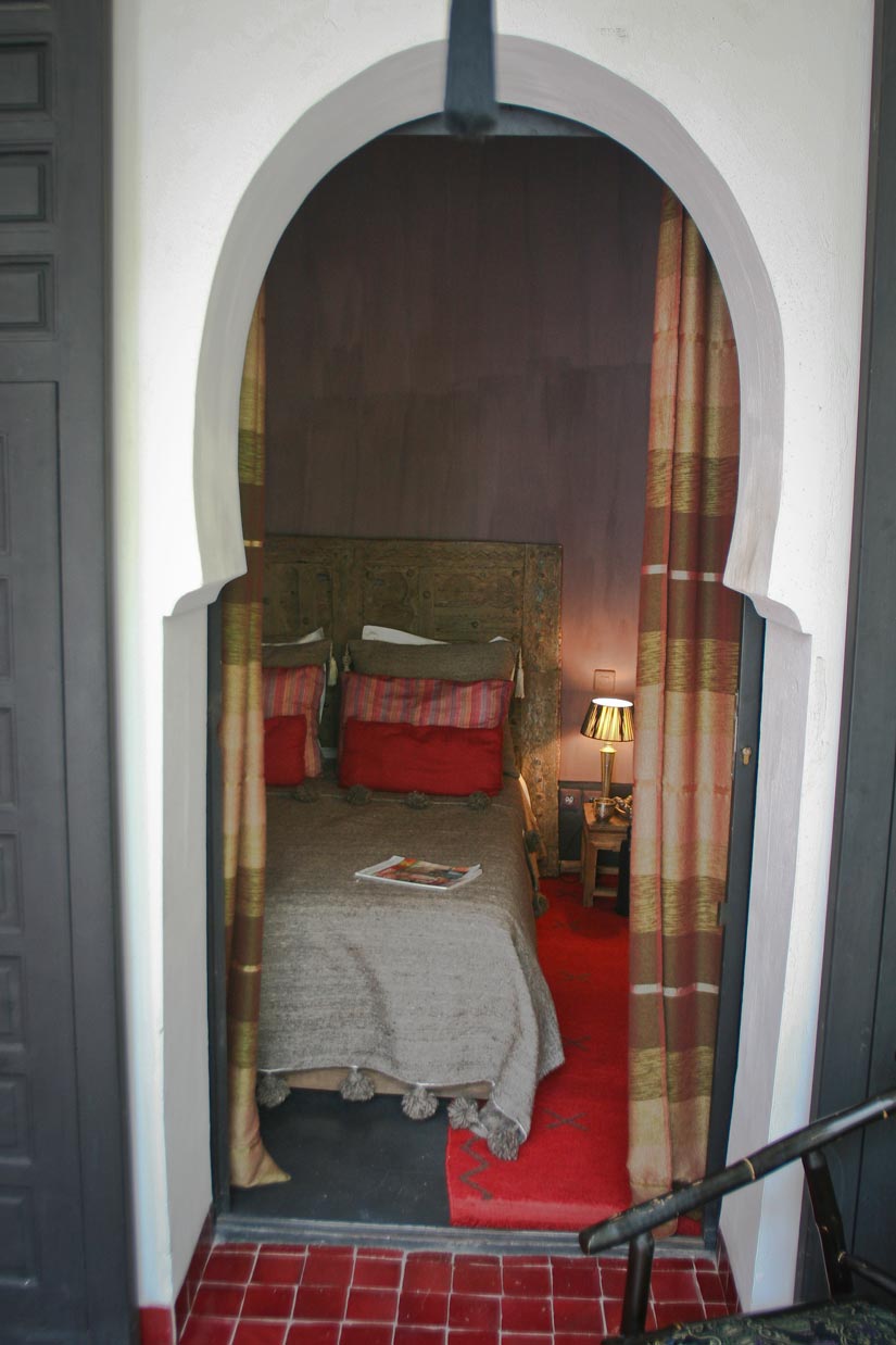 Il rosso predomina in ogni sua sfumatura avvolgendo preziosi tessuti e tappeti d'epoca. Lavorazioni berbere dell'Alto Atlas per il letto ed accenni metallici per gli oggetti, in un gioco di luci d'atmosfera unico e raffinato. Bagno in zellij di Féz e tadelakt amaranto che si amalgamano con delicatezza alla ricchezza dell'ottone lavorato a mano. Loggia privata, che affaccia sul patio della piscina, decorata con zellij rosso cina arredata con canapé indien e antiche cassapanche orientali.