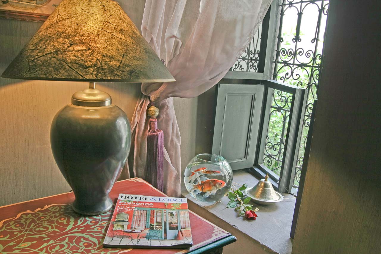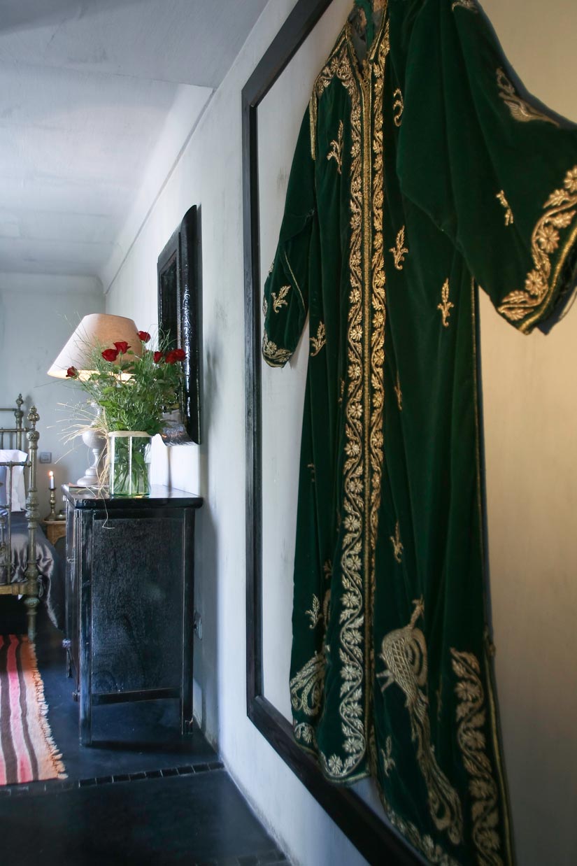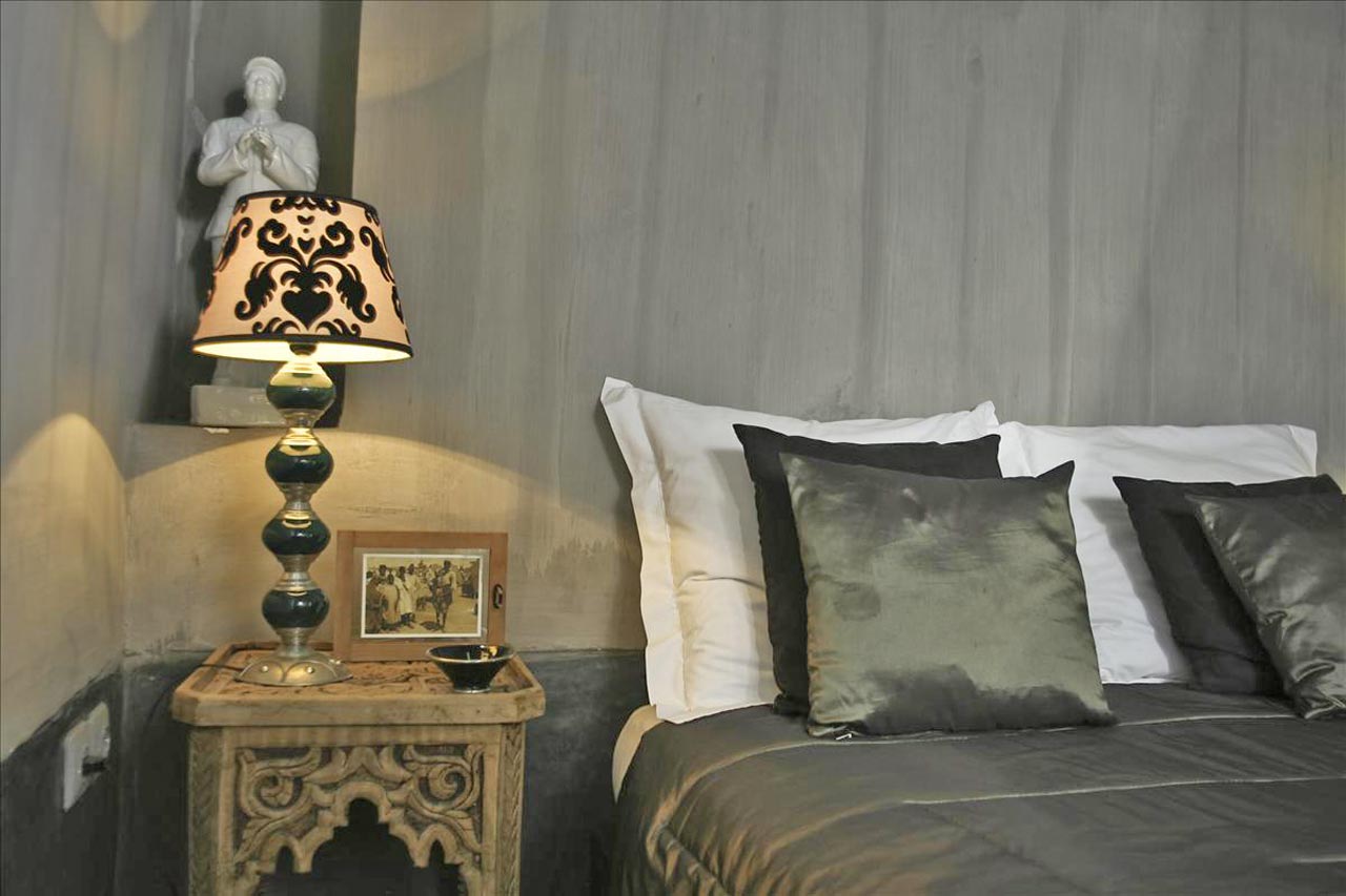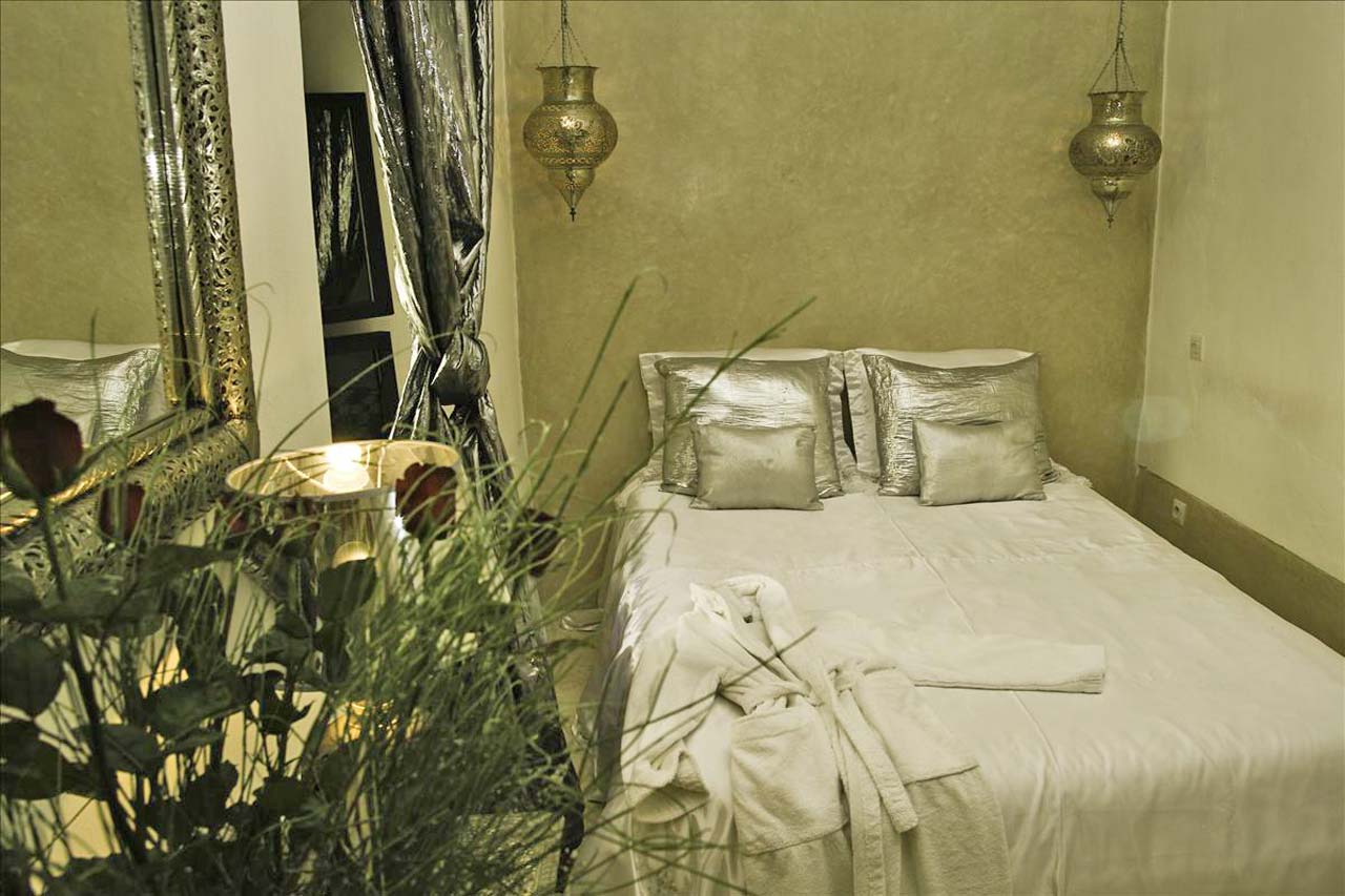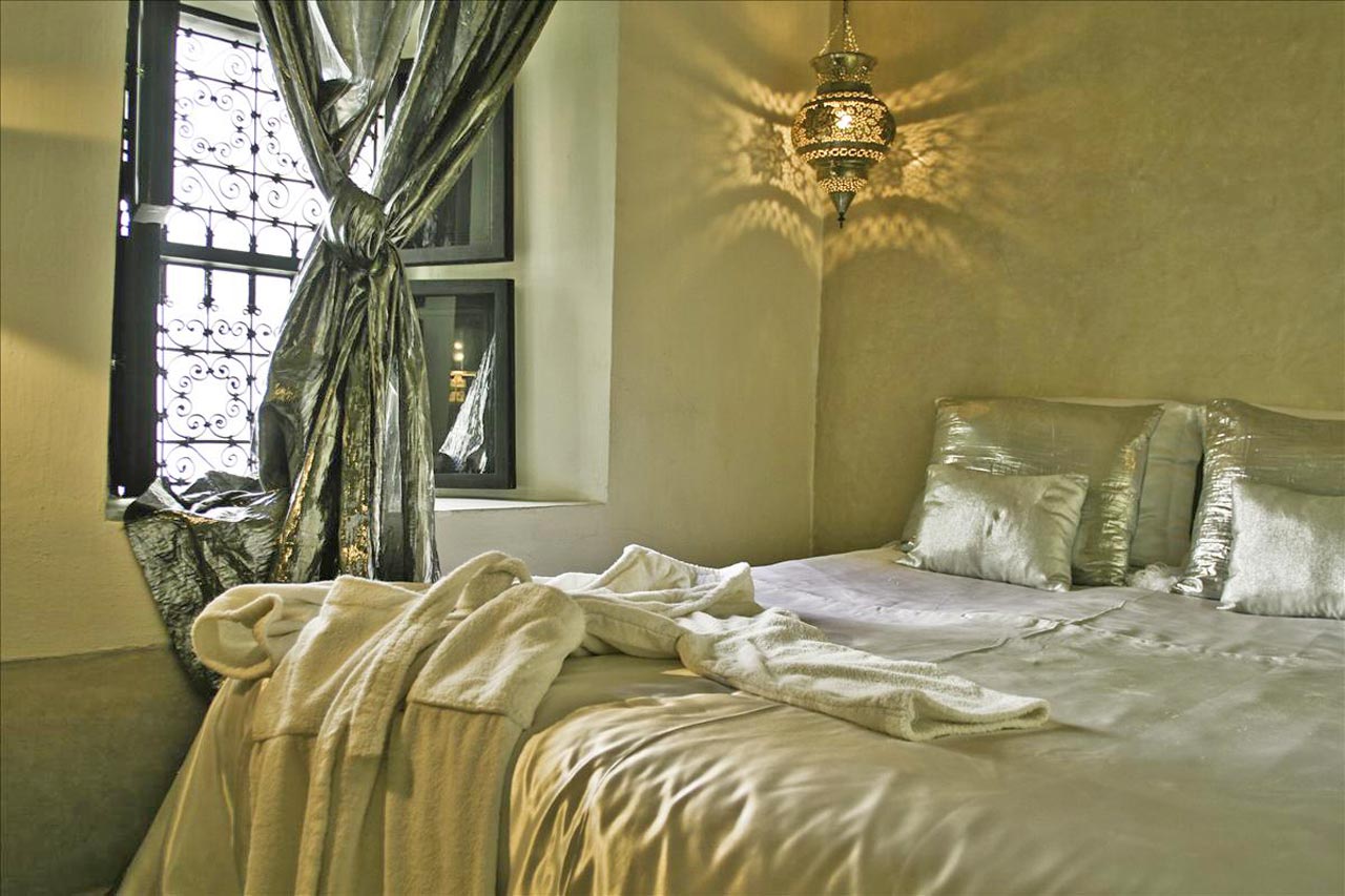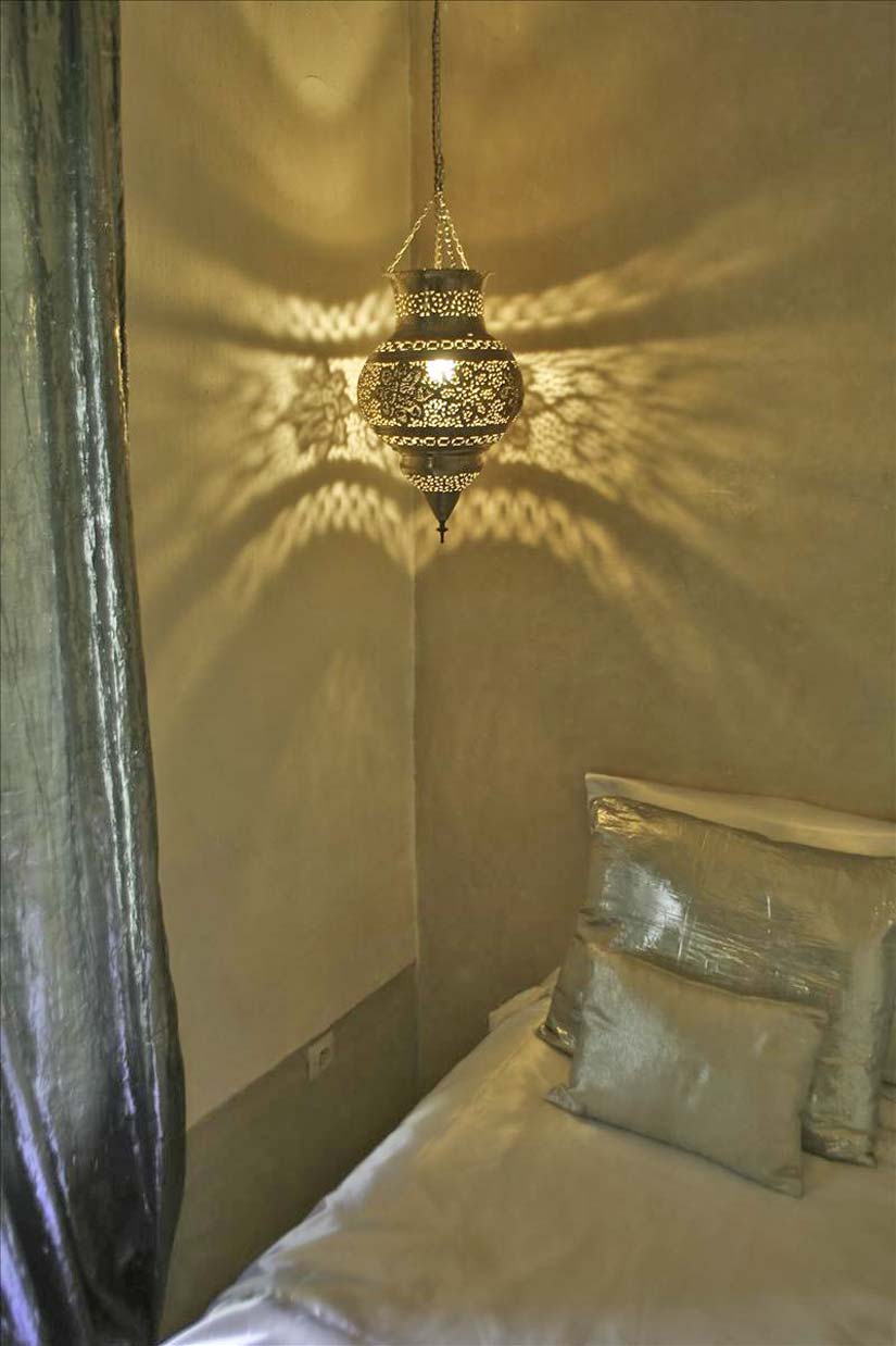 Il rosso predomina in ogni sua sfumatura avvolgendo preziosi tessuti e tappeti d'epoca. Lavorazioni berbere dell'Alto Atlas per il letto ed accenni metallici per gli oggetti, in un gioco di luci d'atmosfera unico e raffinato. Bagno in zellij di Féz e tadelakt amaranto che si amalgamano con delicatezza alla ricchezza dell'ottone lavorato a mano. Loggia privata, che affaccia sul patio della piscina, decorata con zellij rosso cina arredata con canapé indien e antiche cassapanche orientali.