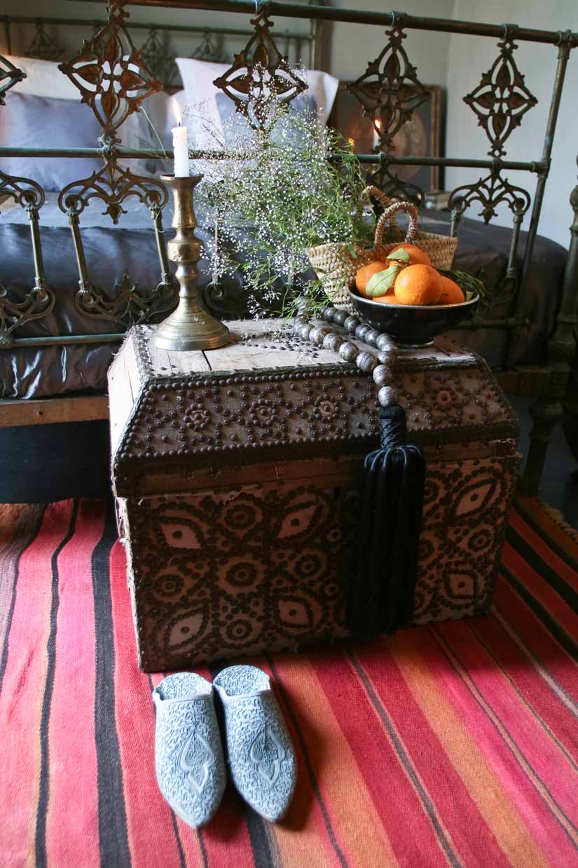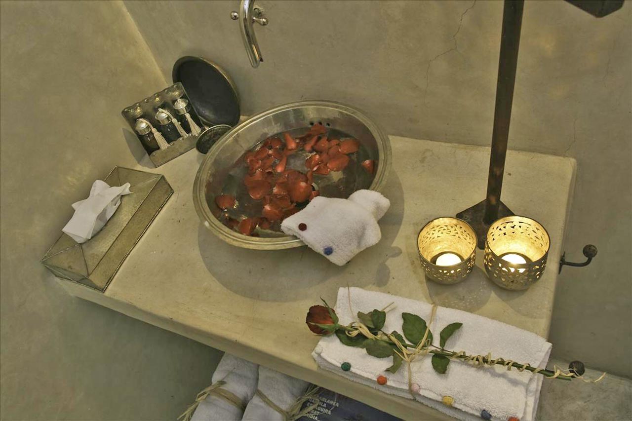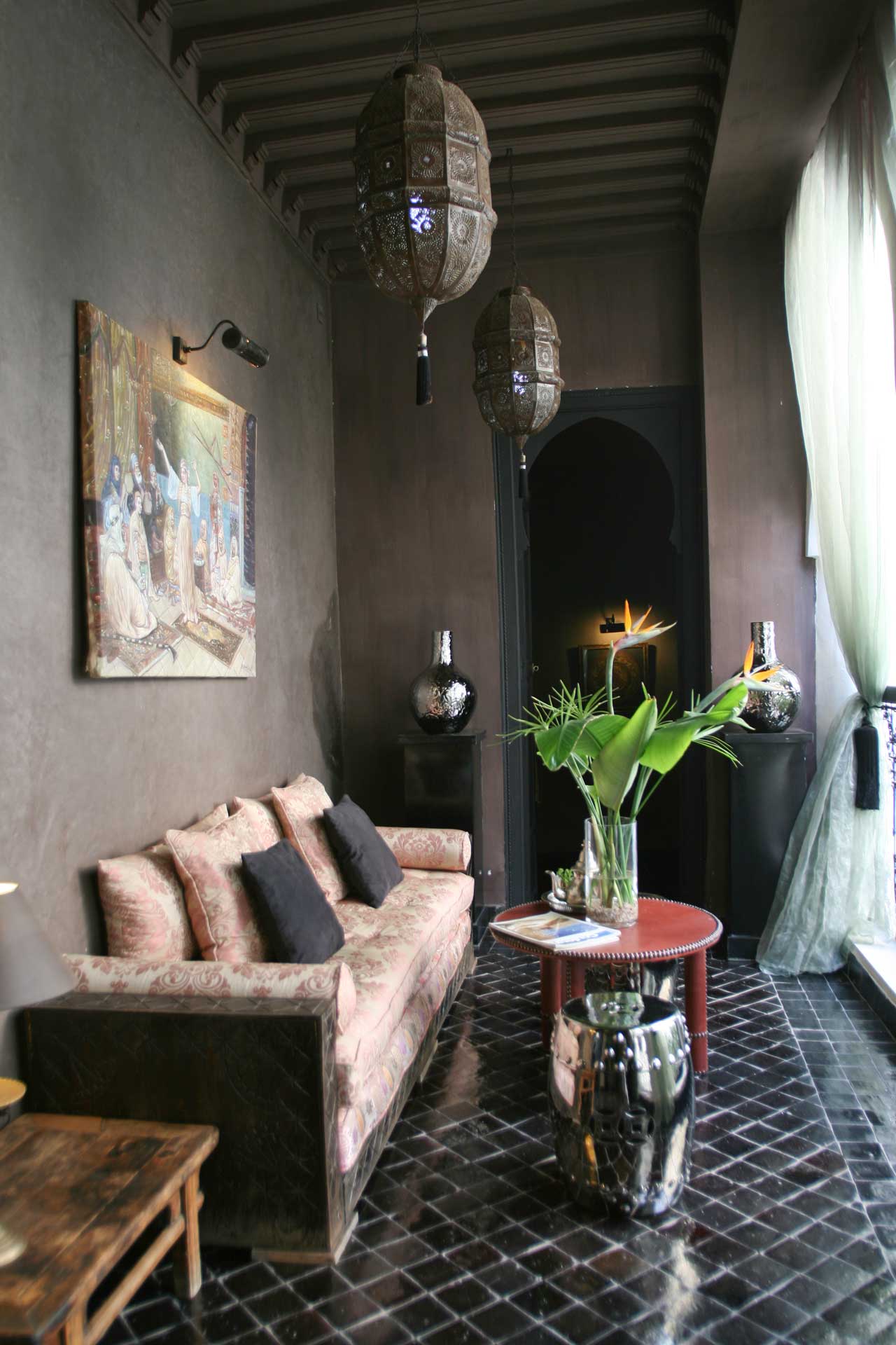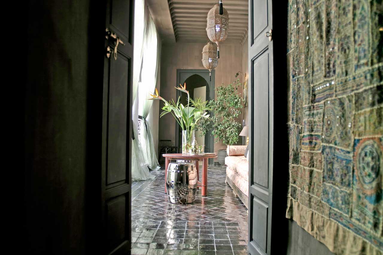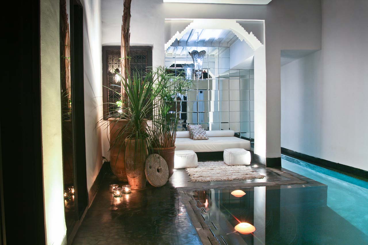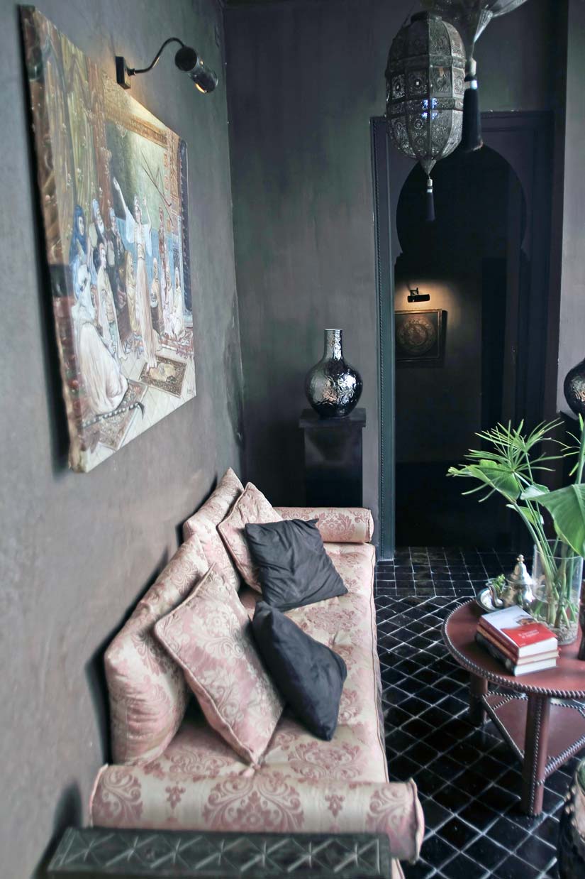 Il rosso predomina in ogni sua sfumatura avvolgendo preziosi tessuti e tappeti d'epoca. Lavorazioni berbere dell'Alto Atlas per il letto ed accenni metallici per gli oggetti, in un gioco di luci d'atmosfera unico e raffinato. Bagno in zellij di Féz e tadelakt amaranto che si amalgamano con delicatezza alla ricchezza dell'ottone lavorato a mano. Loggia privata, che affaccia sul patio della piscina, decorata con zellij rosso cina arredata con canapé indien e antiche cassapanche orientali.