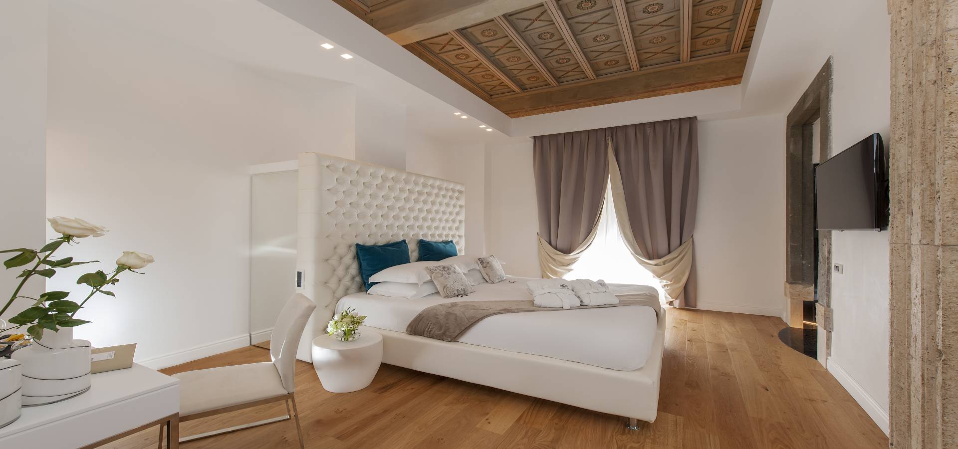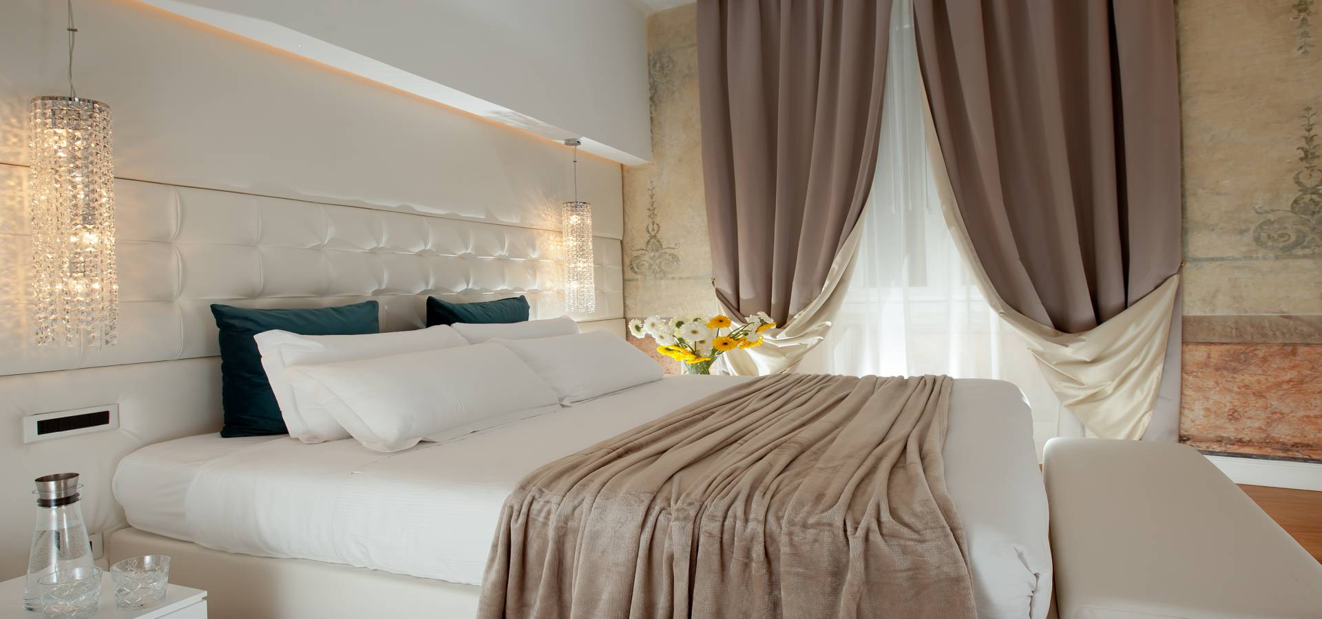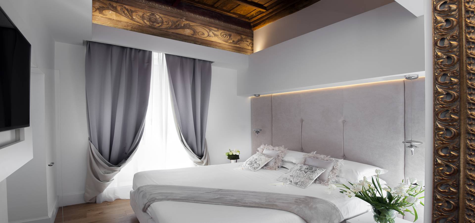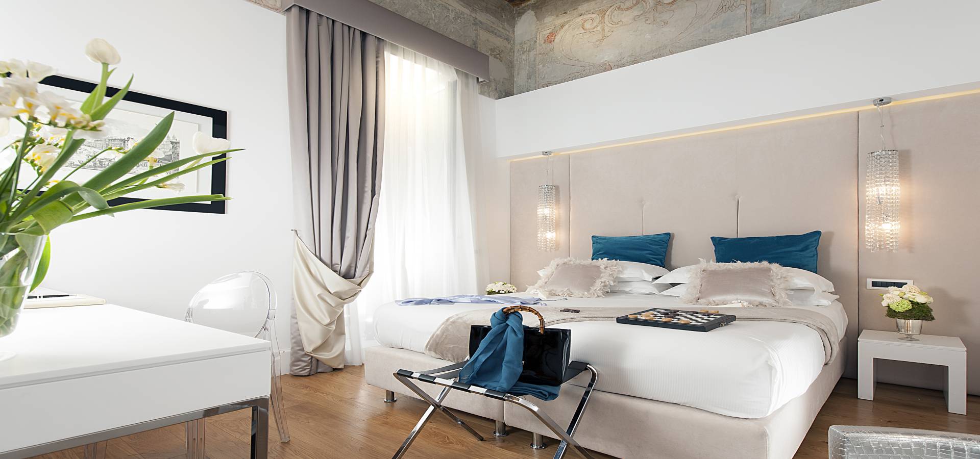 Le camere Superior sono state arredate rispettando gli elementi architettonici del palazzo ospitante.