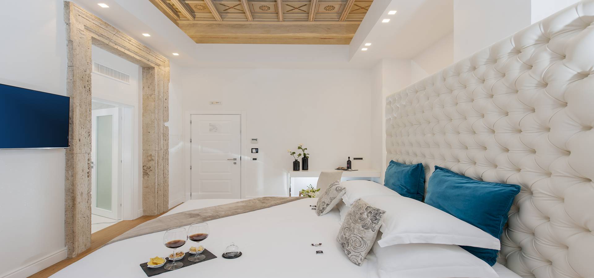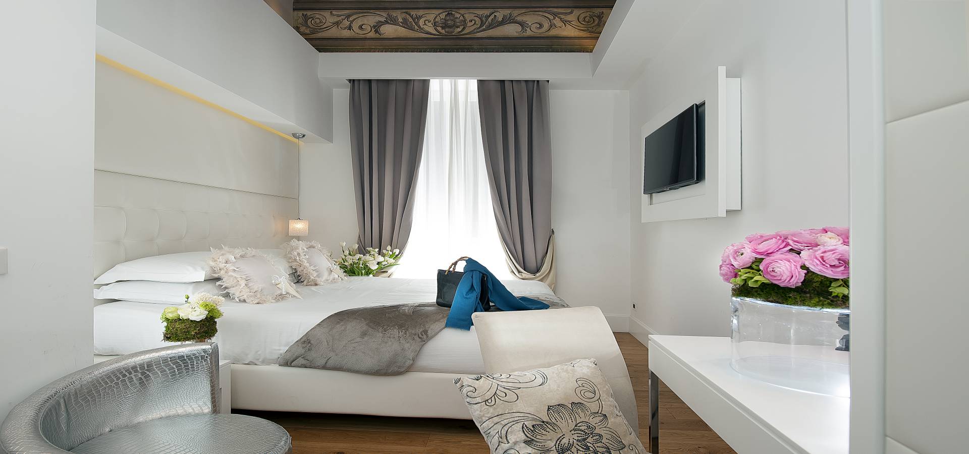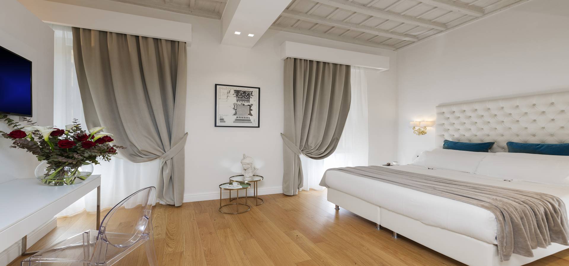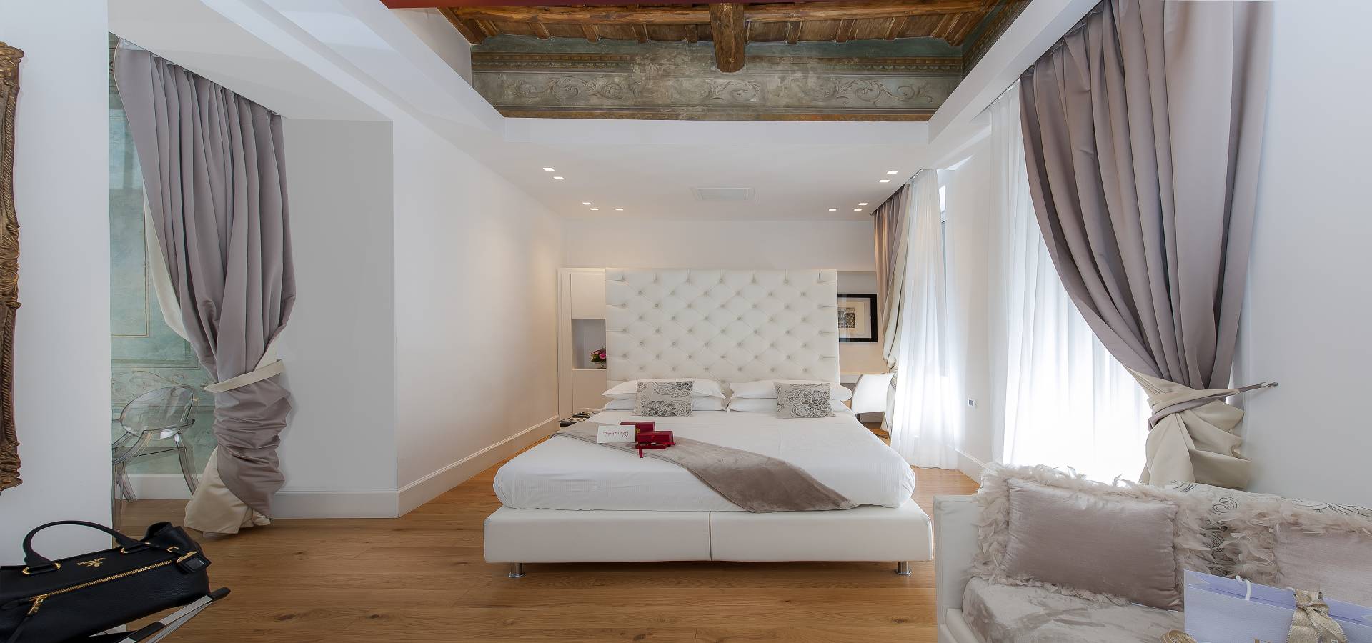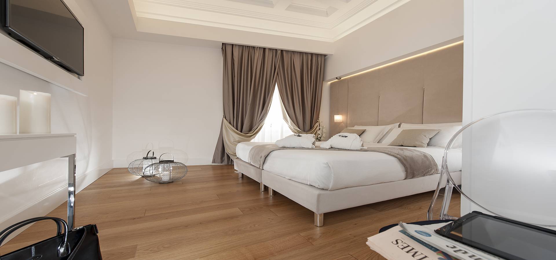Le camere Superior sono state arredate rispettando gli elementi architettonici del palazzo ospitante.
