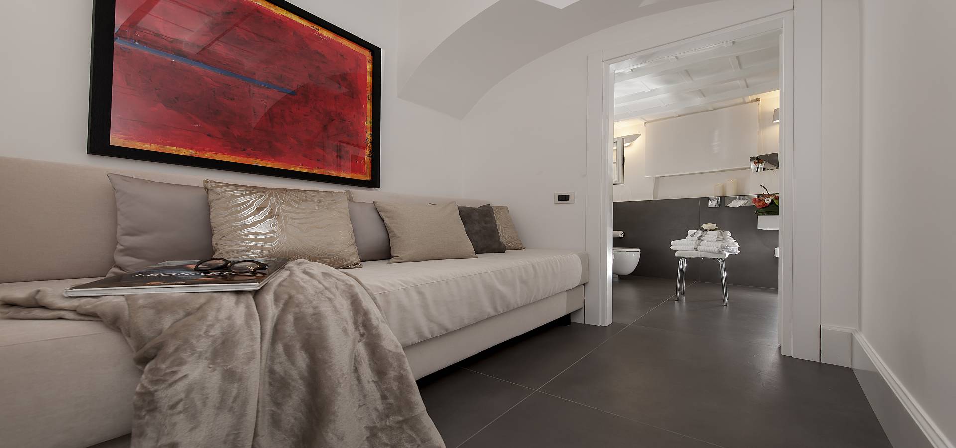 La Studio Suite è la scelta ideale per un soggiorno all'insegna della comodità. Dotata di una zona soggiorno, un comodo letto queen size e un ampio bagno in marmo, caratterizzato da una volta a mattoncini recuperata durante i lavori di ristrutturazione, doccia e kit bagno con prodotti naturali.
