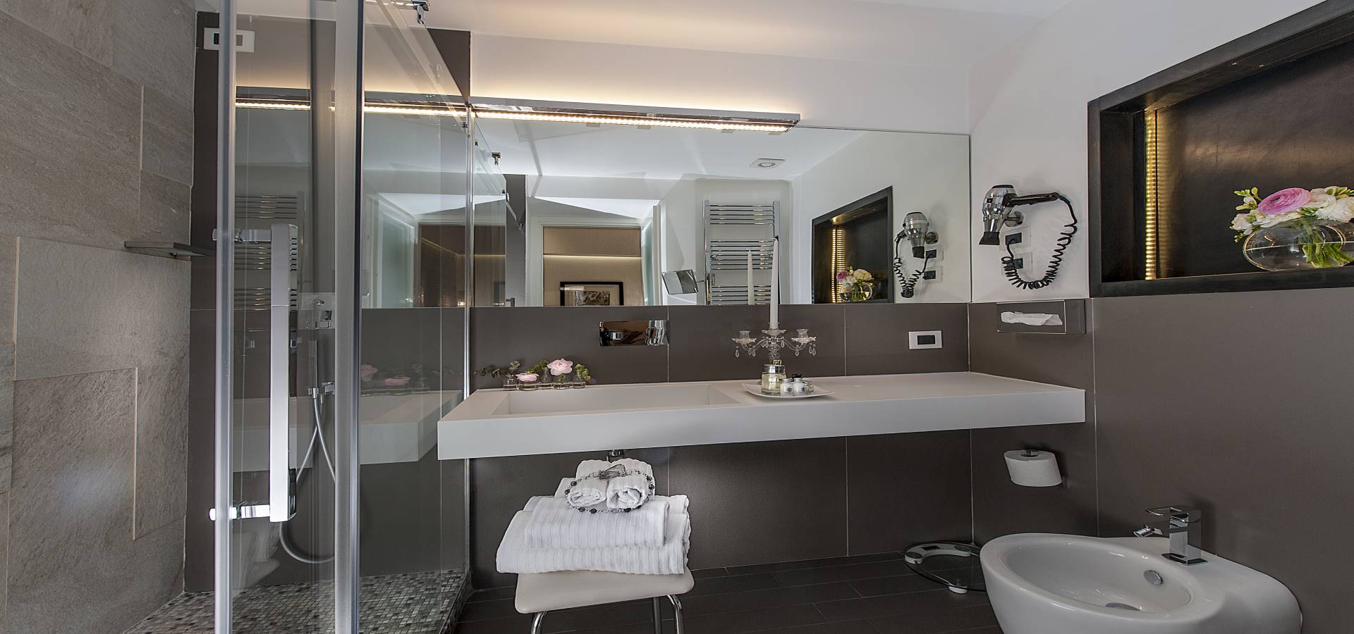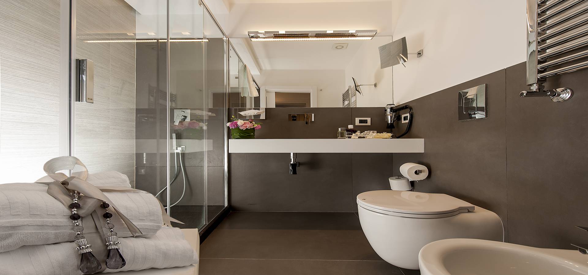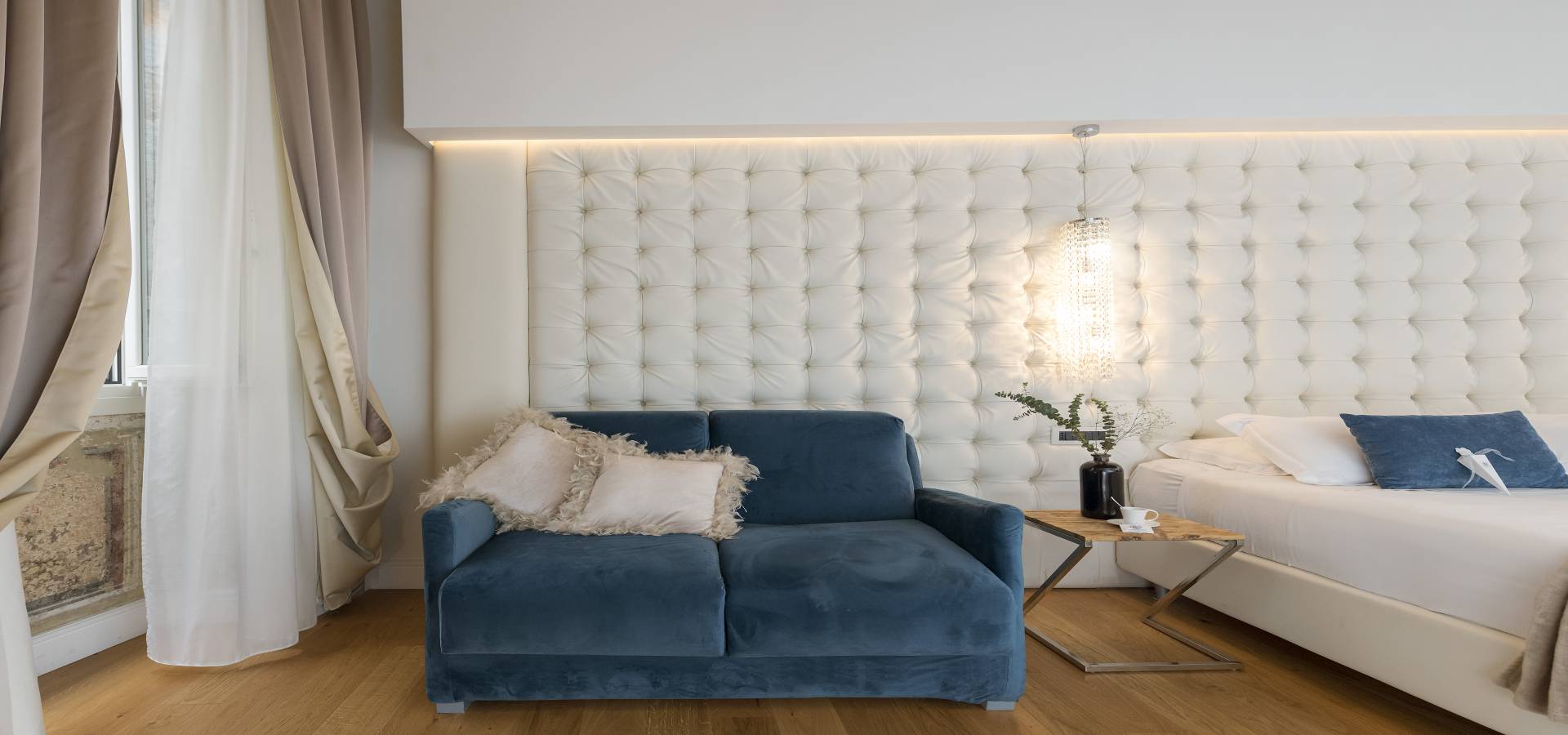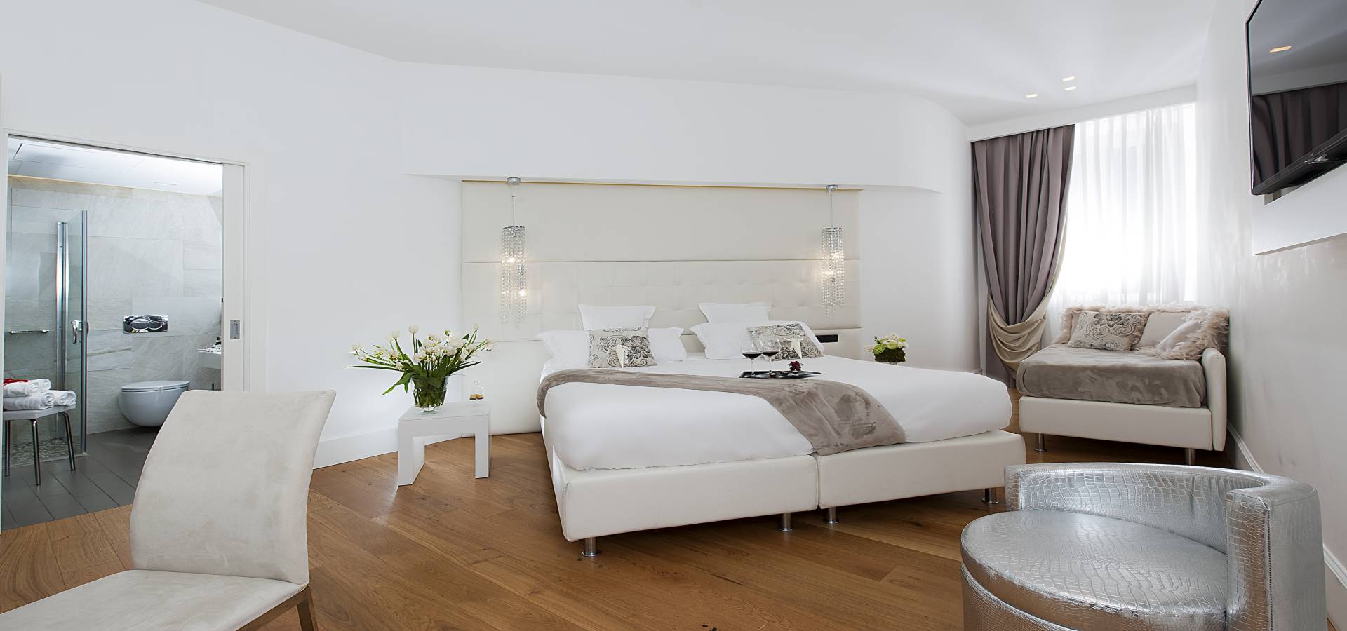 La Suite Executive è un ambiente particolarmente ampio, ideale per ospitare fino a 4 persone. Un ambiente moderno arredato arredato con ementi di design, dotato di un ampia zona soggiorno, un letto queen size, un ampio bagno con doccia walk in e una cabina armadio.