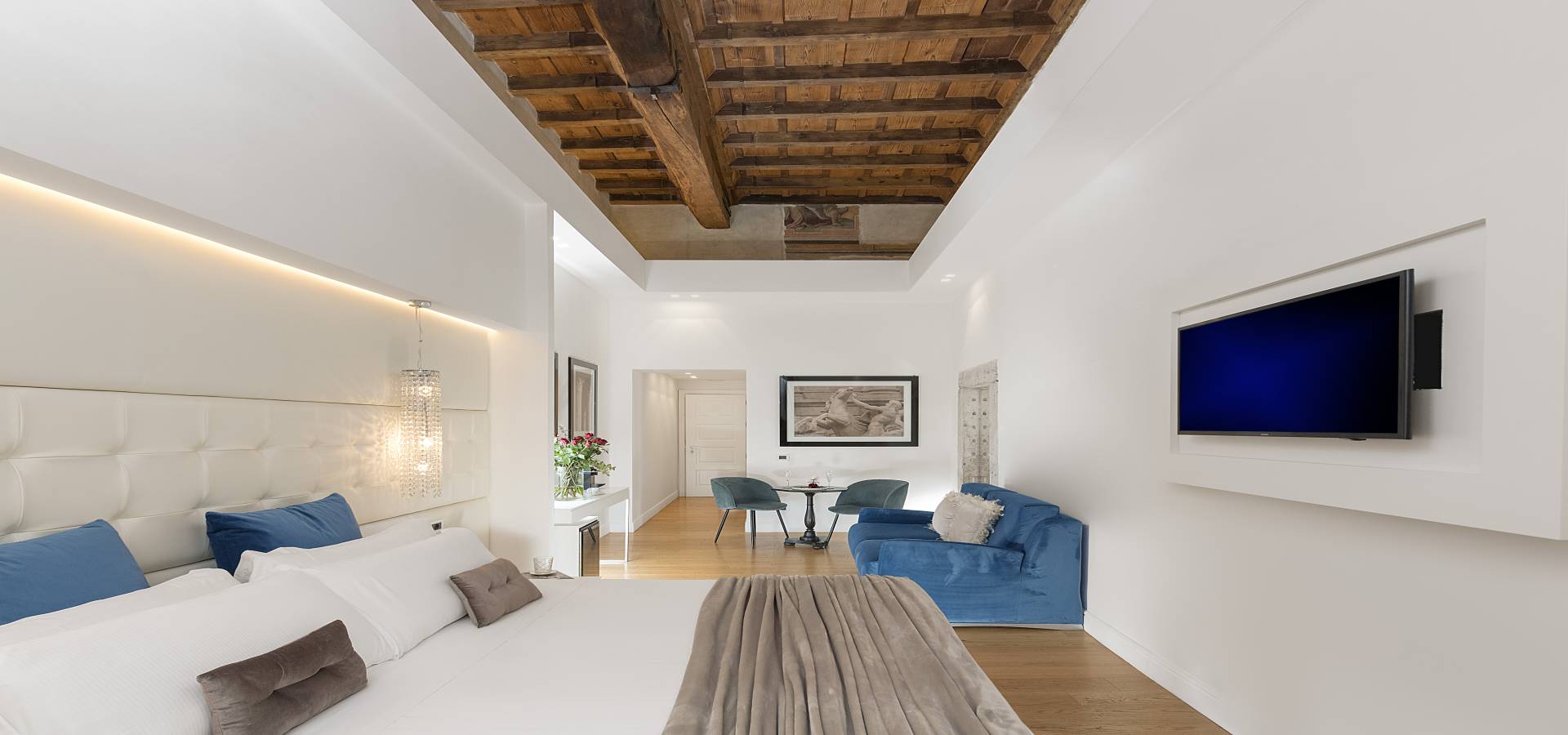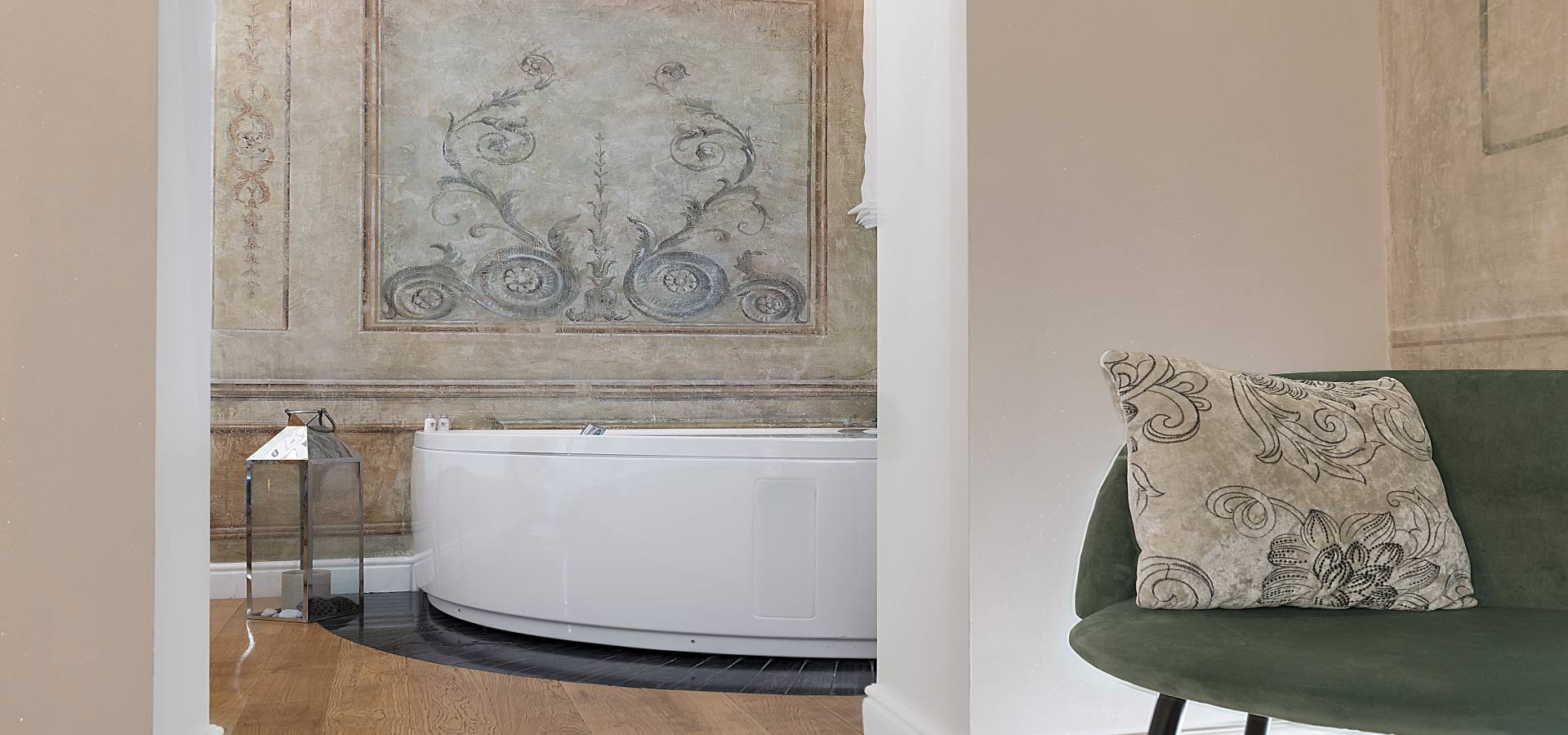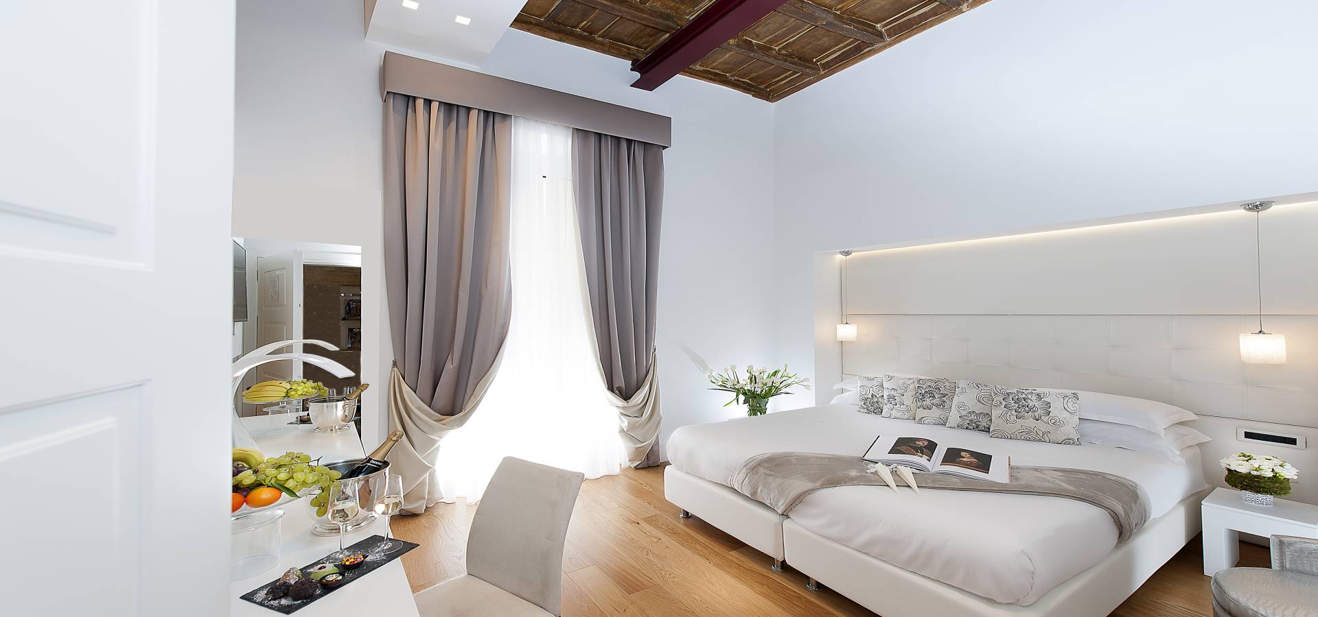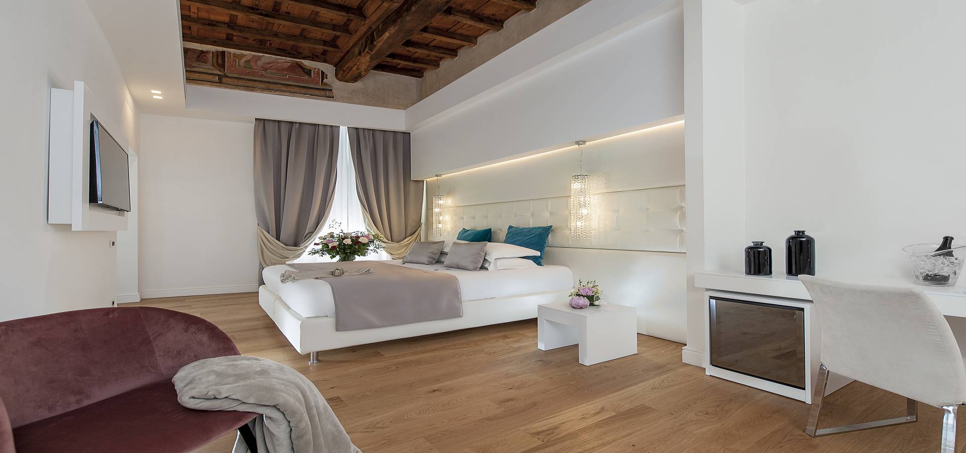 La Suite è la scelta ideale per un soggiorno di lusso a Roma, tra soffitti affrescati e design contemporaneo negli arredi. Dotata di vasca idromassaggio Jacuzzi è perfetta per trascorrere romantici momenti di relax in compagnia del proprio partner di viaggio.
